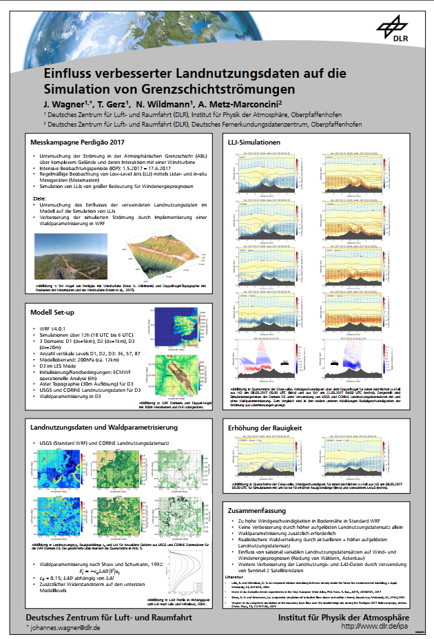 | [19] | Johannes Wagner, Thomas Gerz, Norman Wildmann, and Annekatrin Metz-Marconcini. Einfluss verbesserter landnutzungsdaten auf die simulation von grenzschichtströmungen. In DACH2019, Garmisch-Partenkirchen, DE, 2019-03-18/2019-03-22 2019. DMG/ÖMG/SGM. [ bib | .pdf ] |
