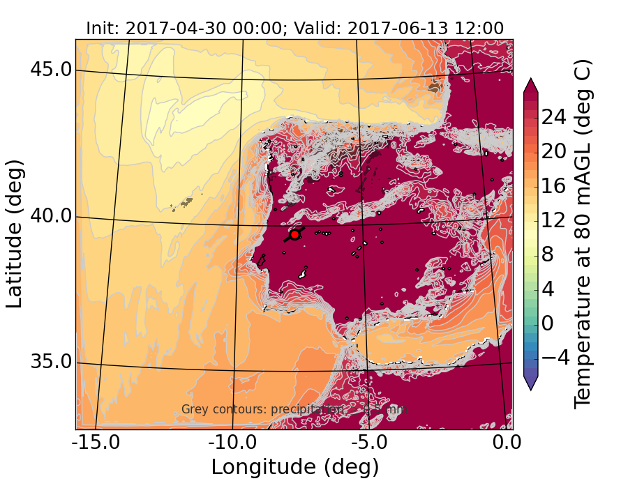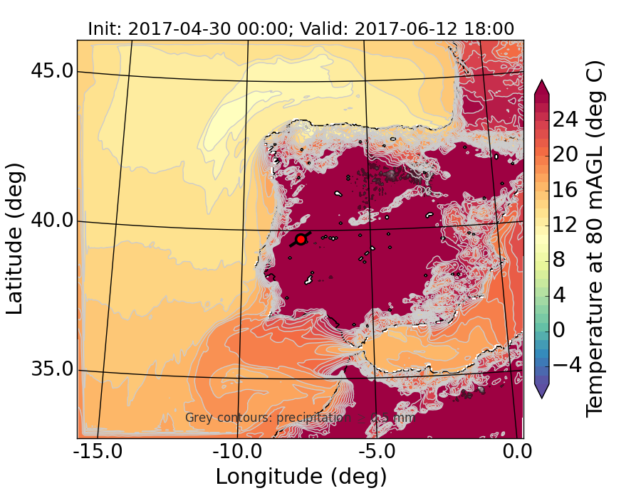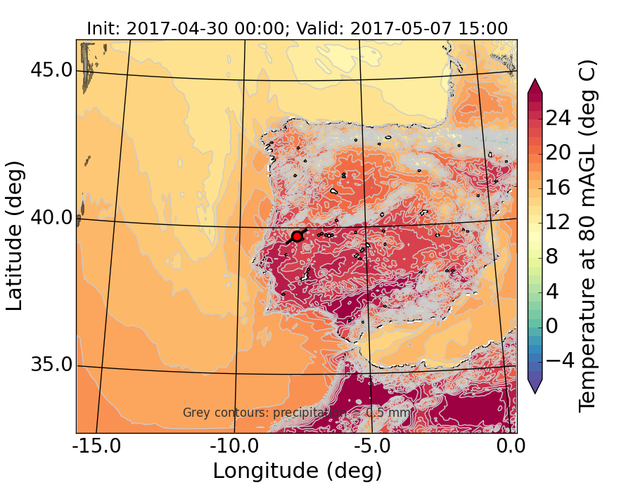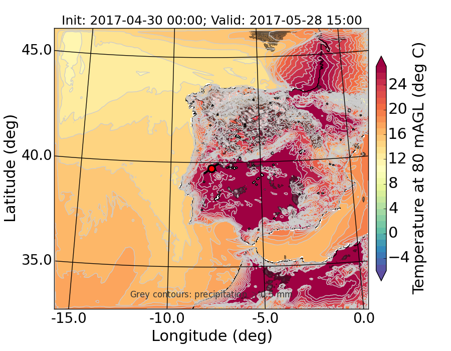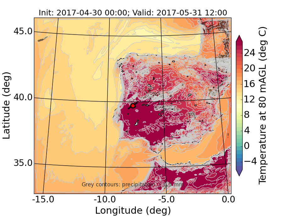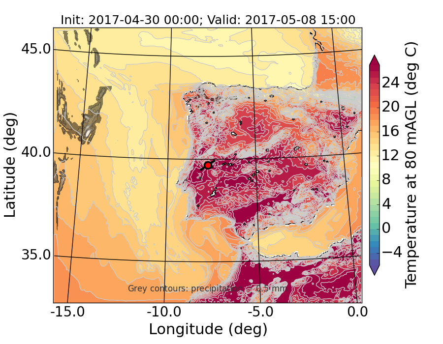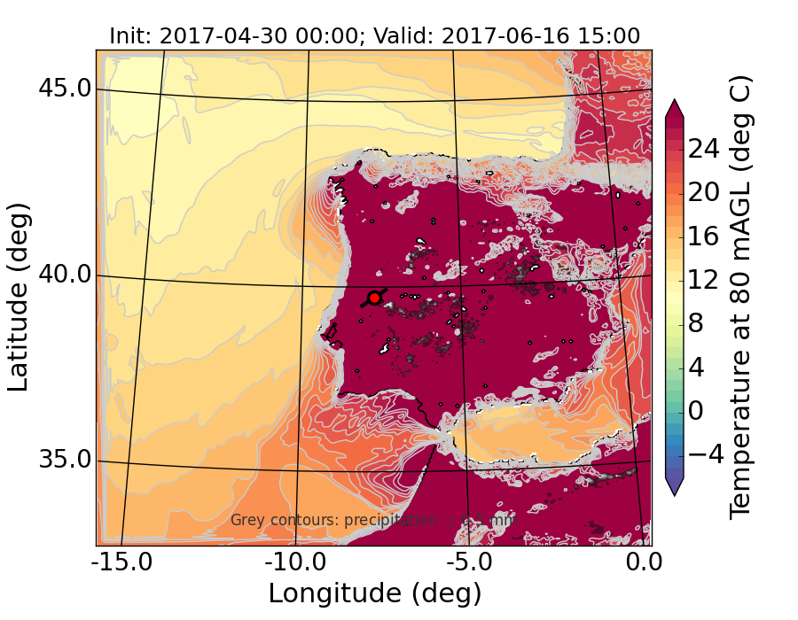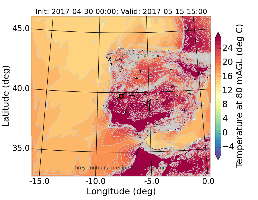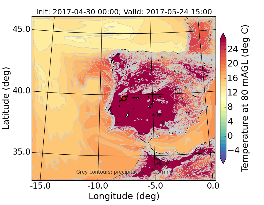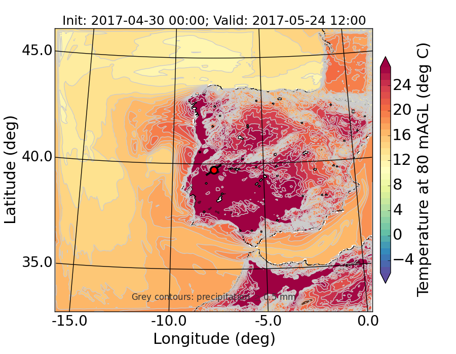 WRF d01 80 m AGL temperature