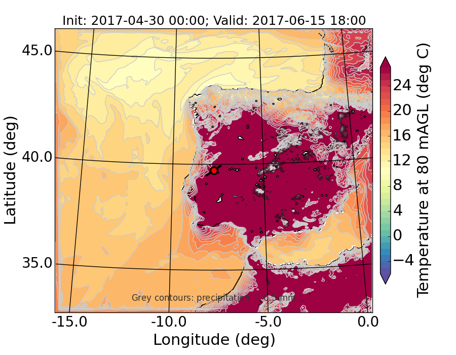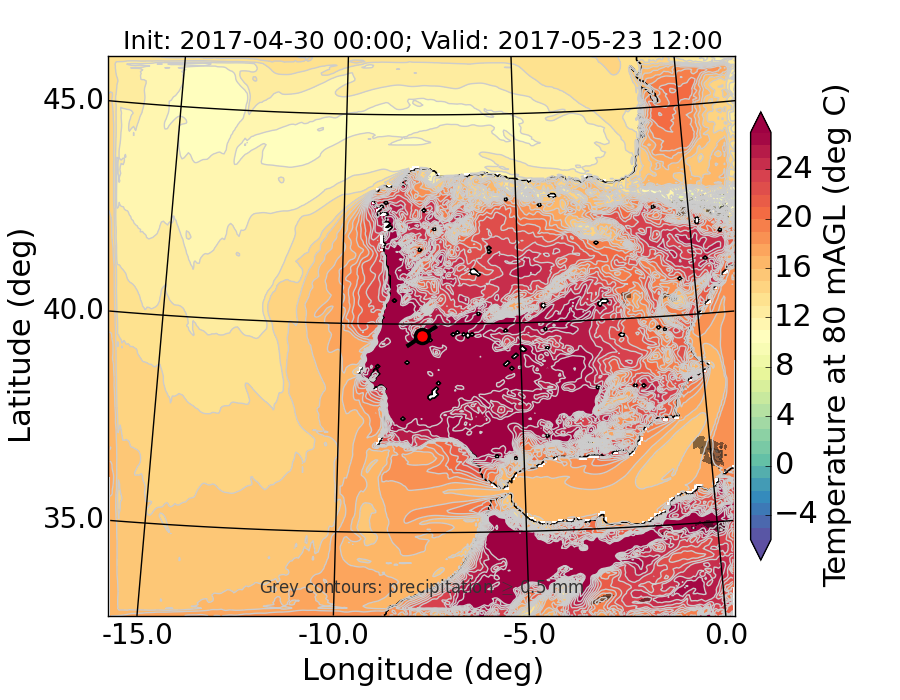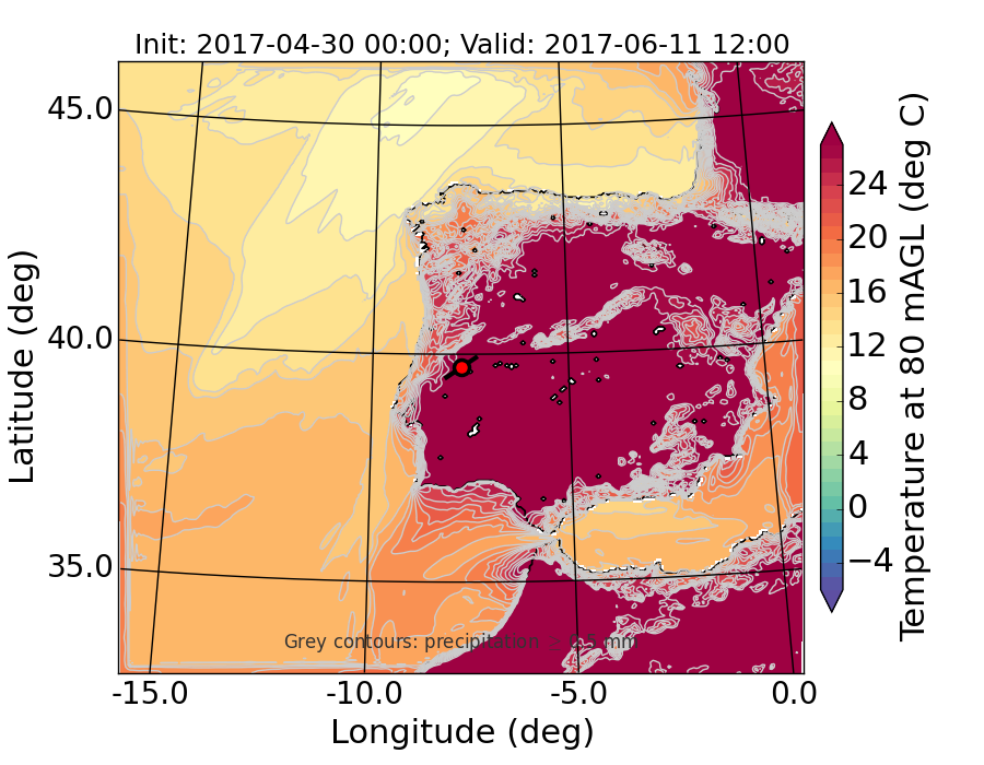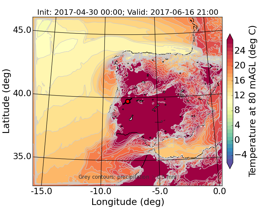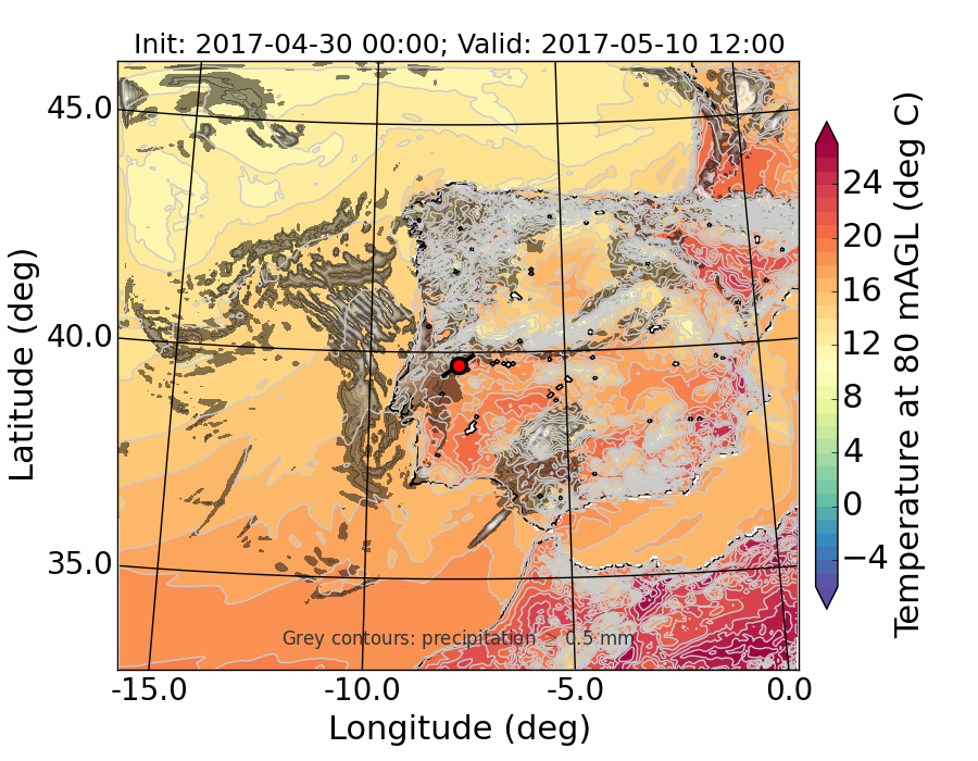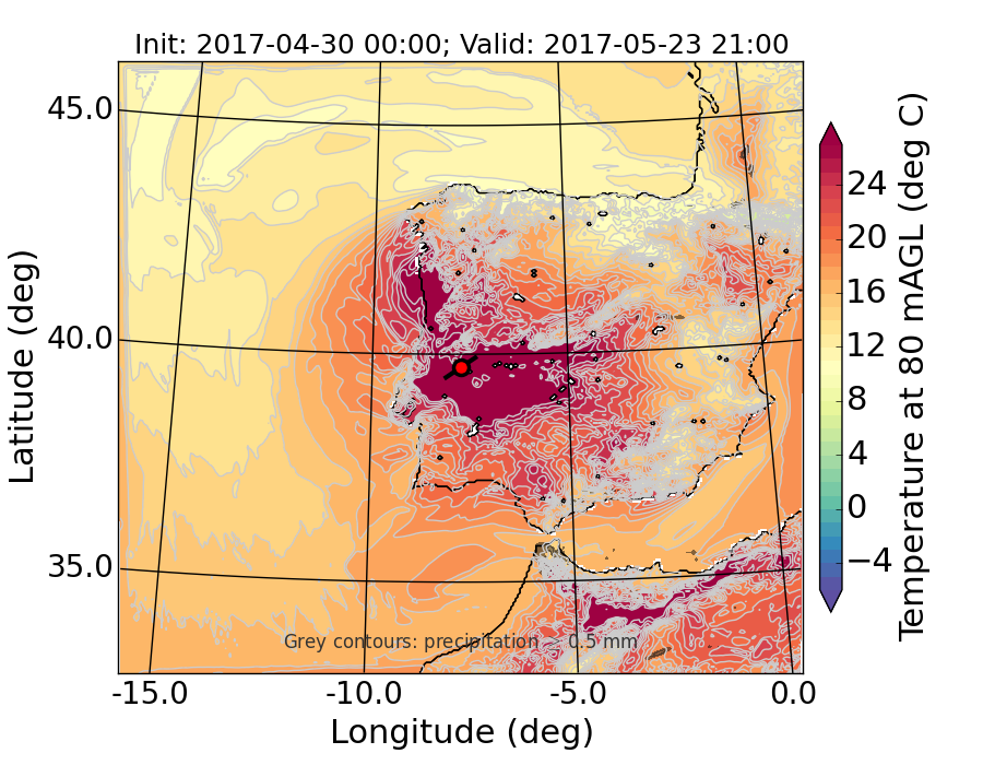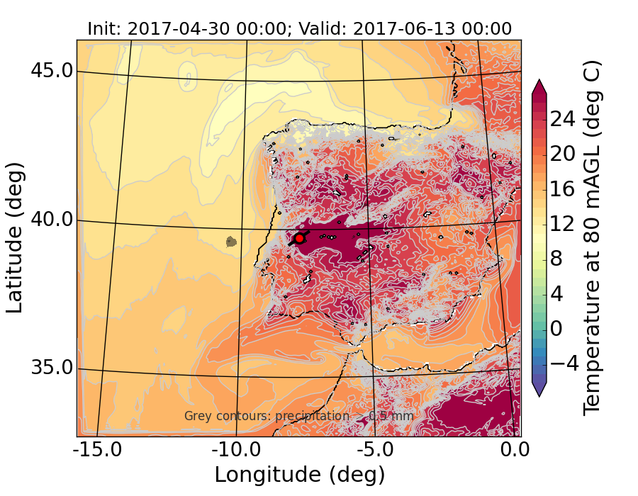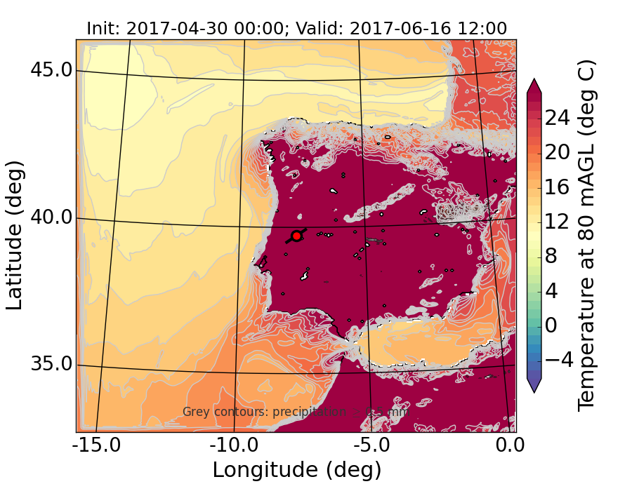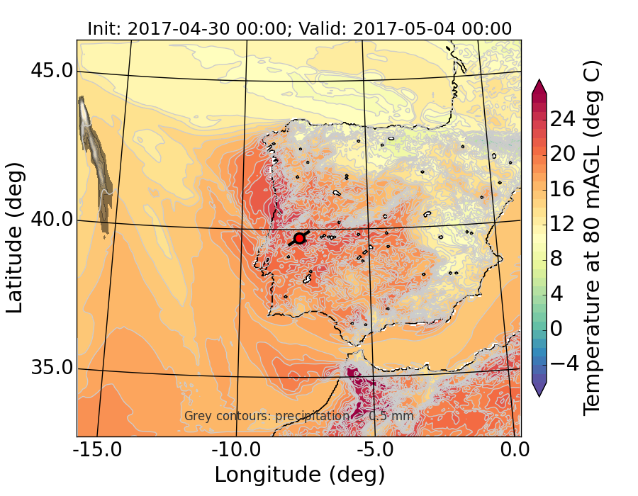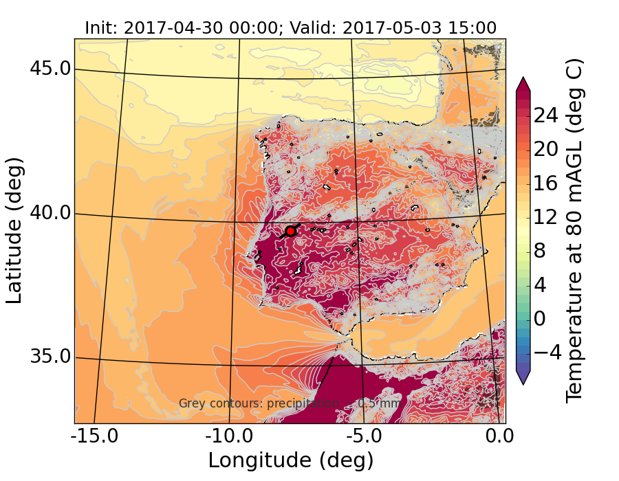 WRF d01 80 m AGL temperature