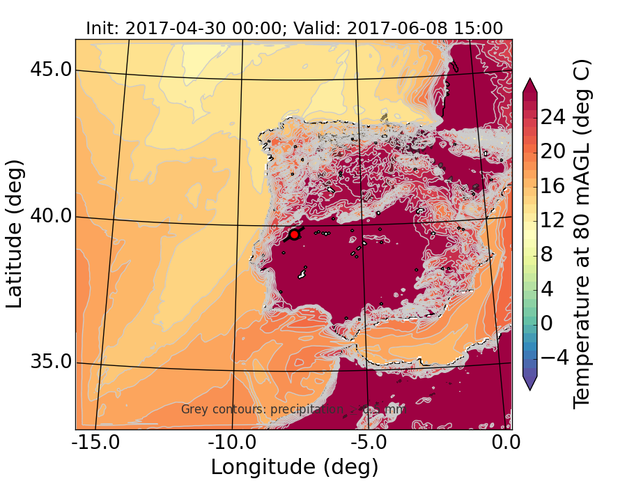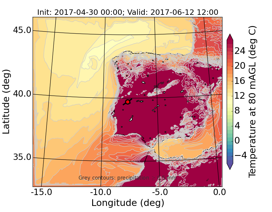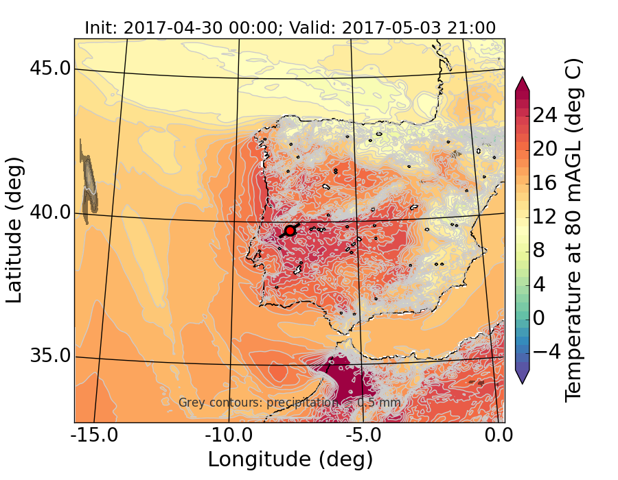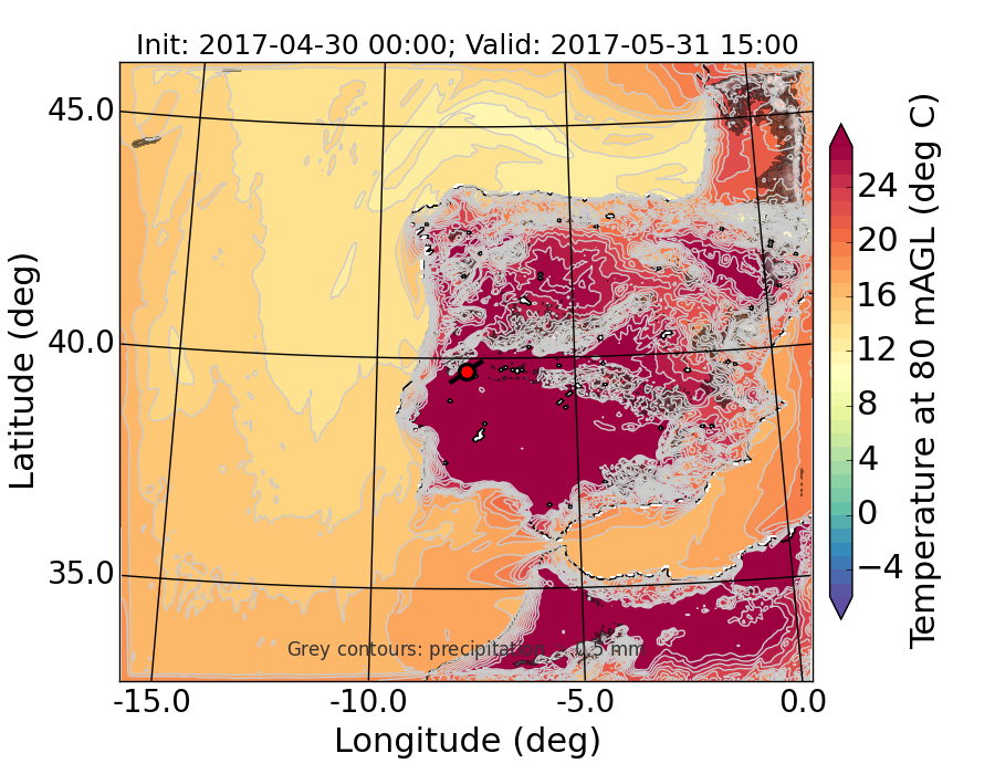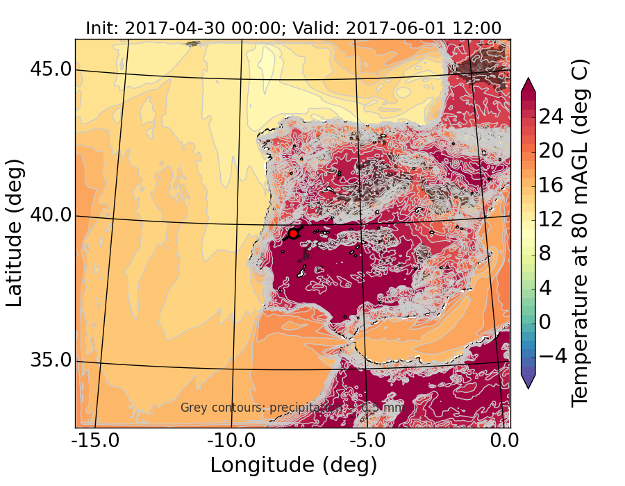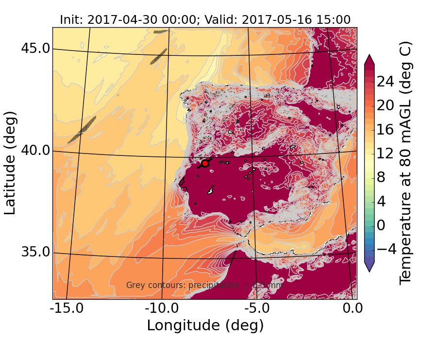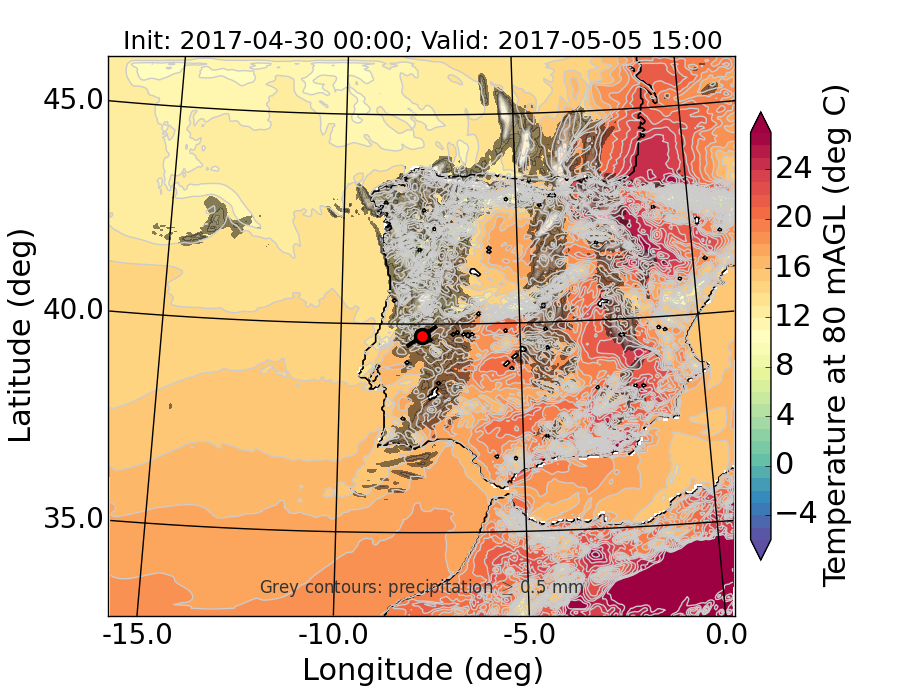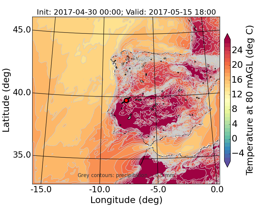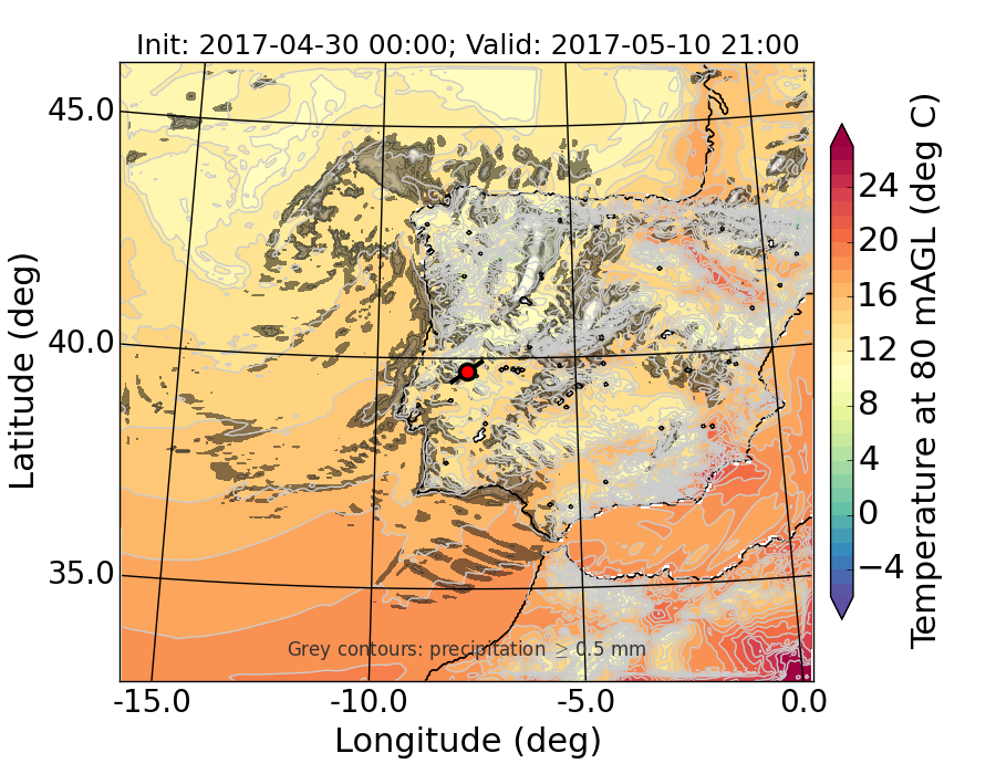 WRF d01 80 m AGL temperature