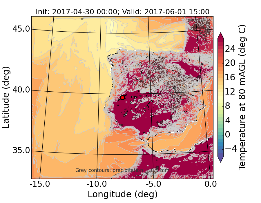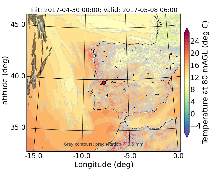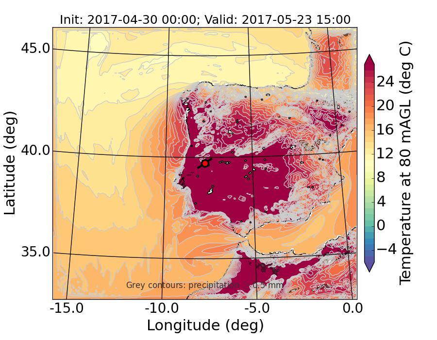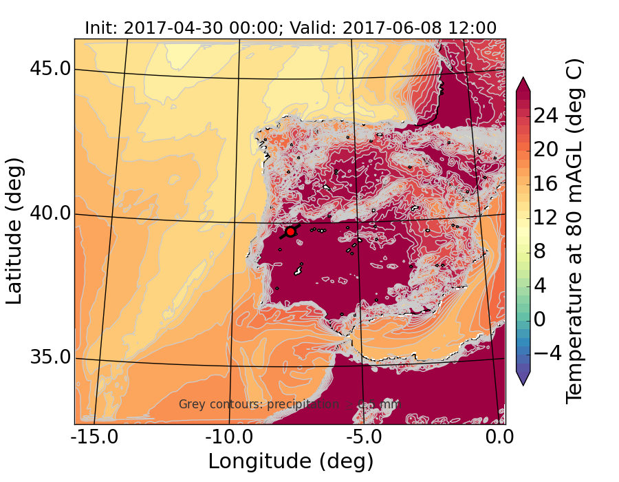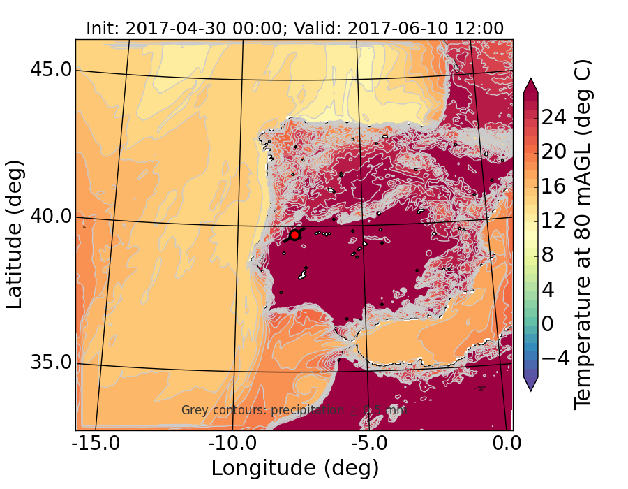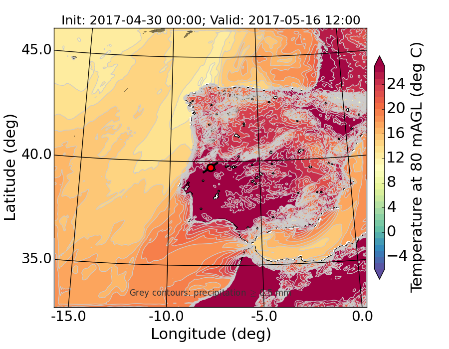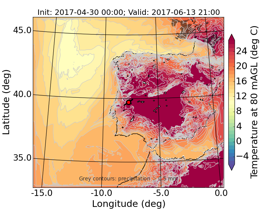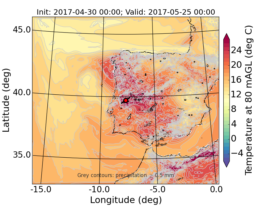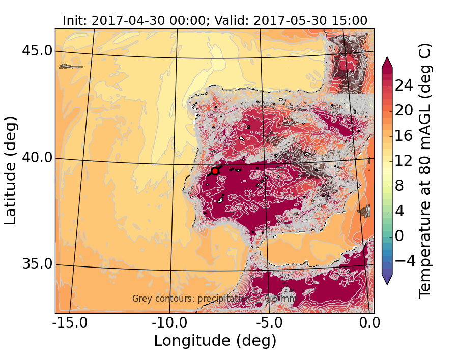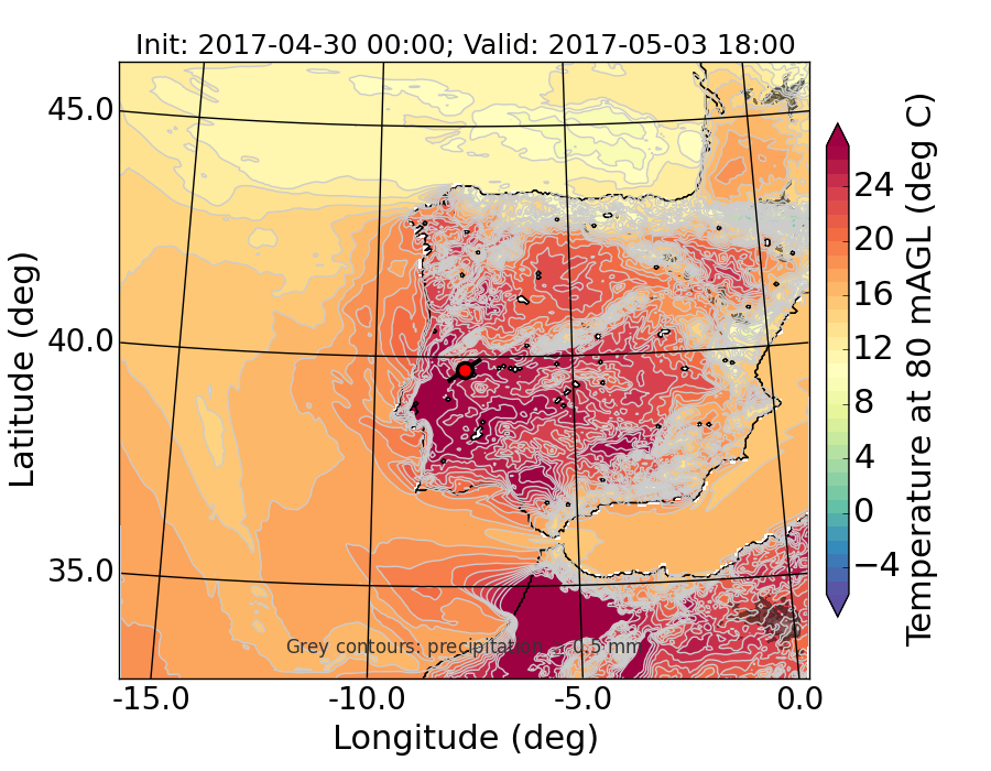 WRF d01 80 m AGL temperature