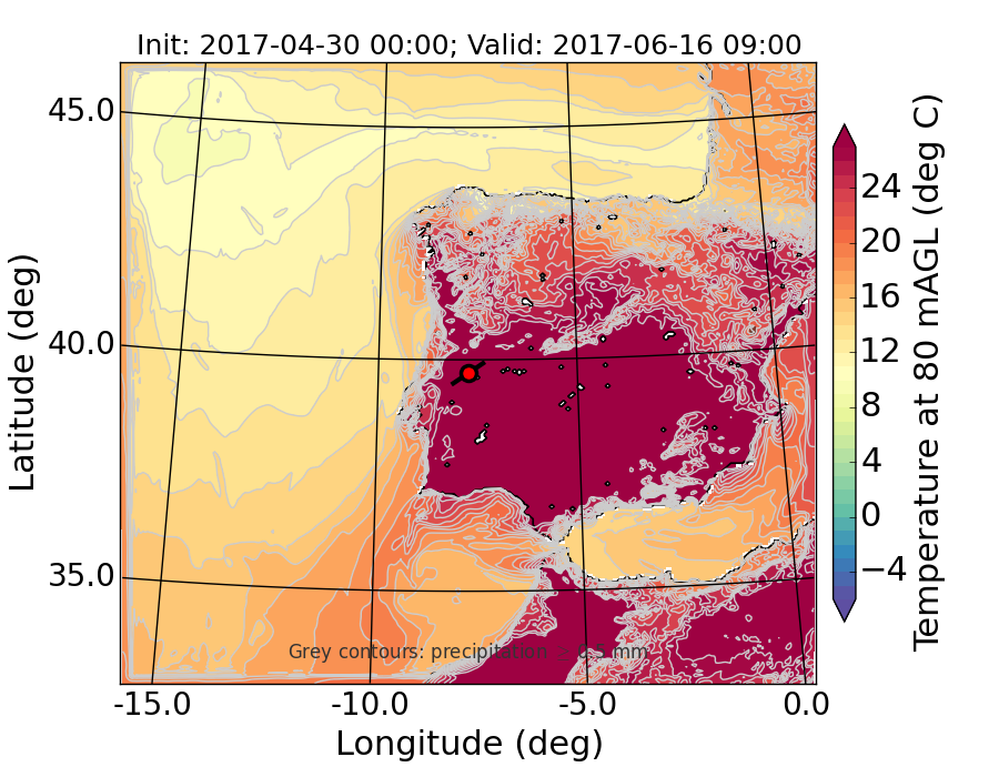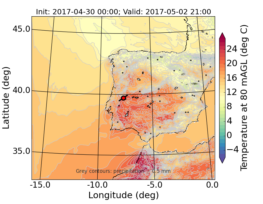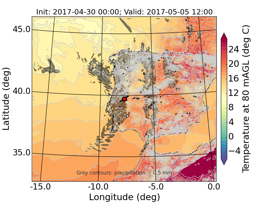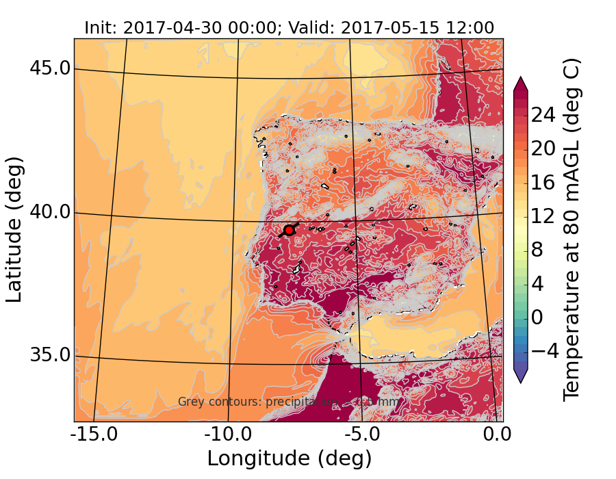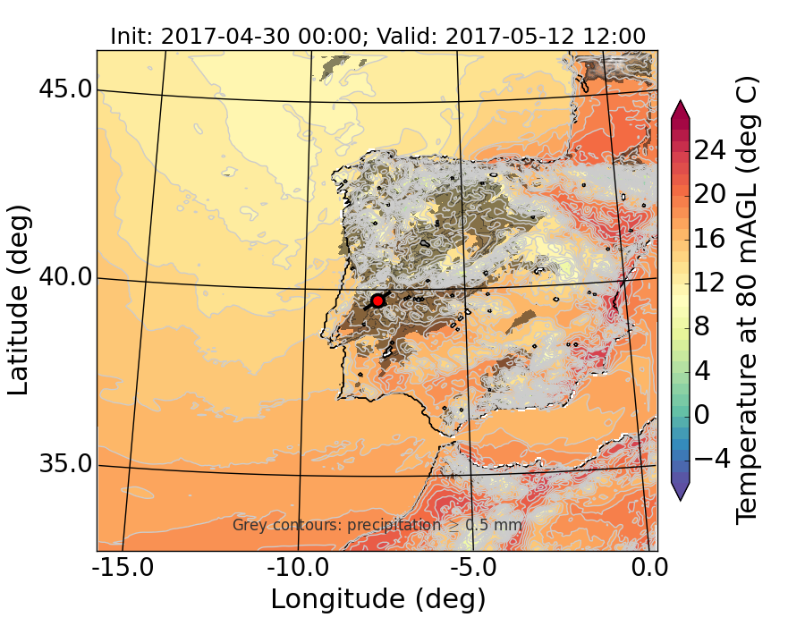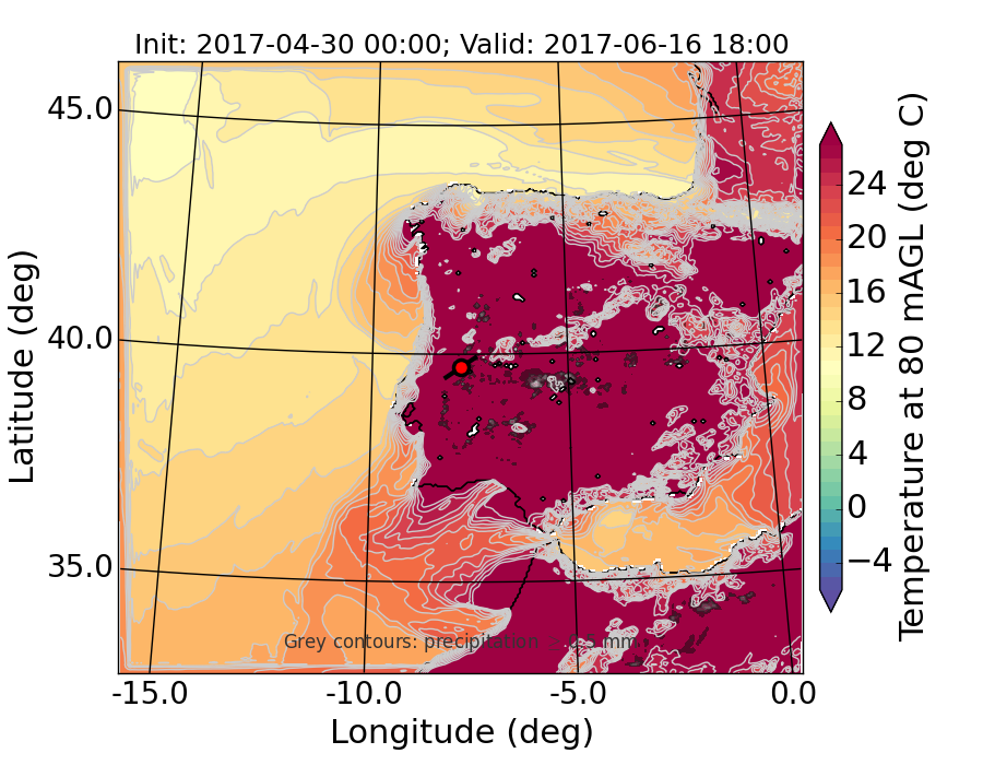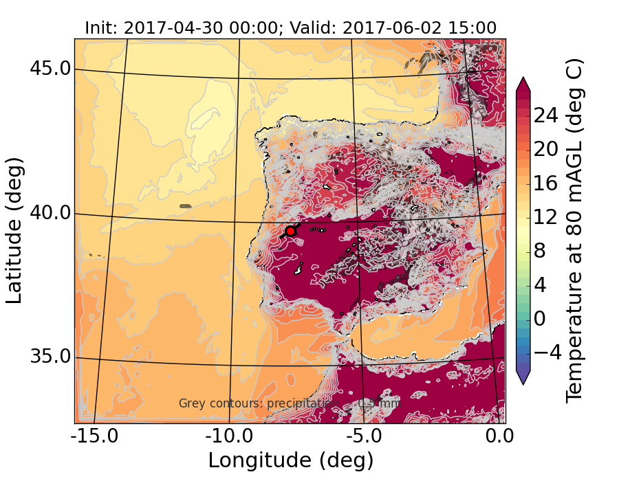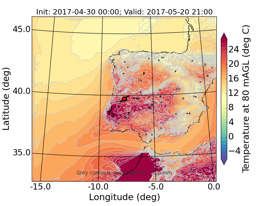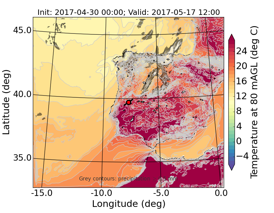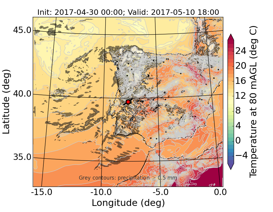 WRF d01 80 m AGL temperature