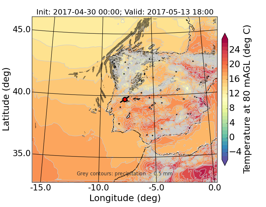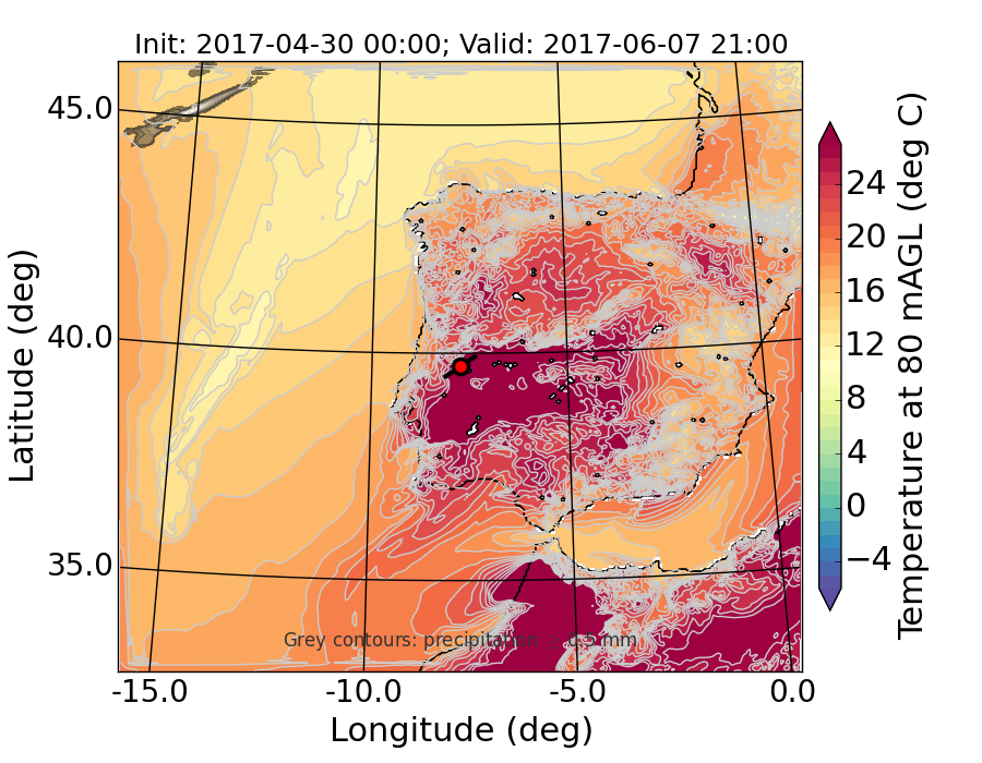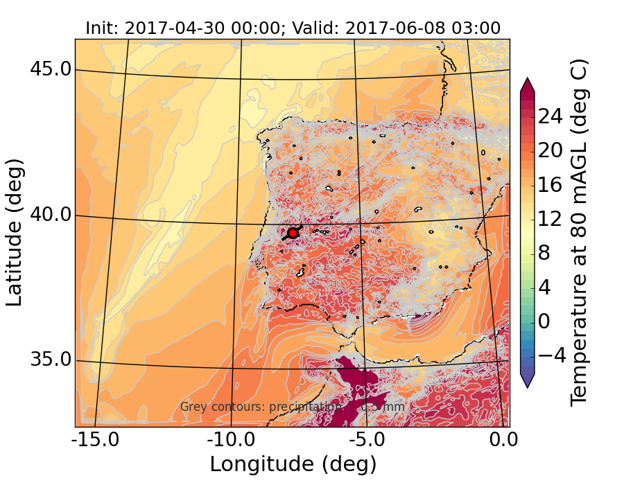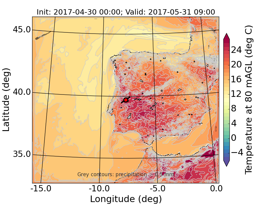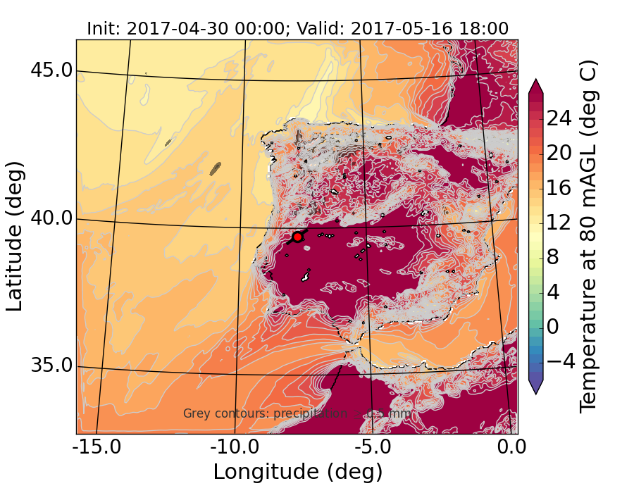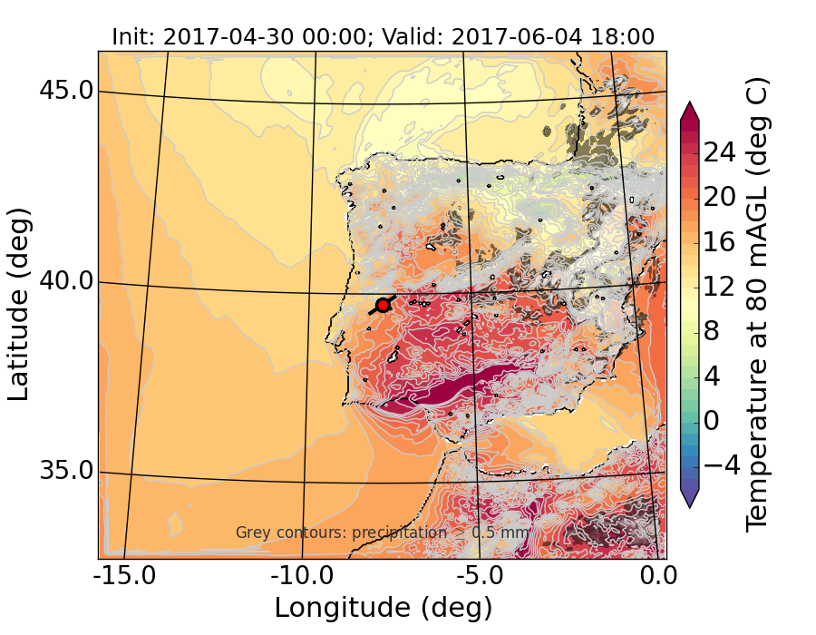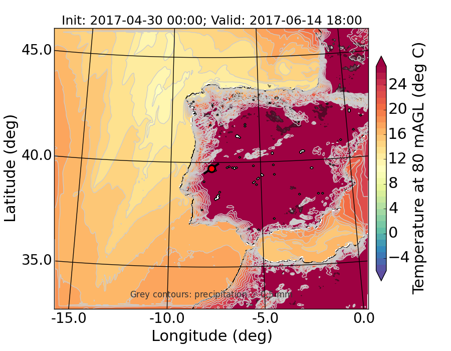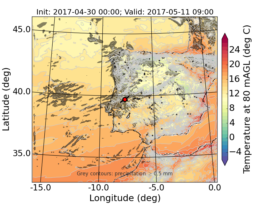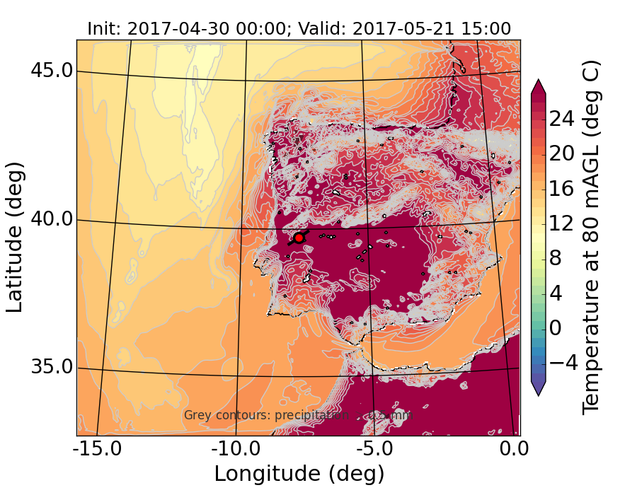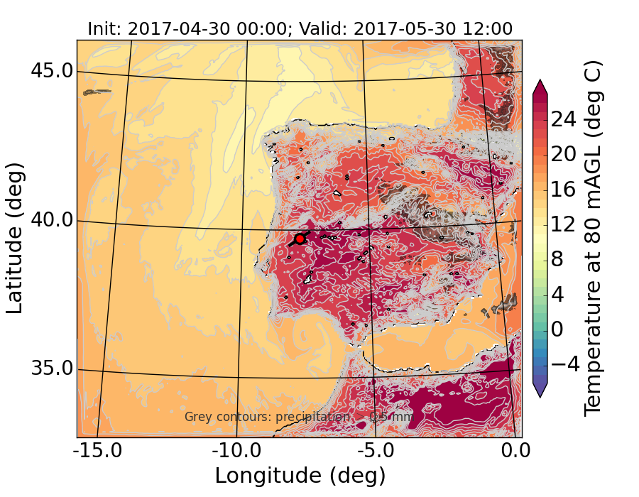 WRF d01 80 m AGL temperature
