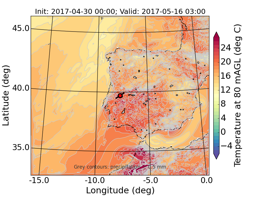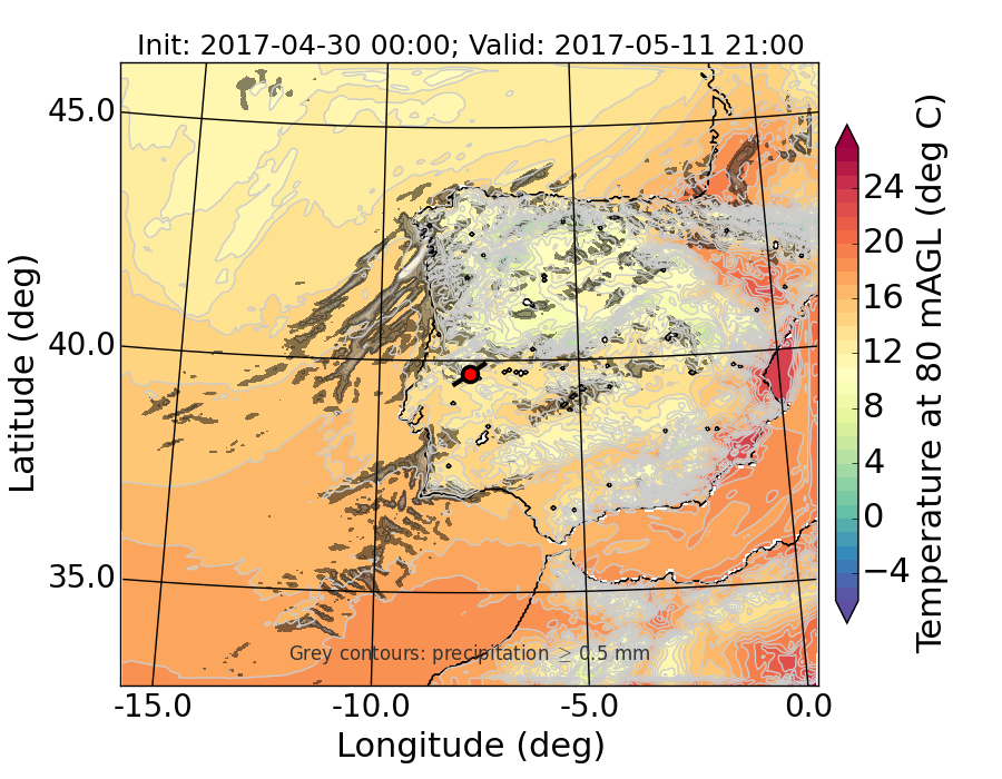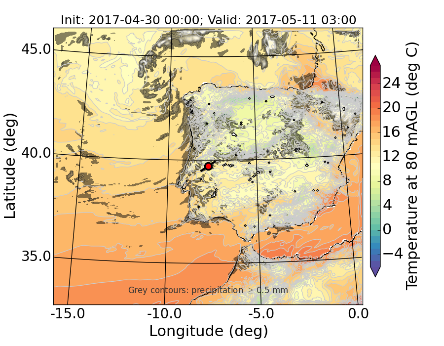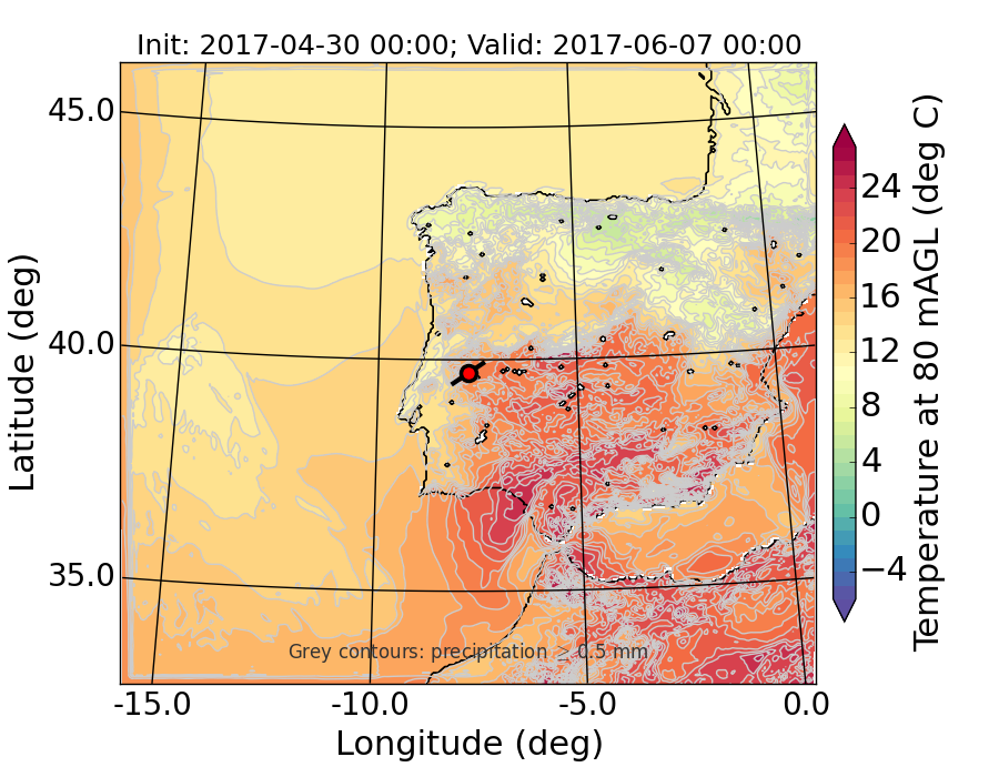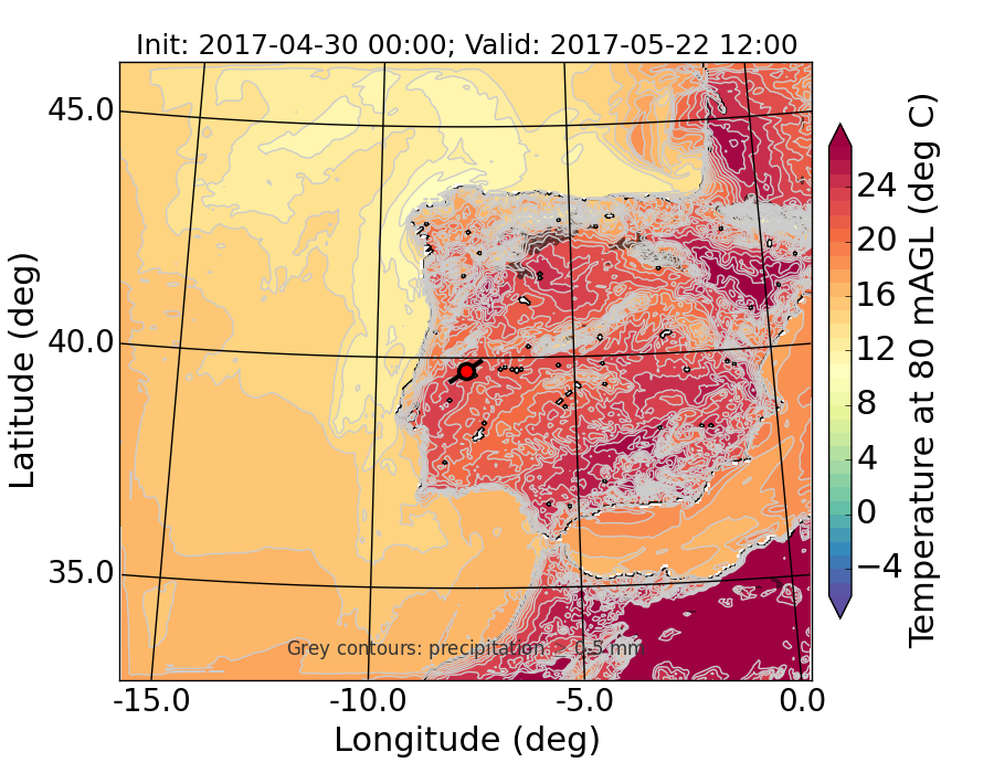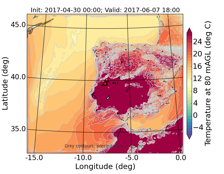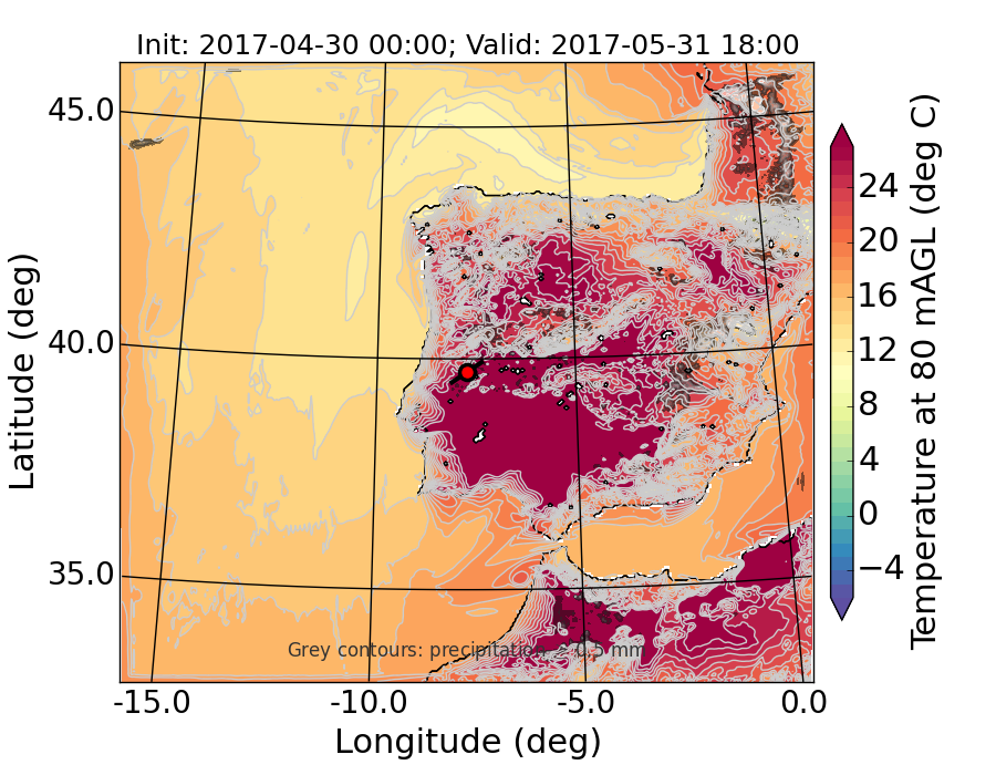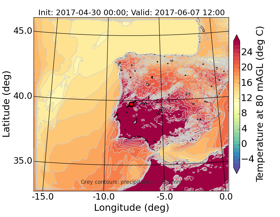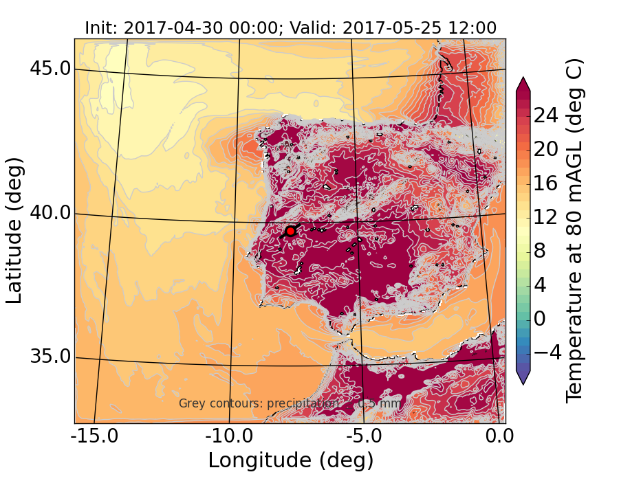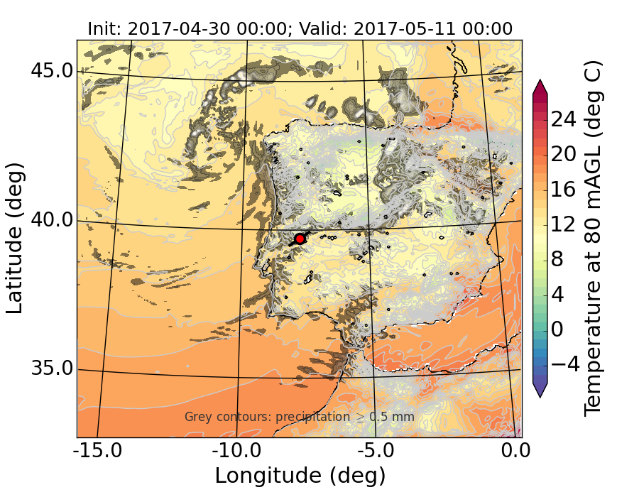 WRF d01 80 m AGL temperature