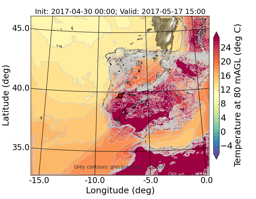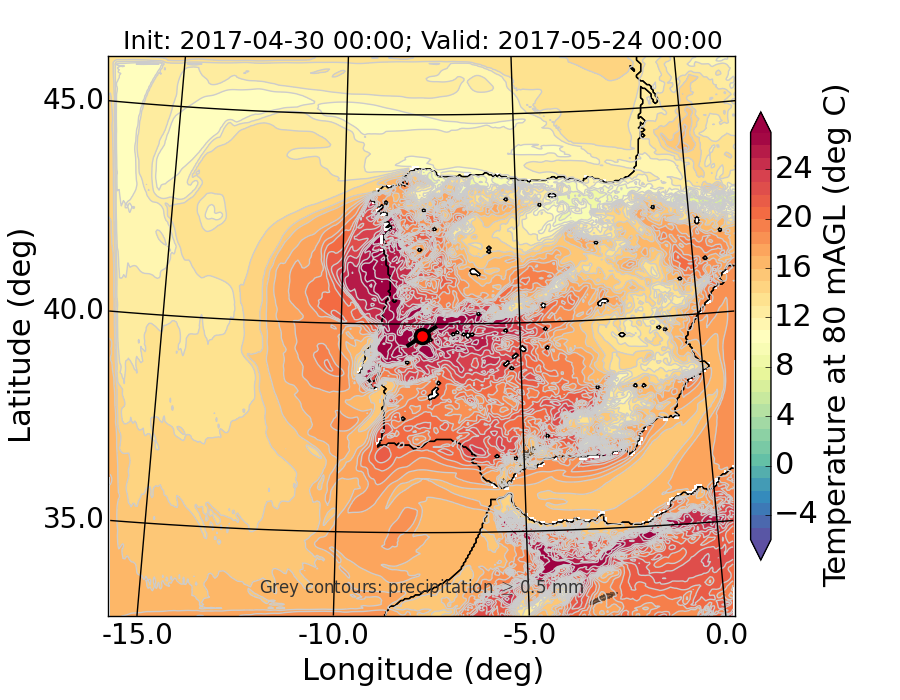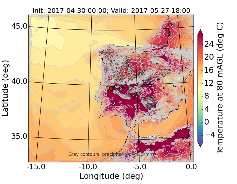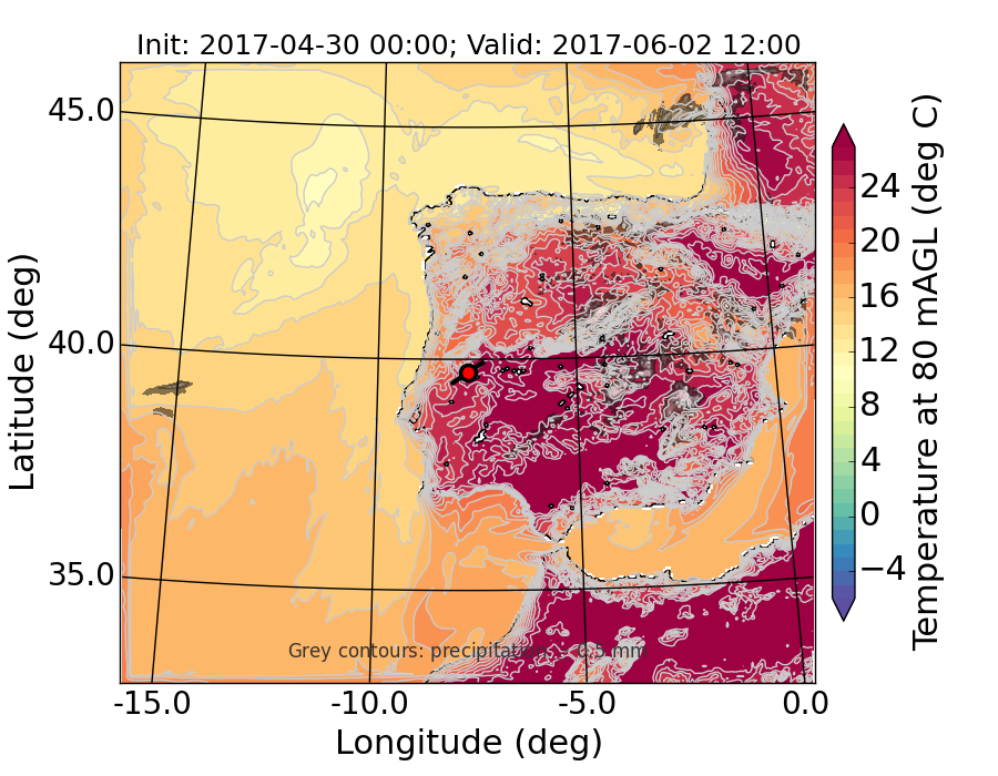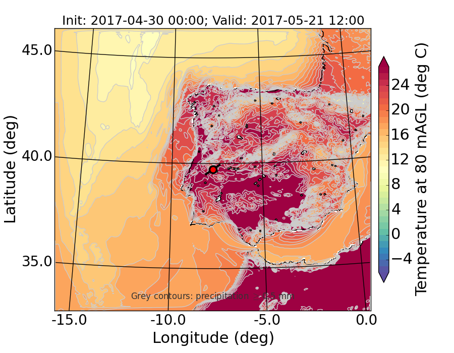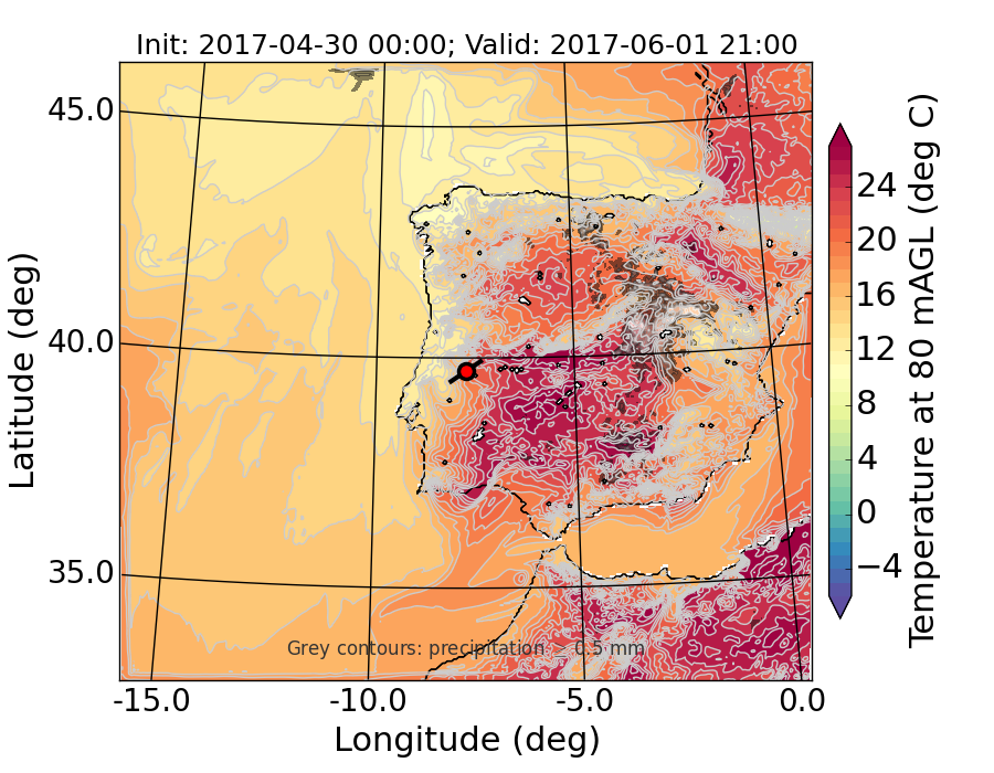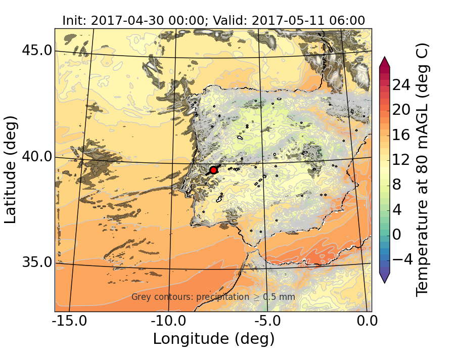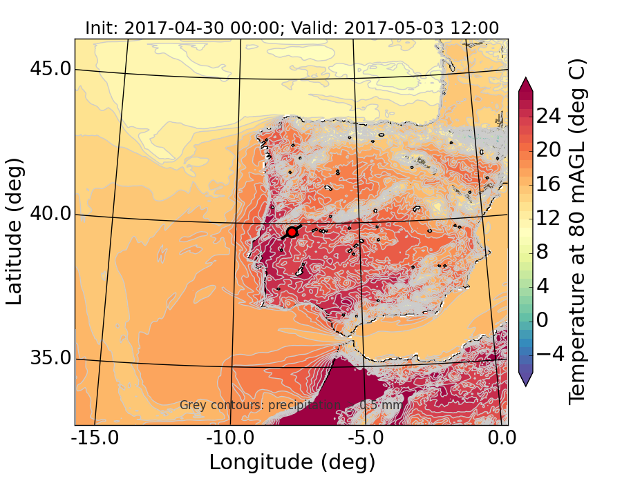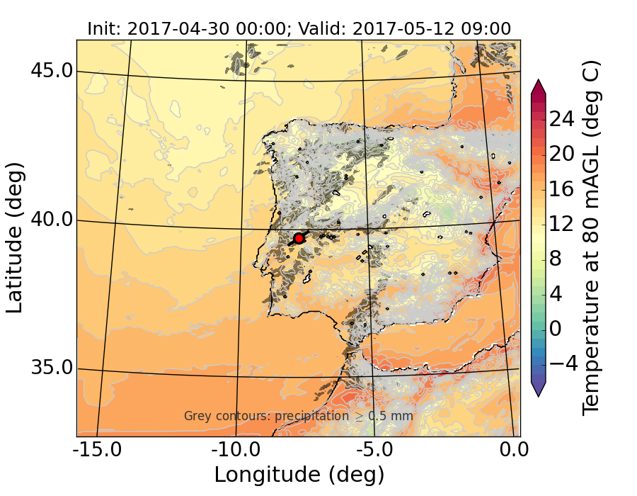 WRF d01 80 m AGL temperature