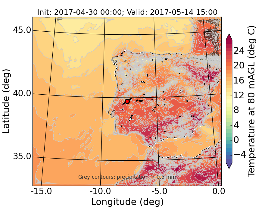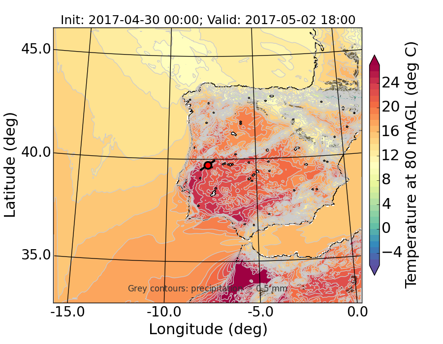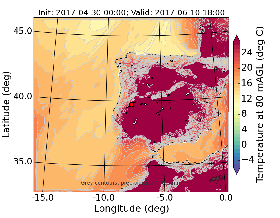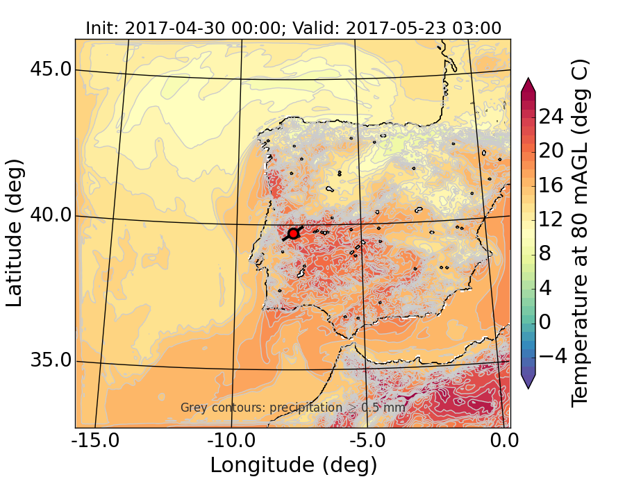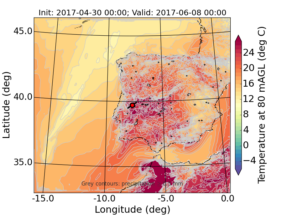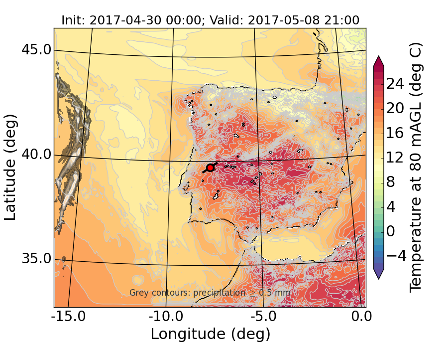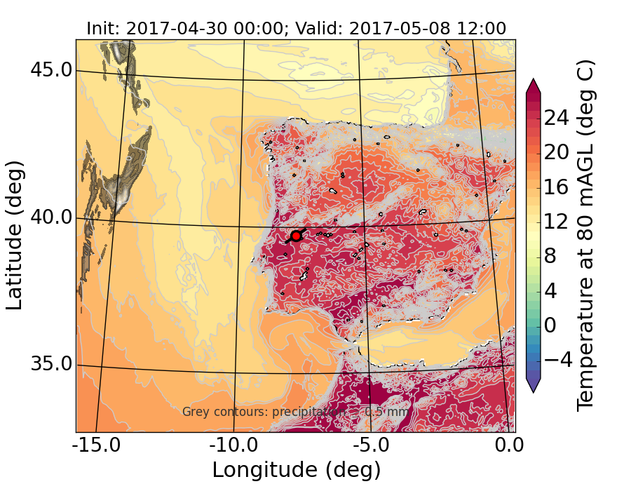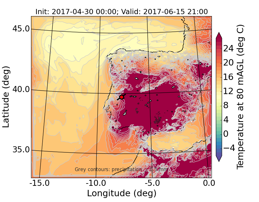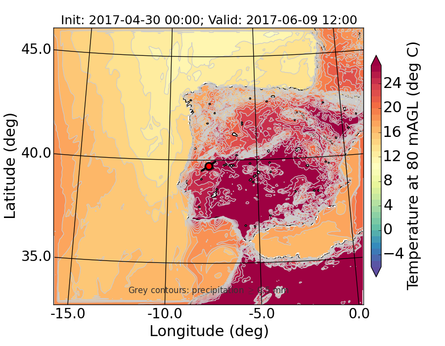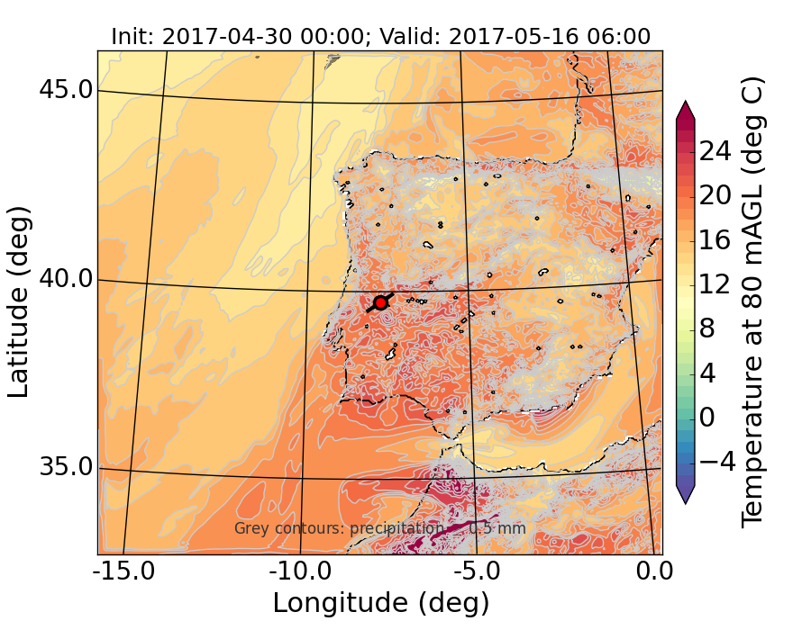 WRF d01 80 m AGL temperature