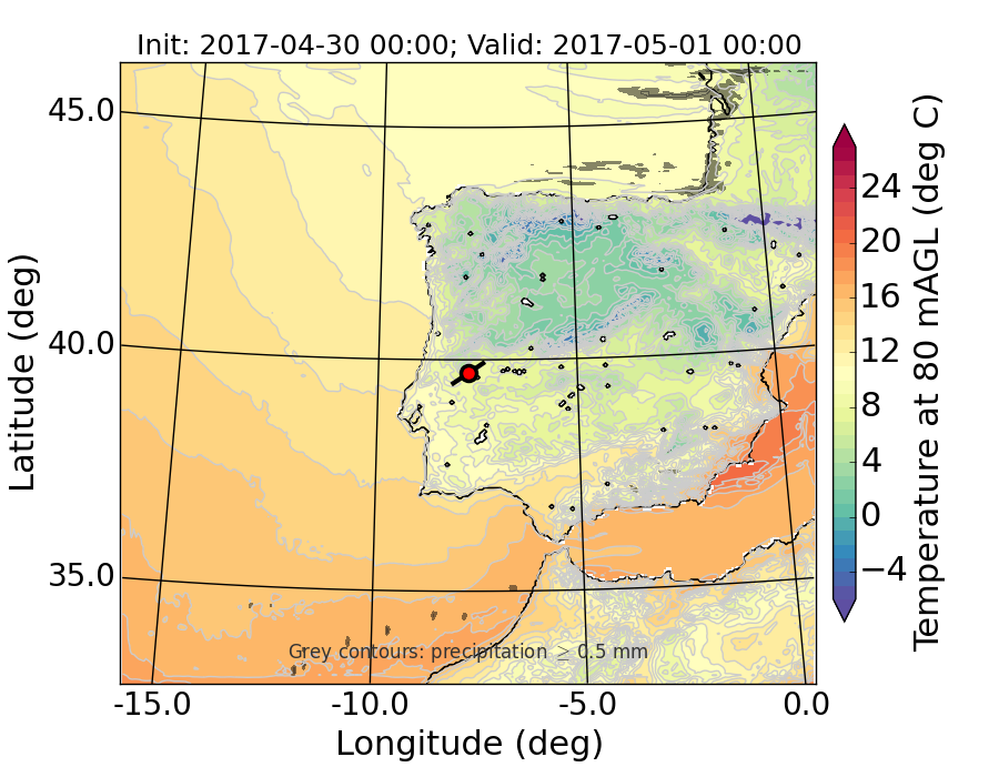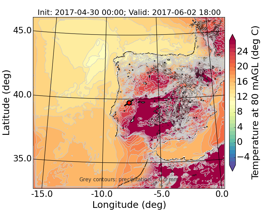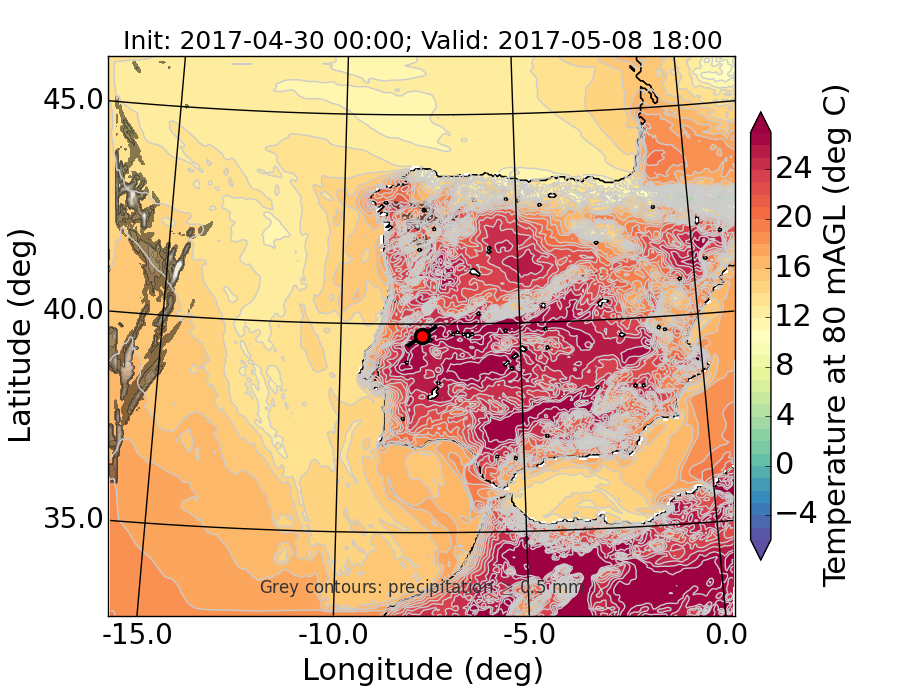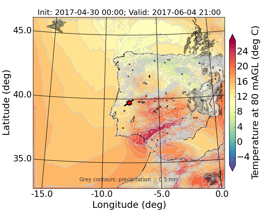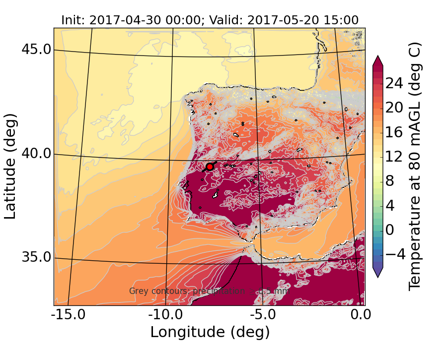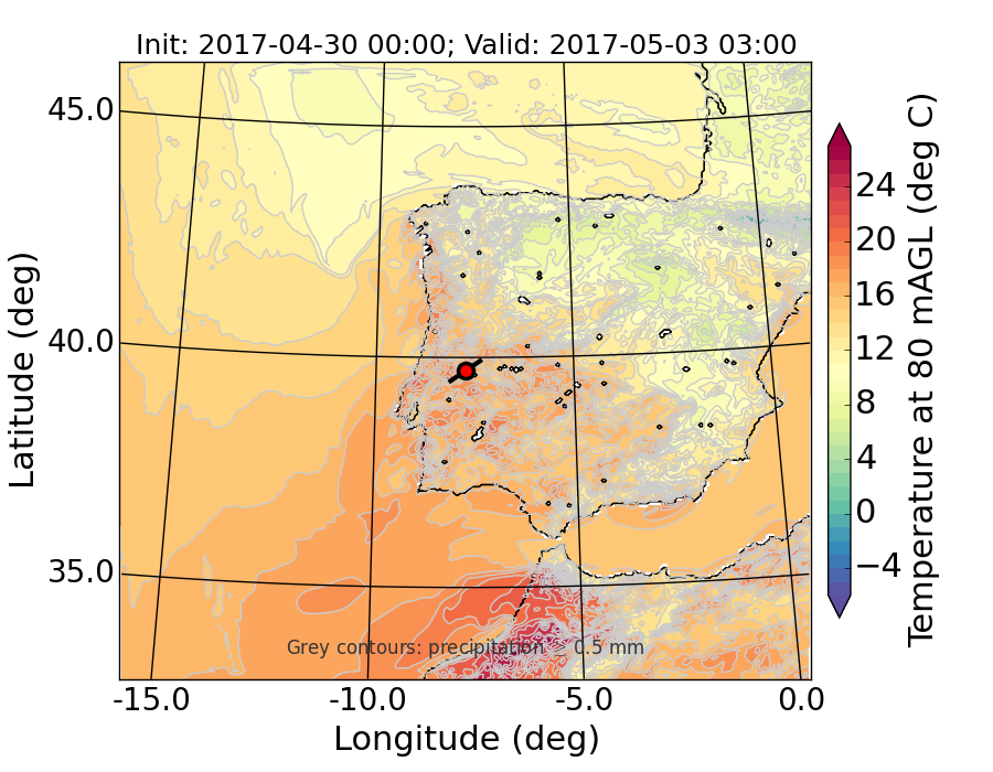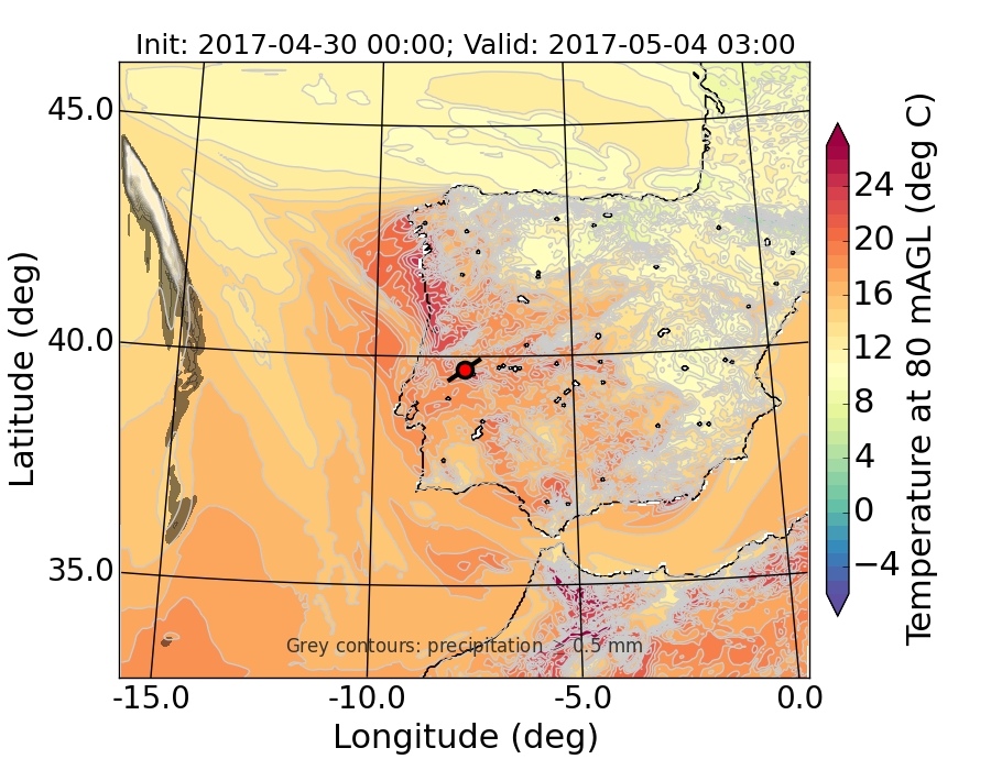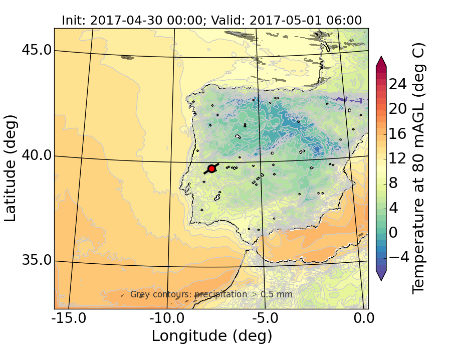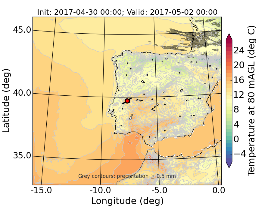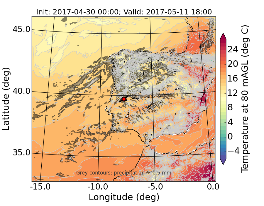 WRF d01 80 m AGL temperature