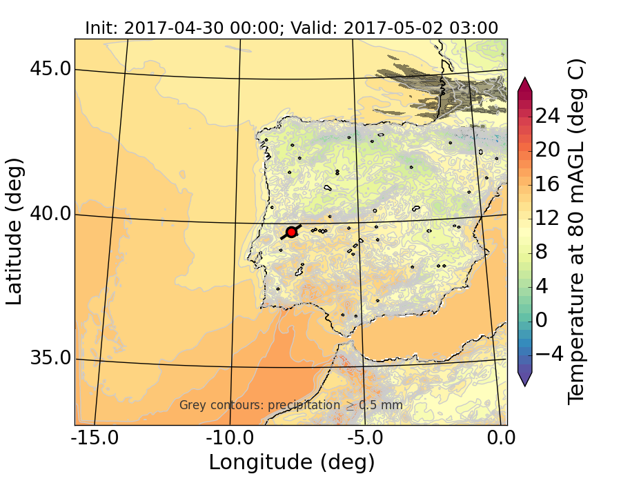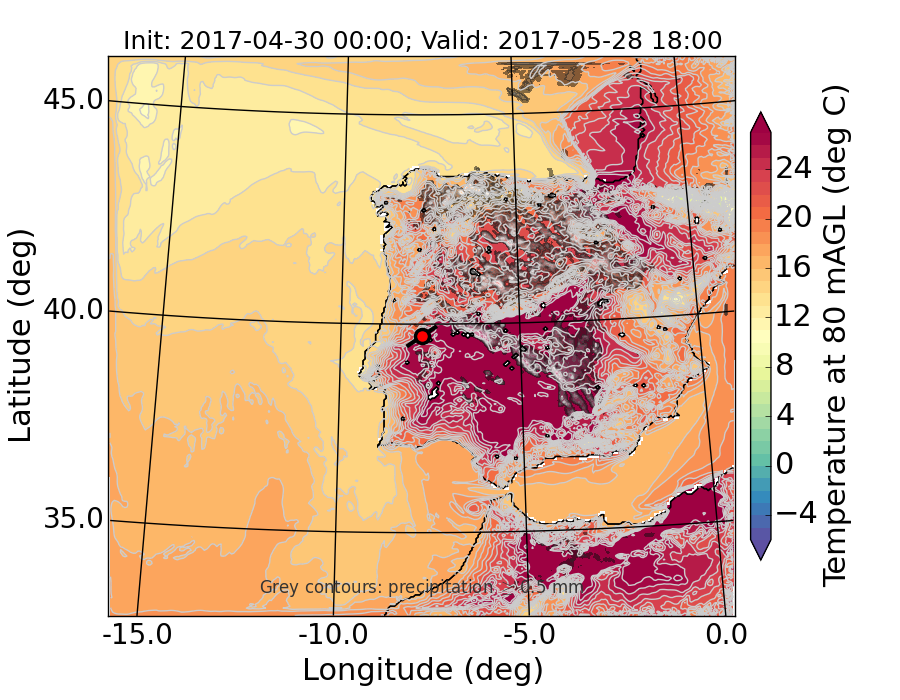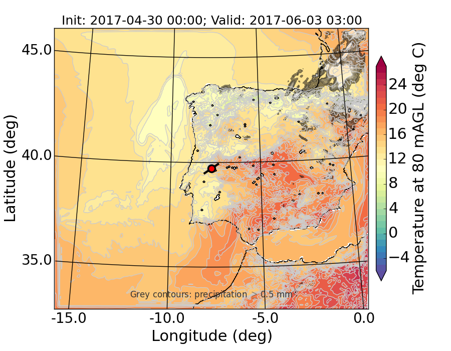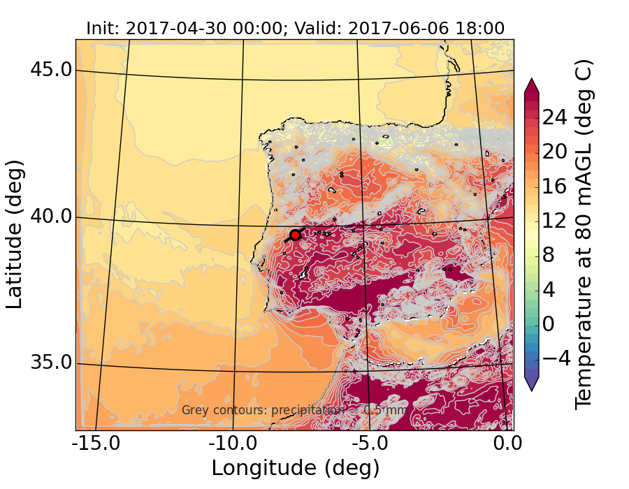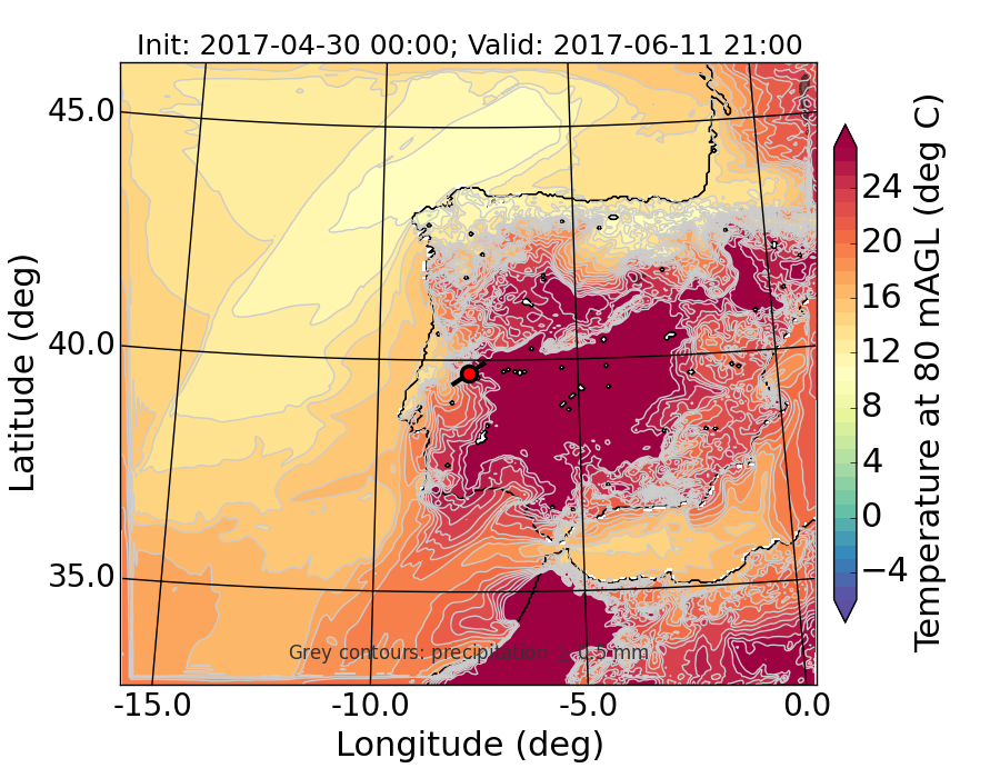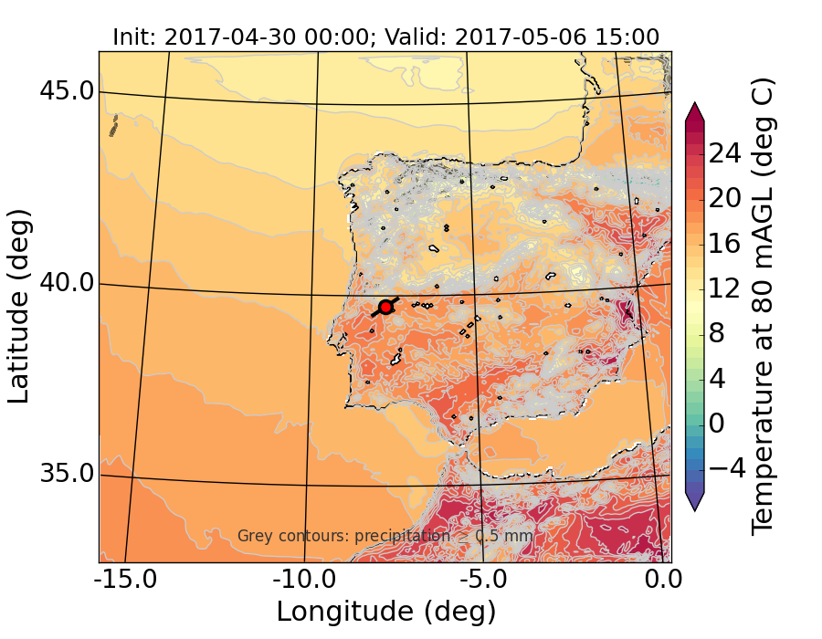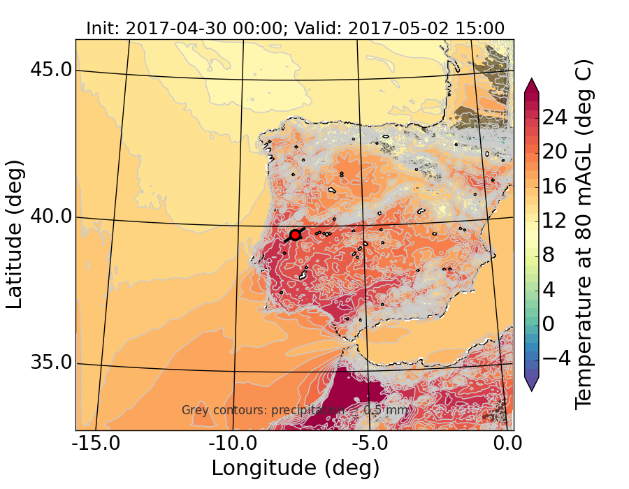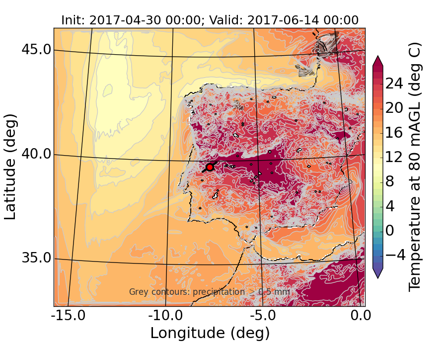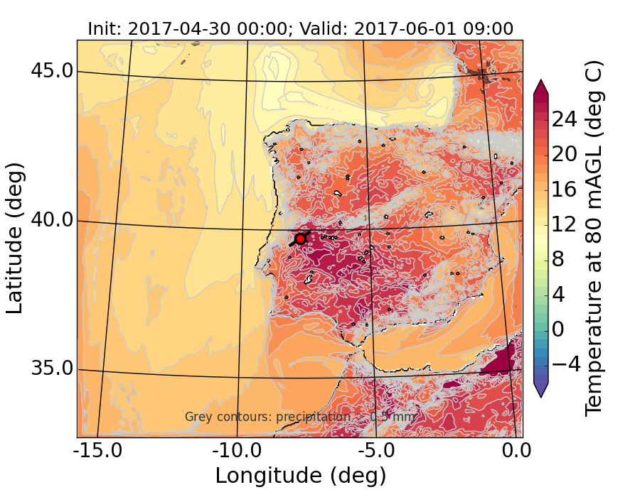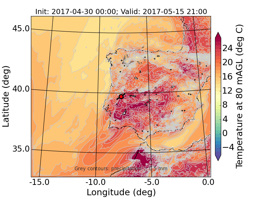 WRF d01 80 m AGL temperature