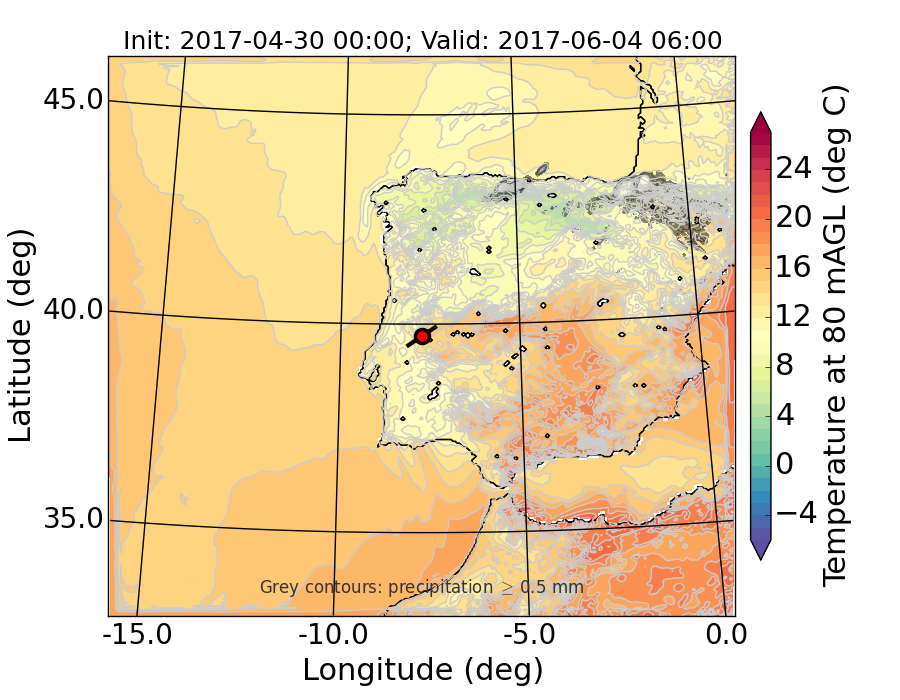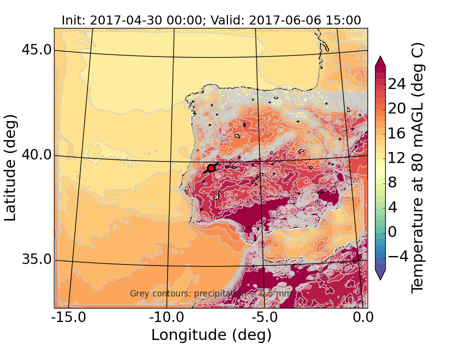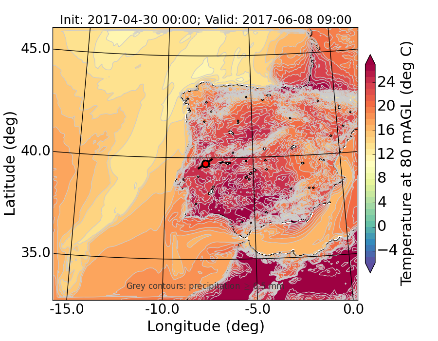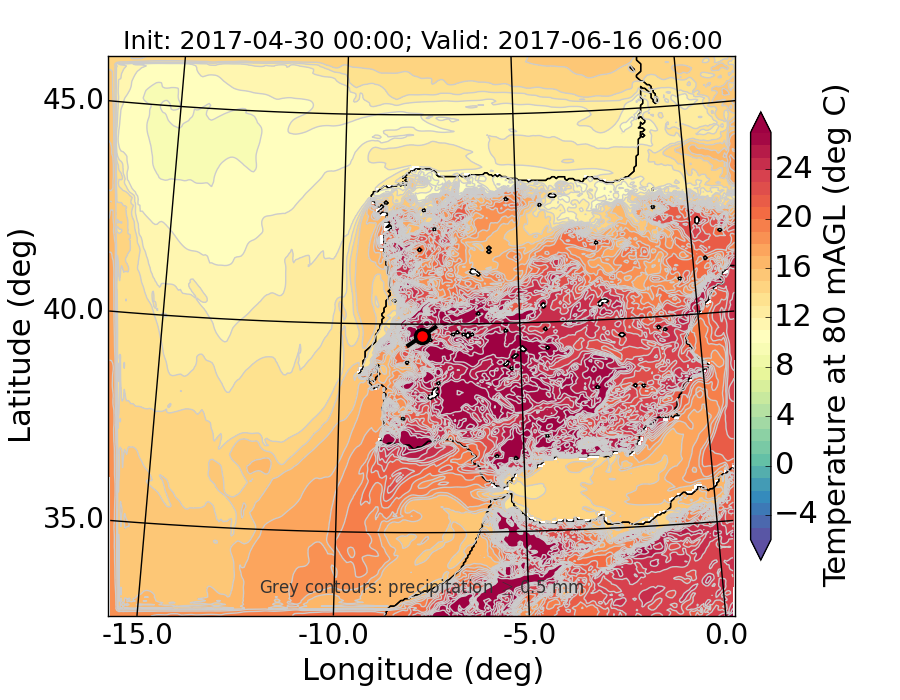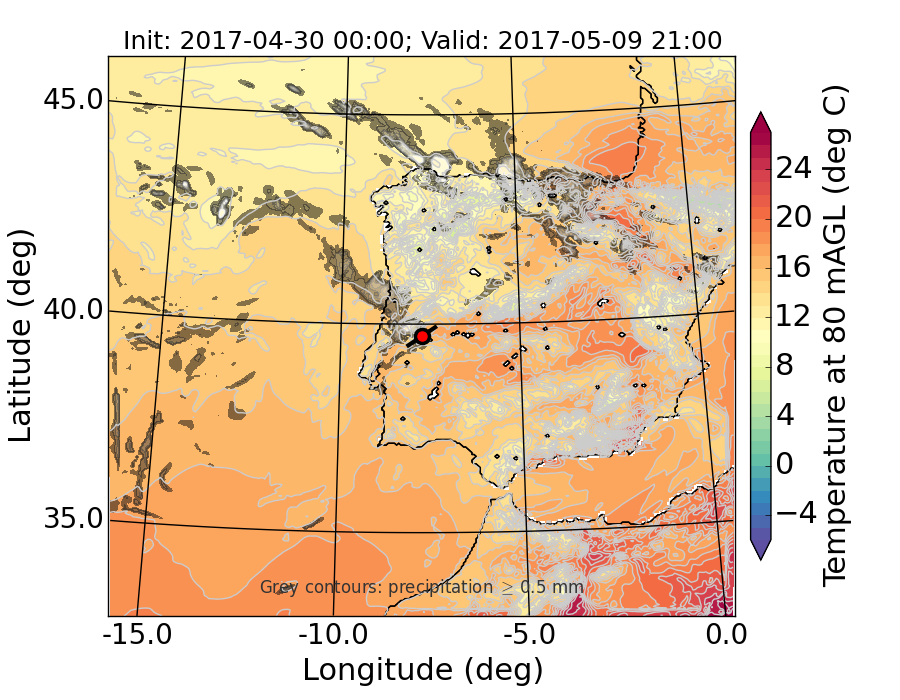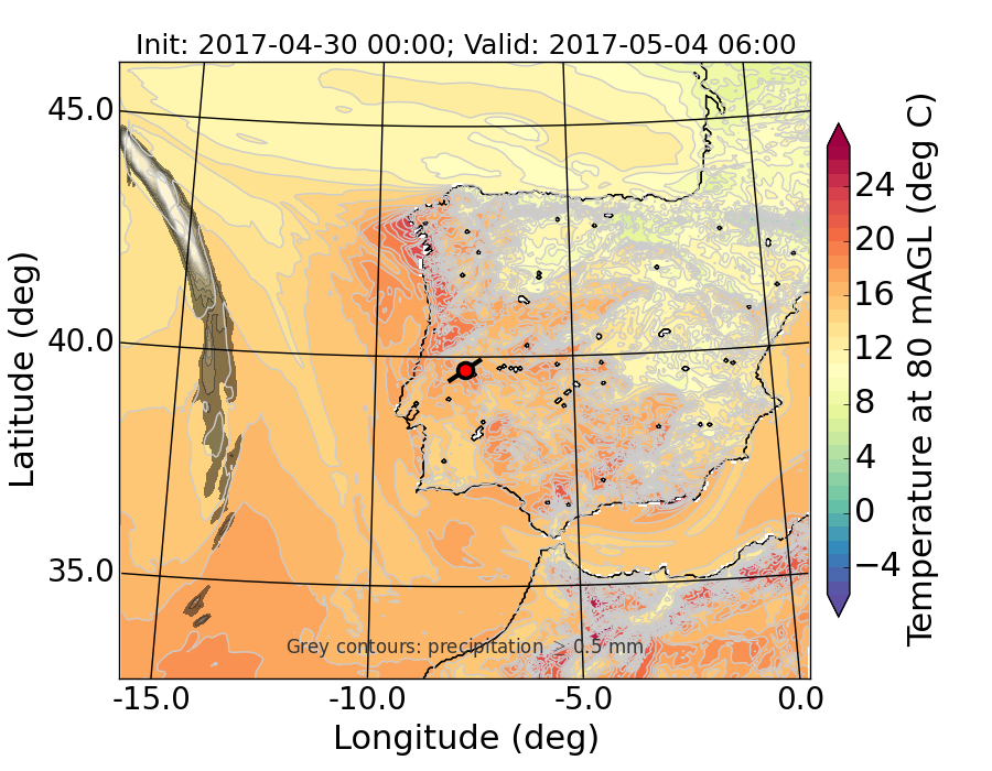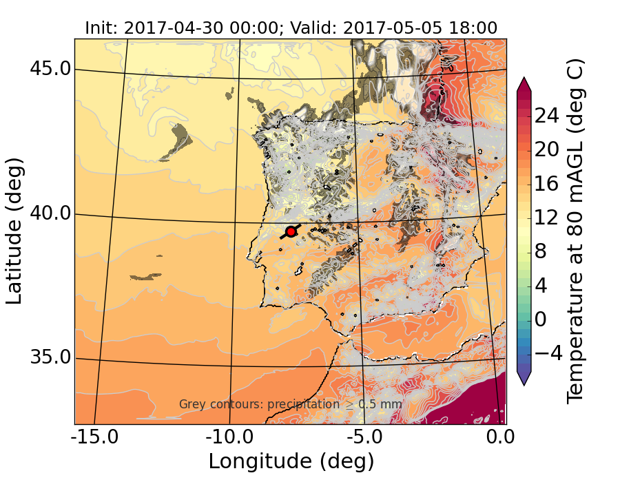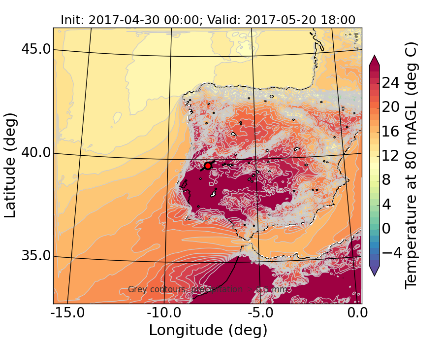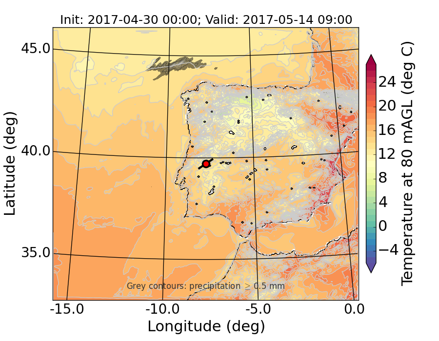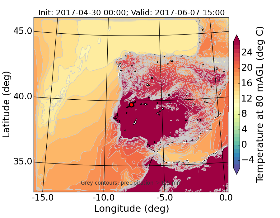 WRF d01 80 m AGL temperature