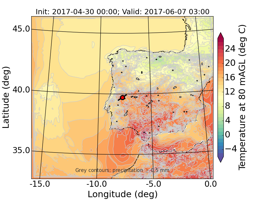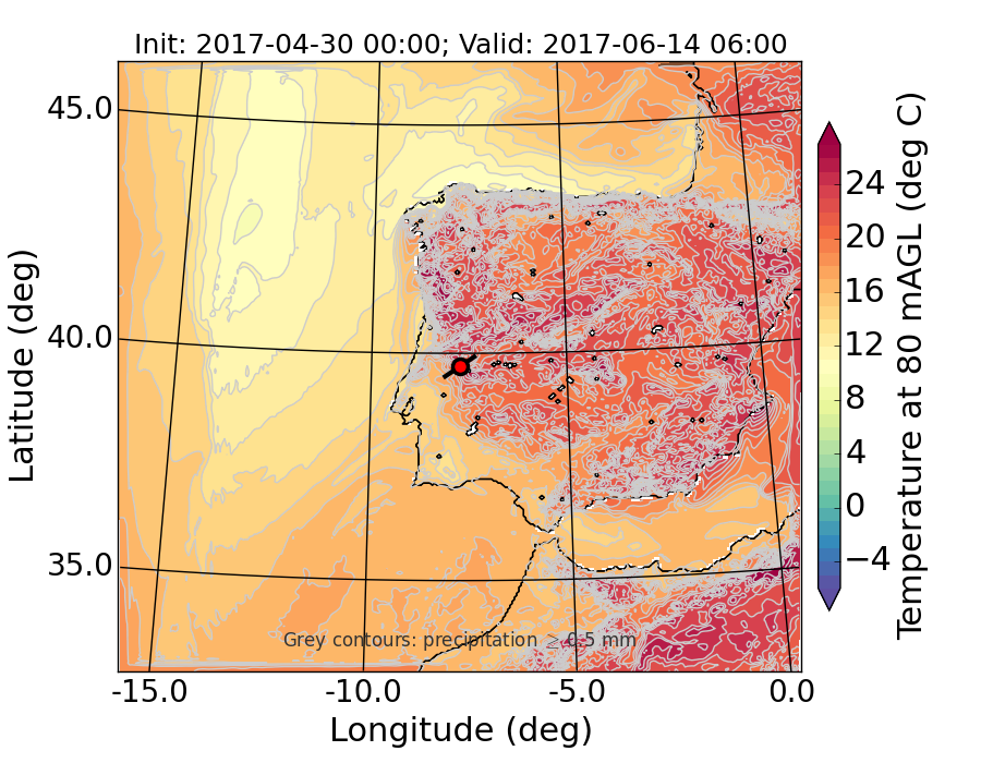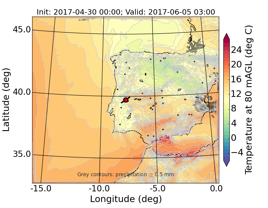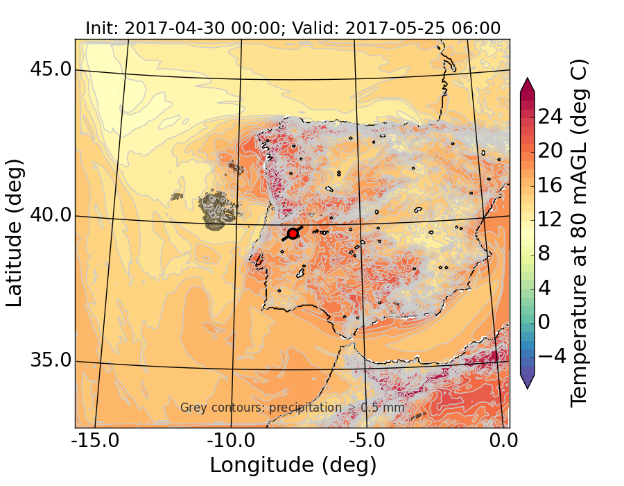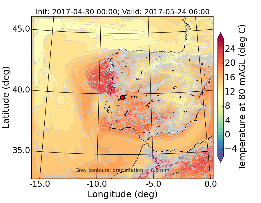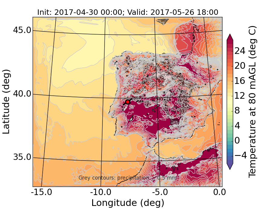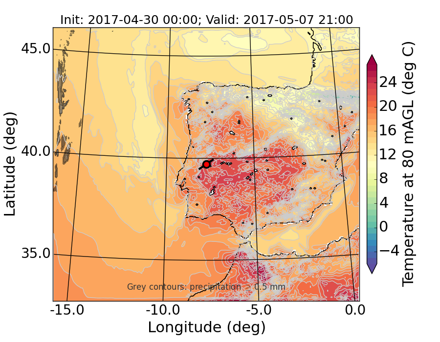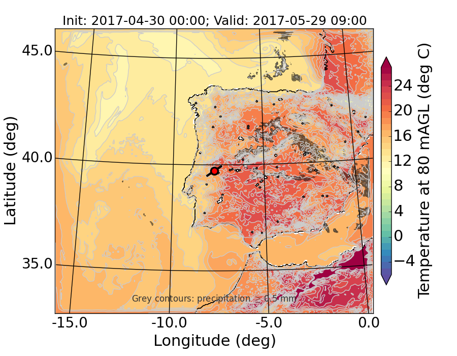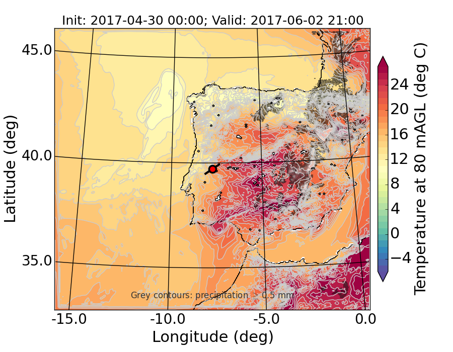 WRF d01 80 m AGL temperature