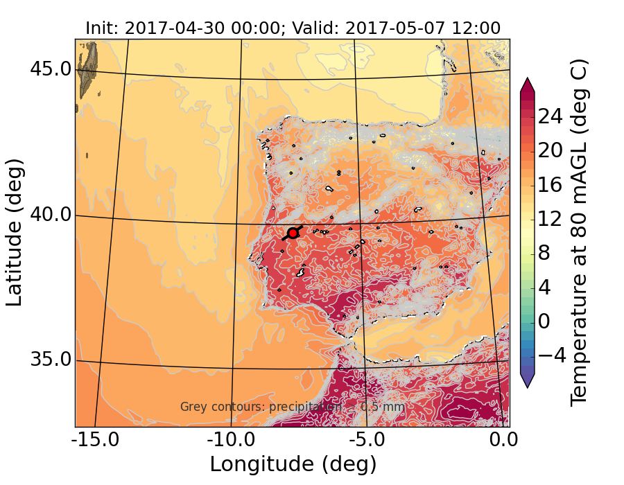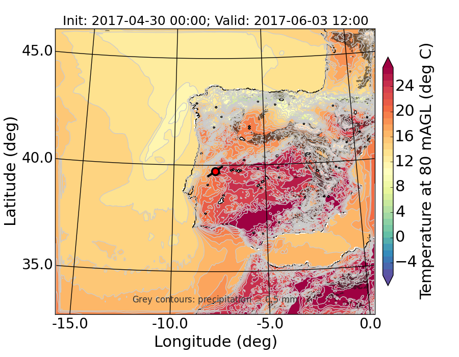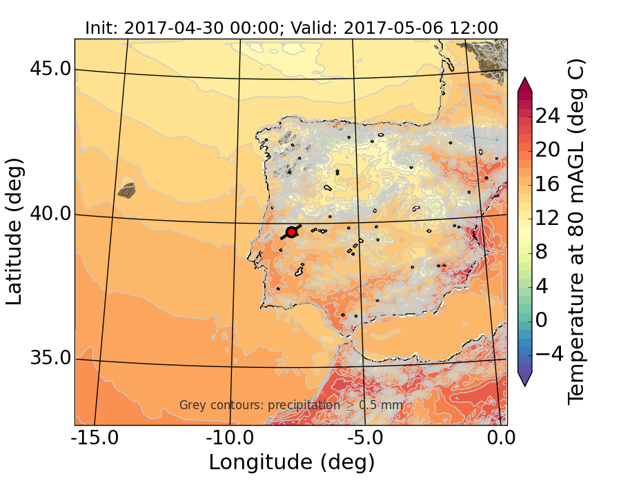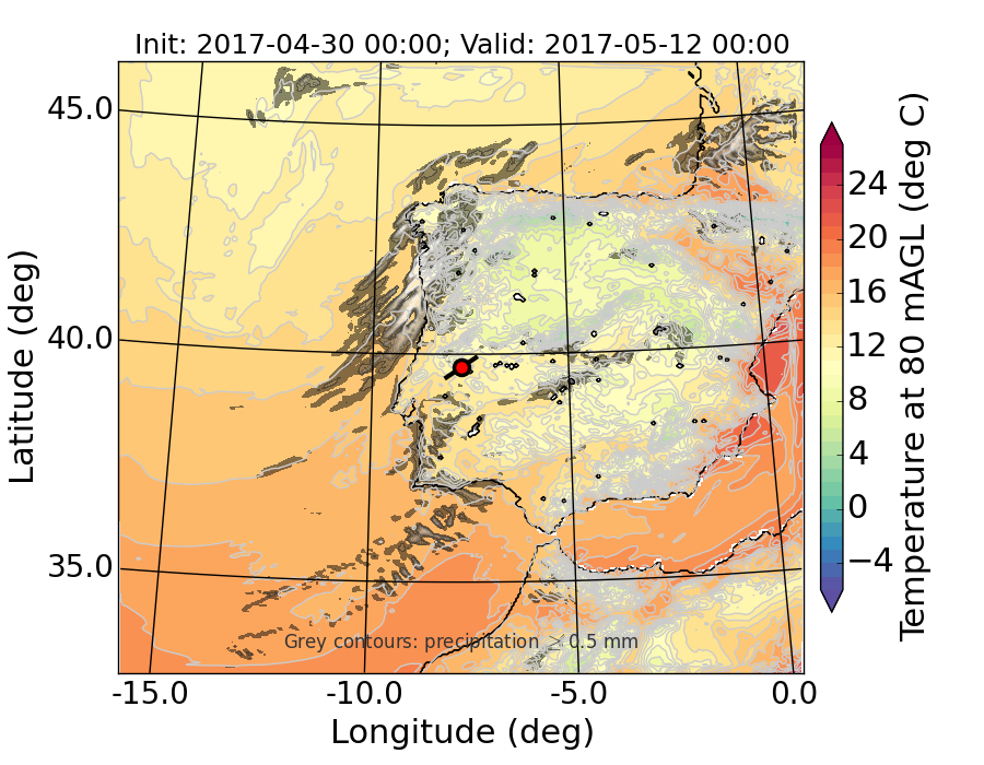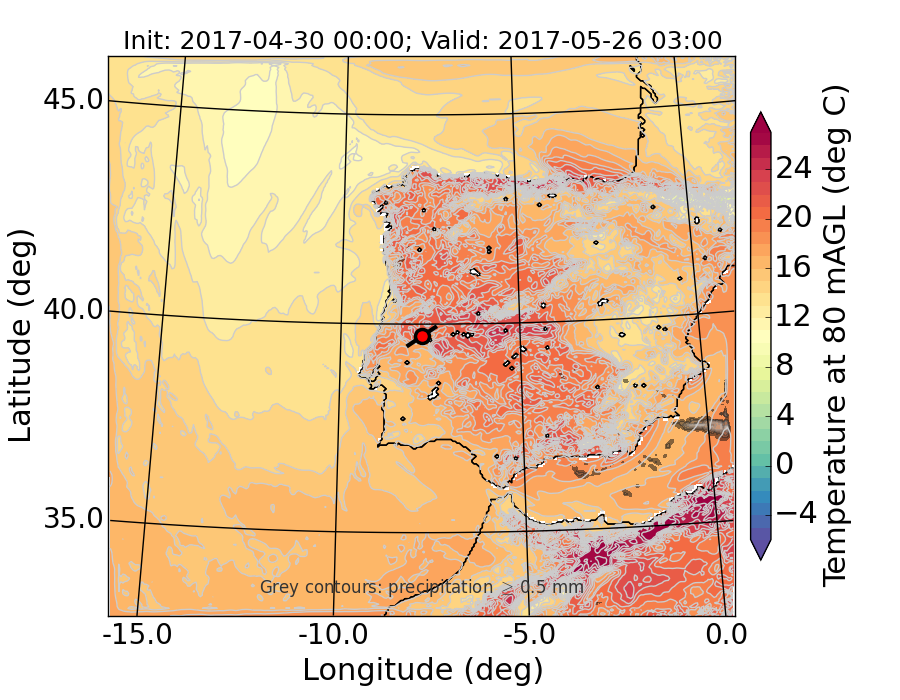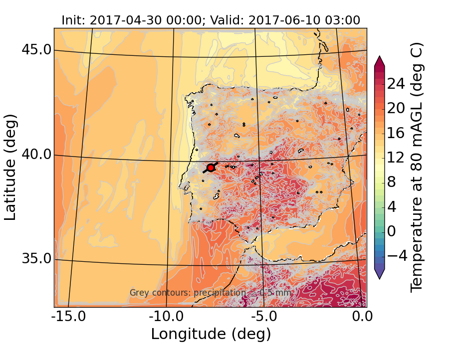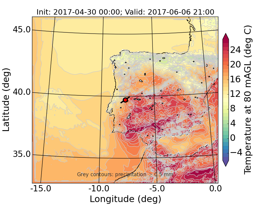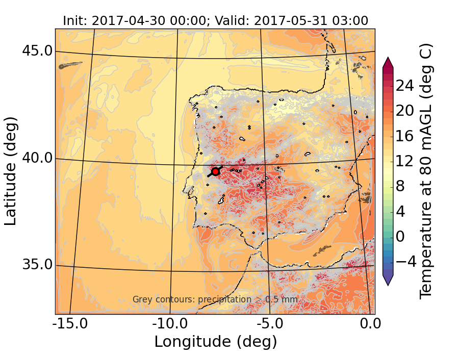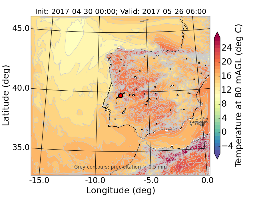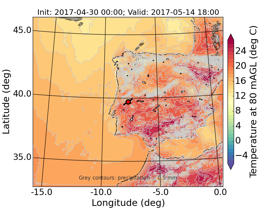 WRF d01 80 m AGL temperature