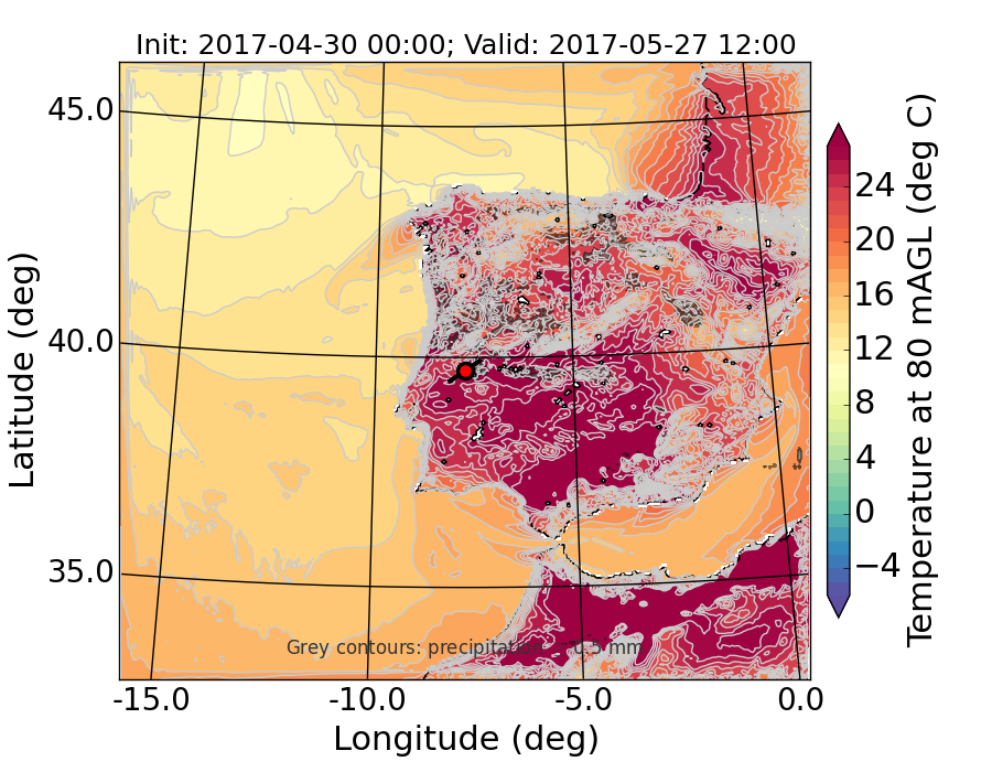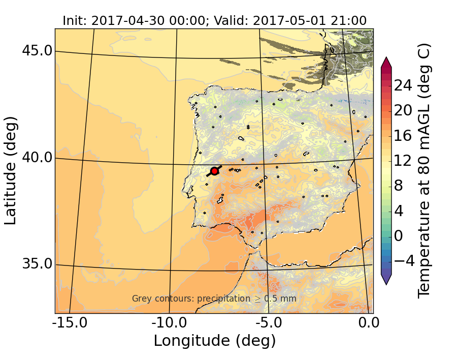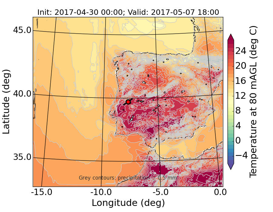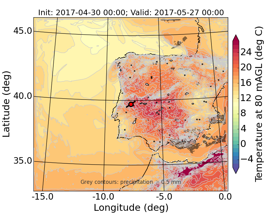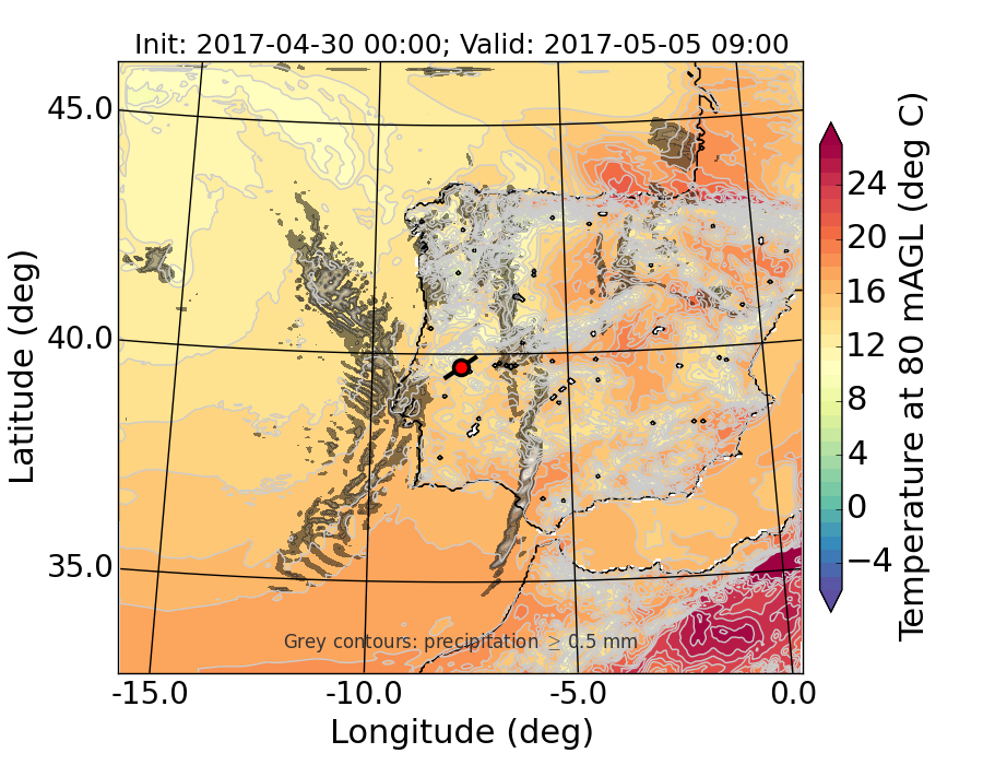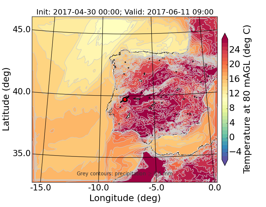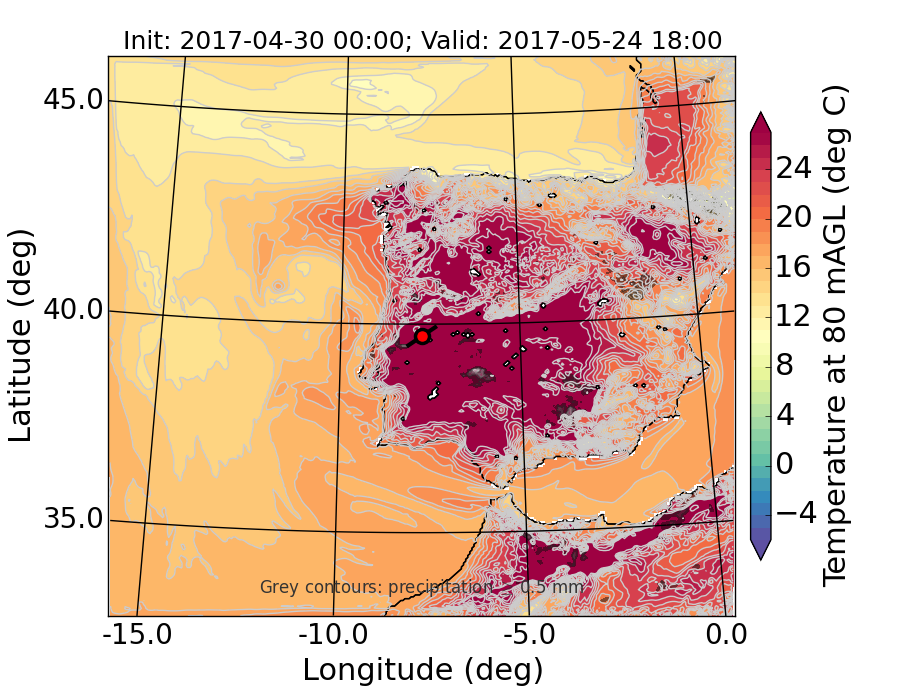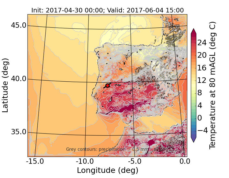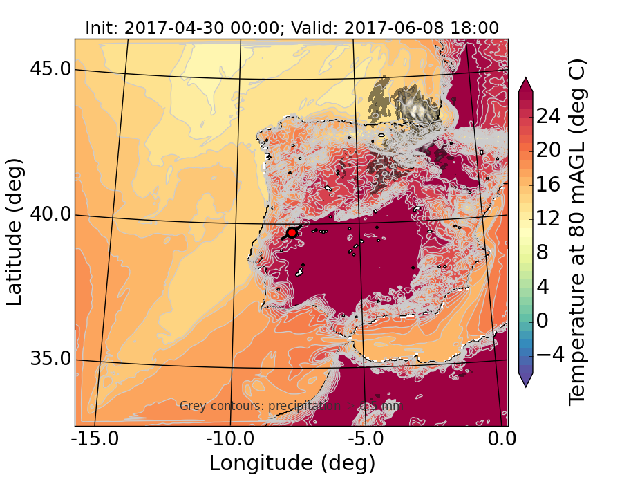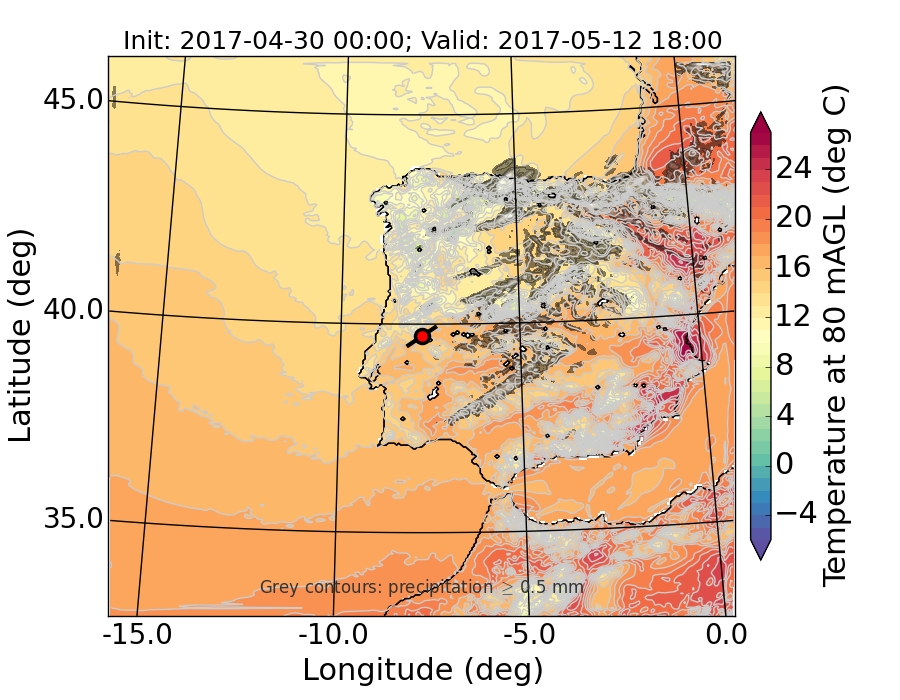 WRF d01 80 m AGL temperature