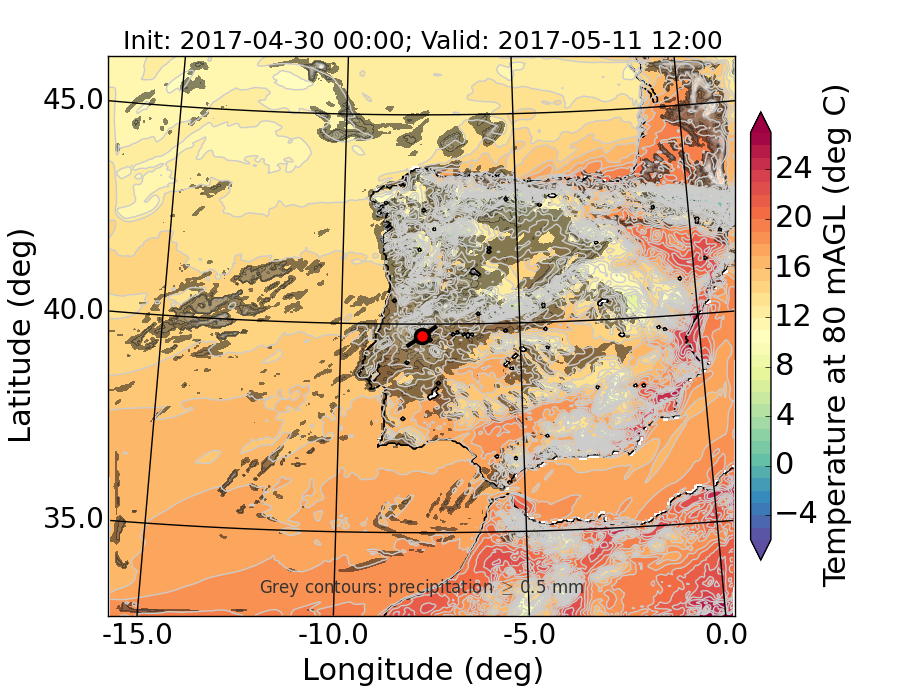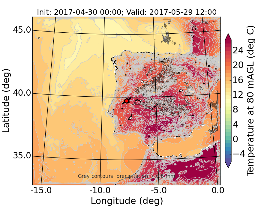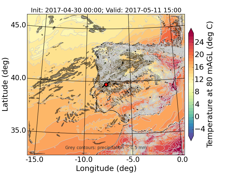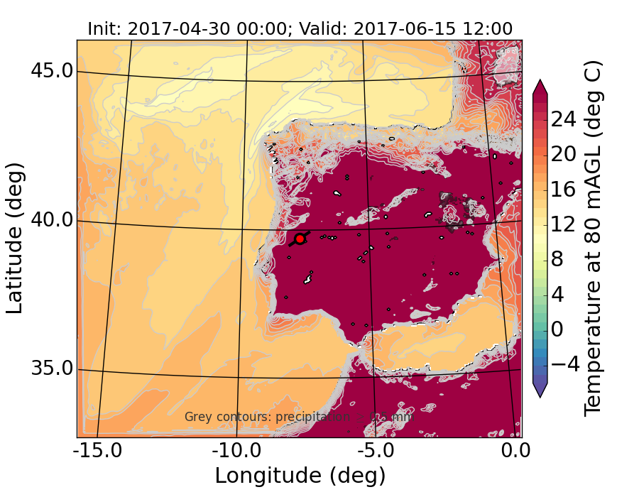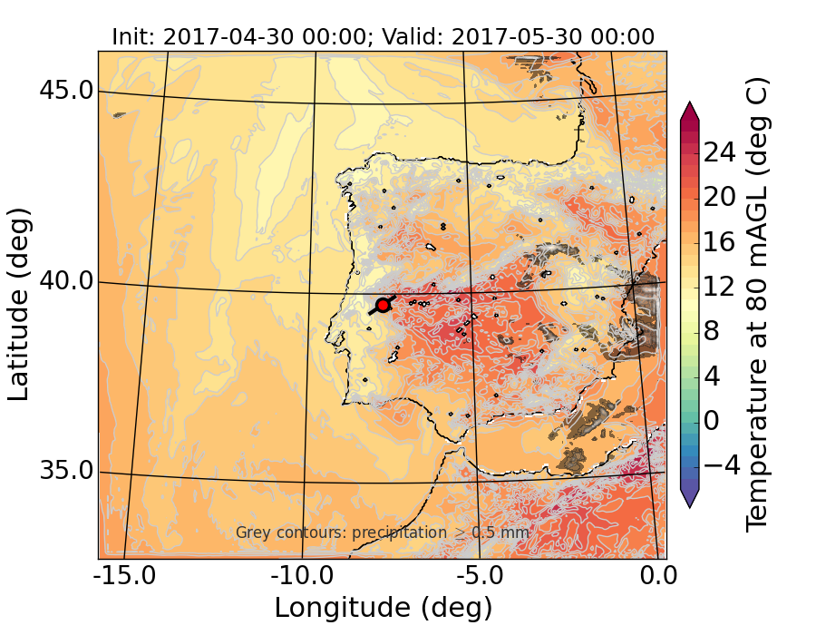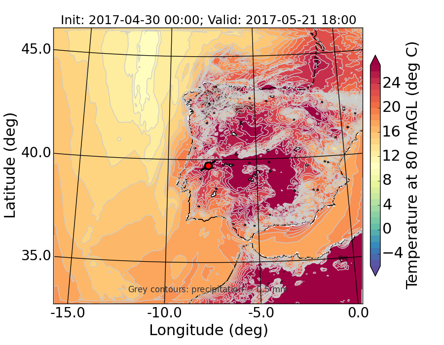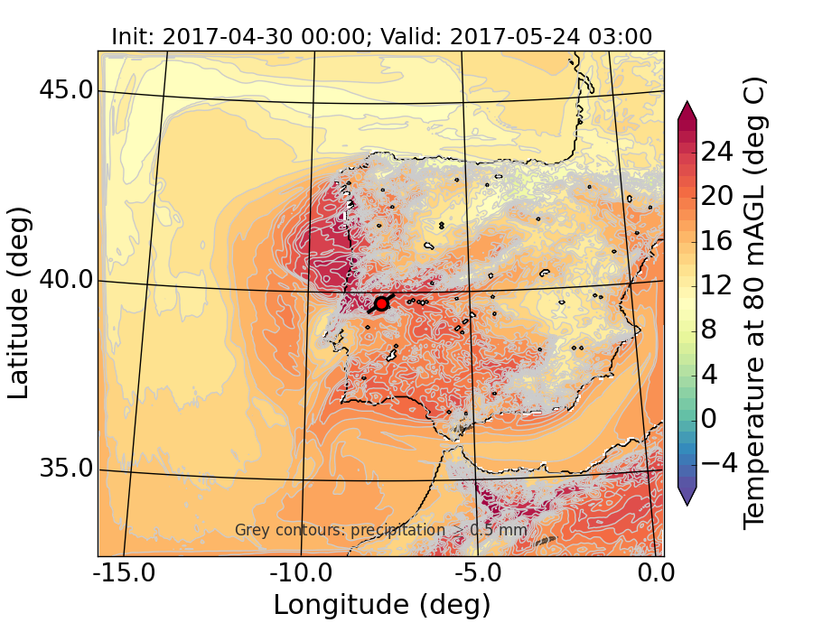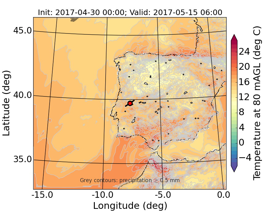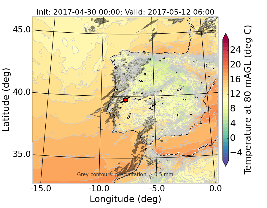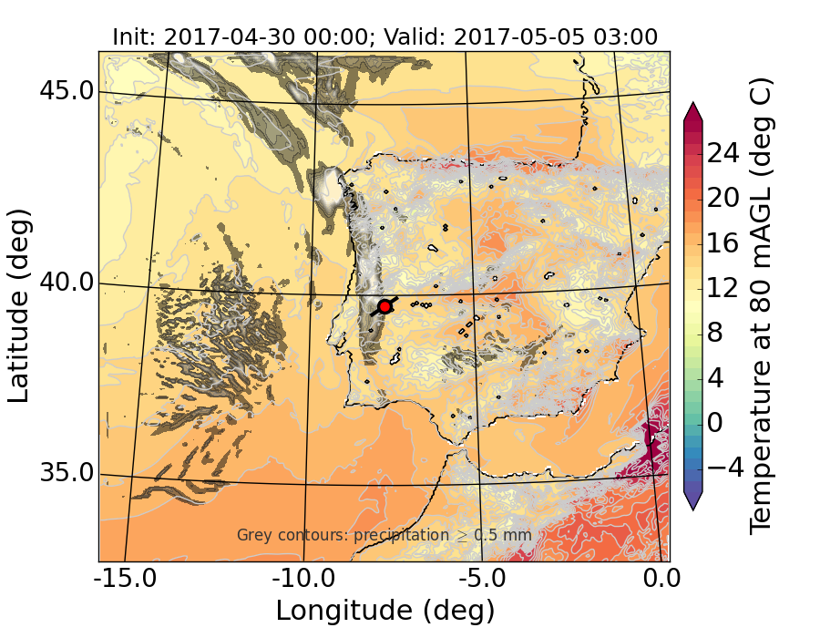 WRF d01 80 m AGL temperature