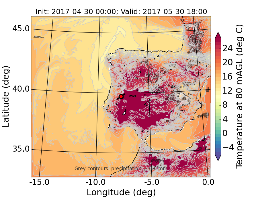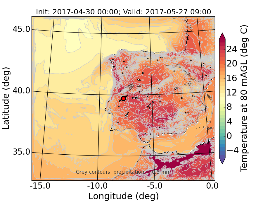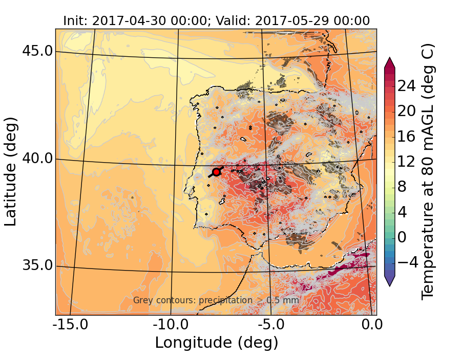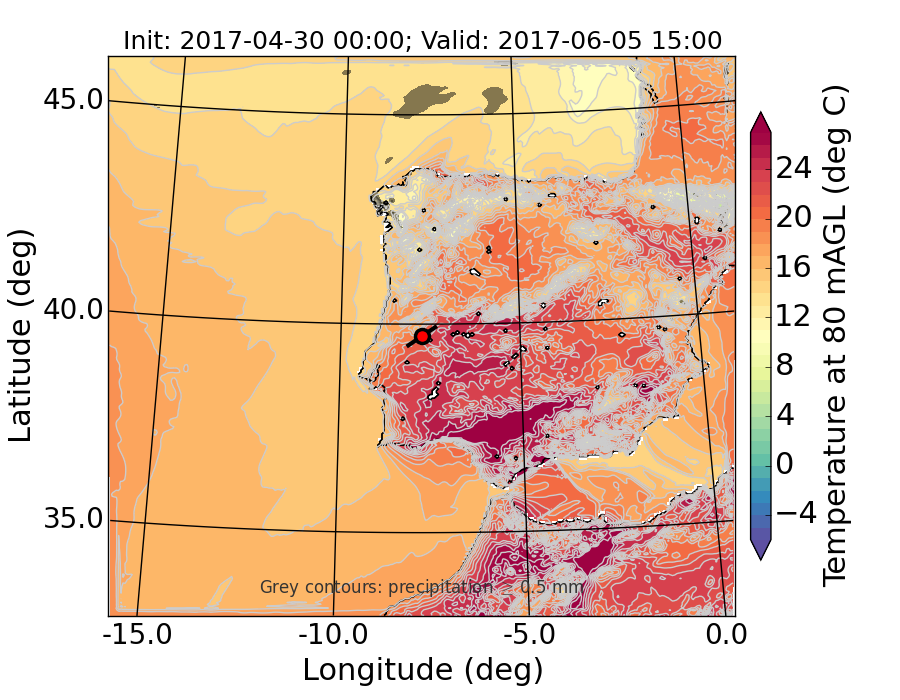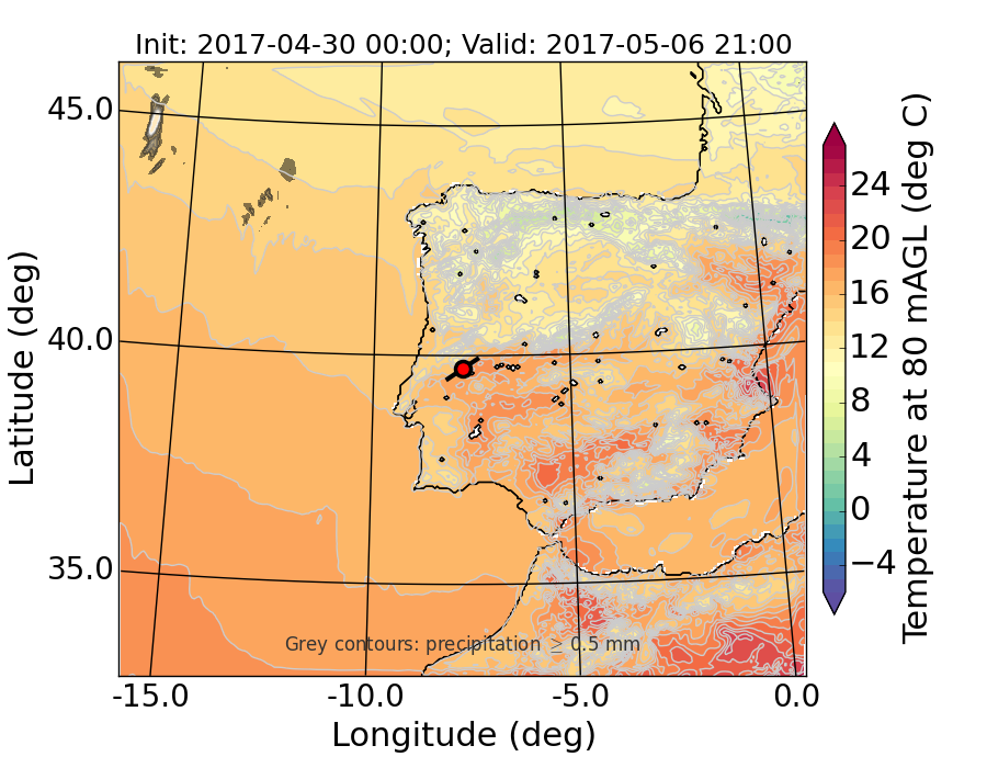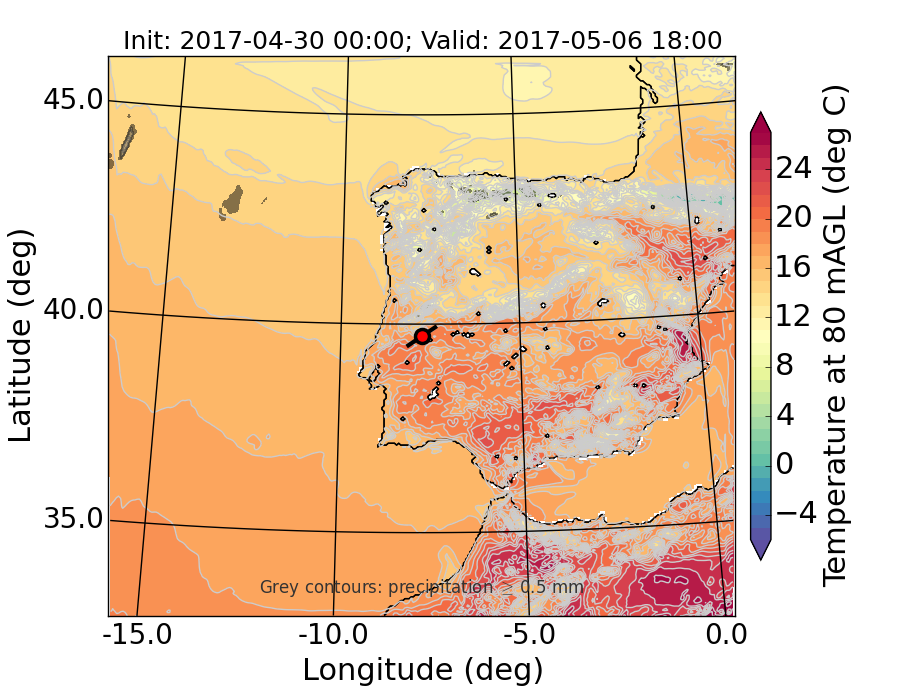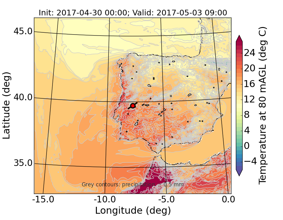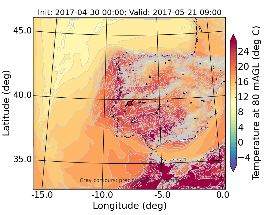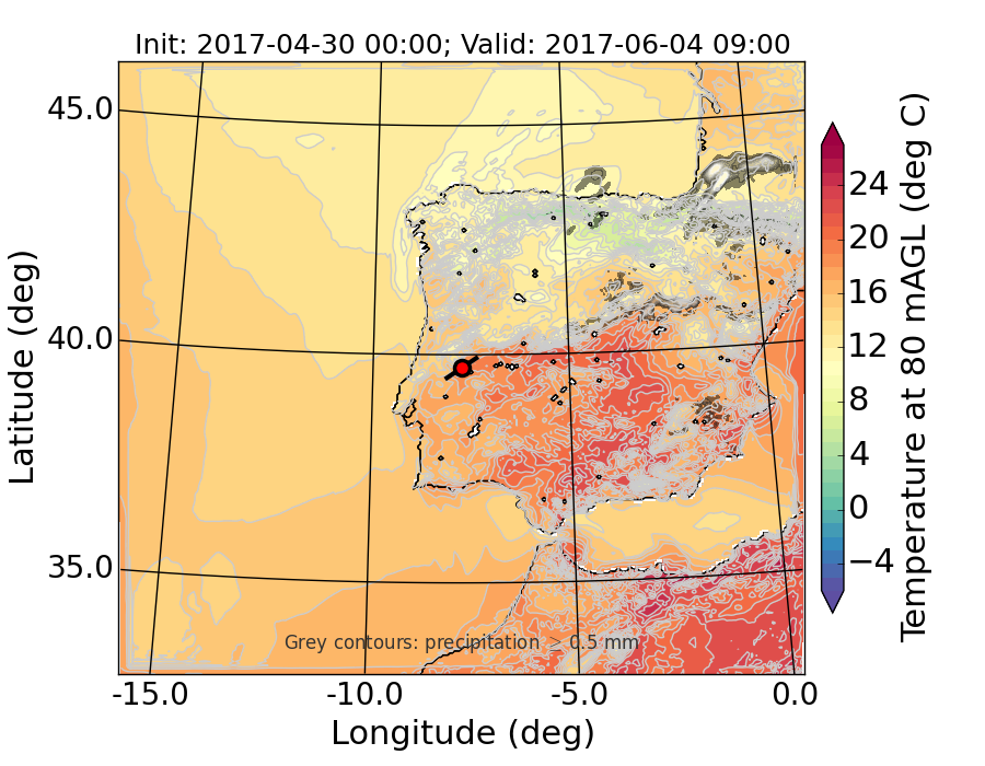 WRF d01 80 m AGL temperature