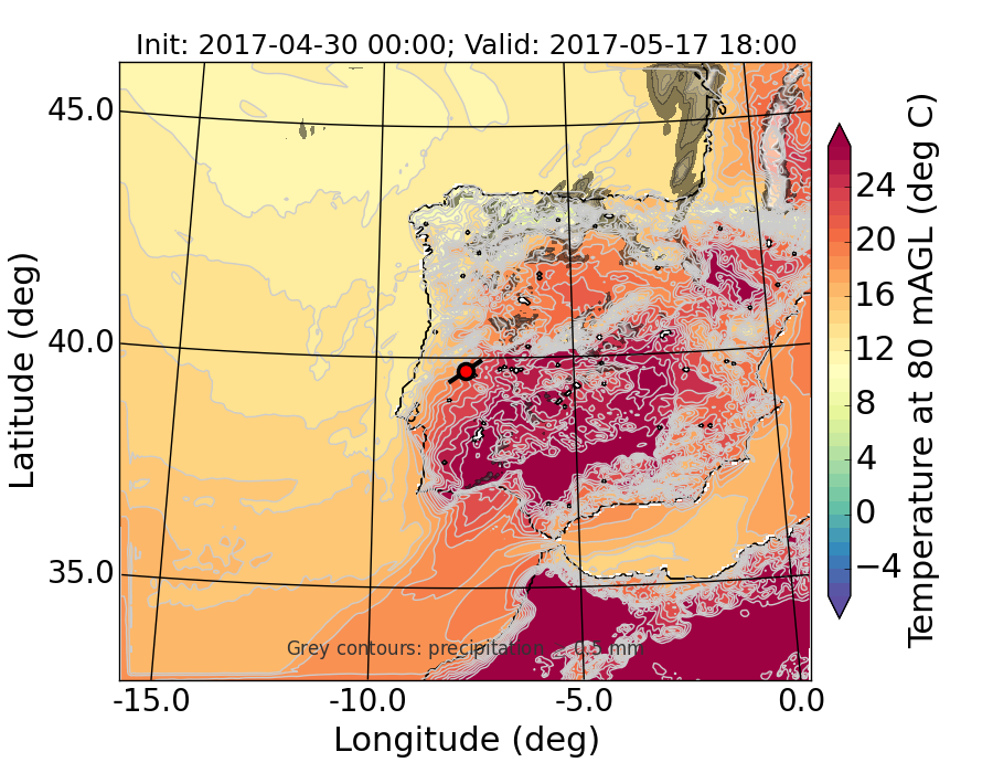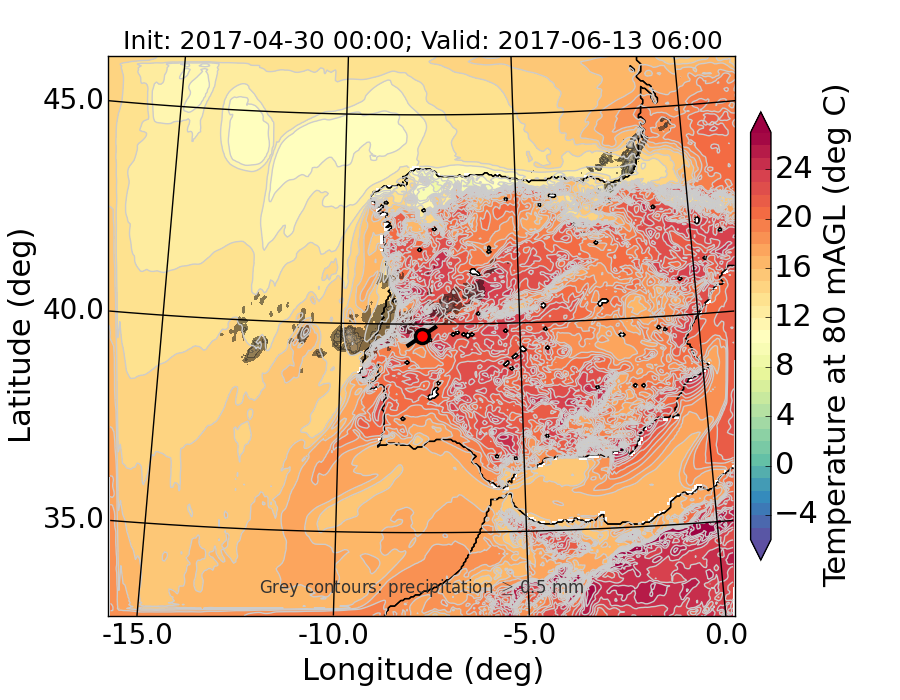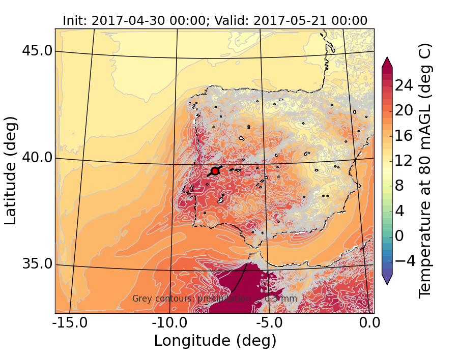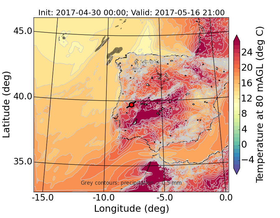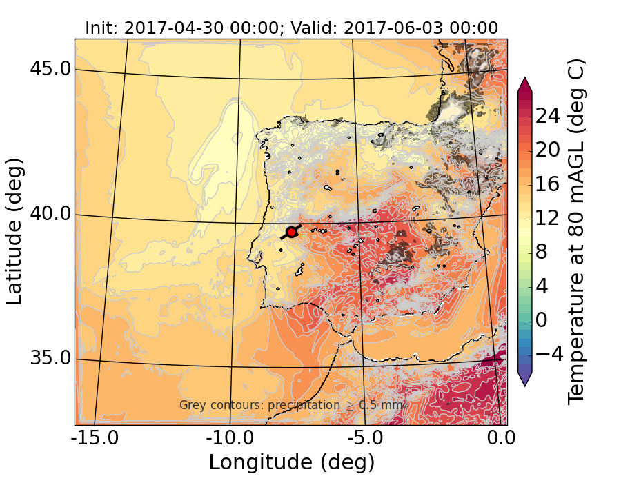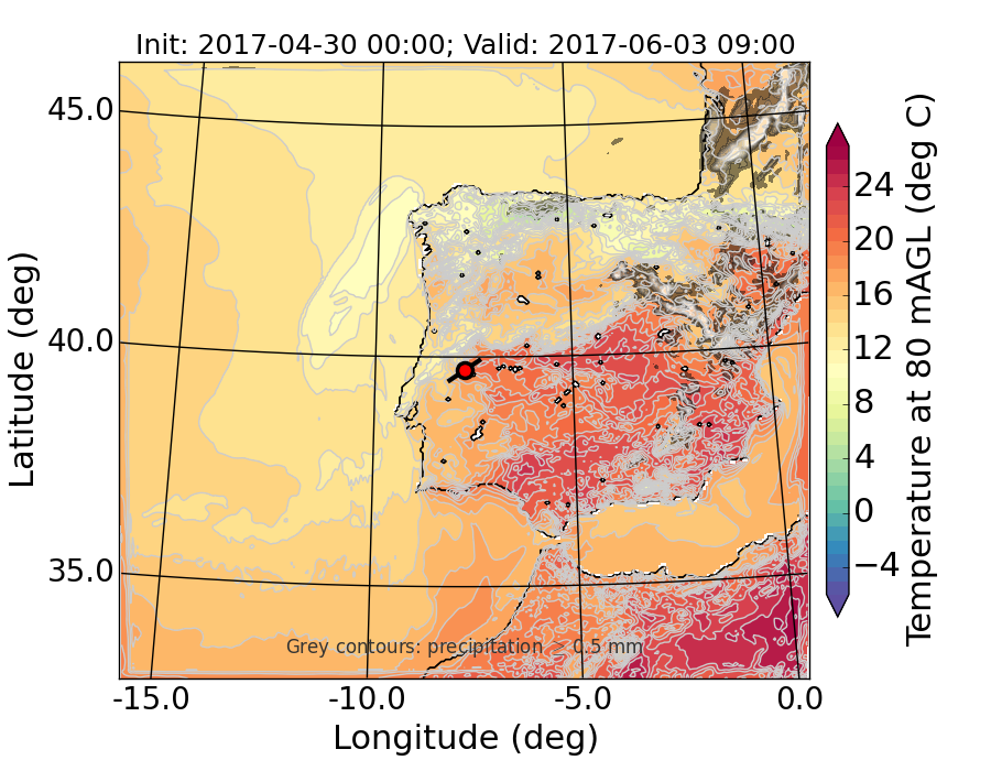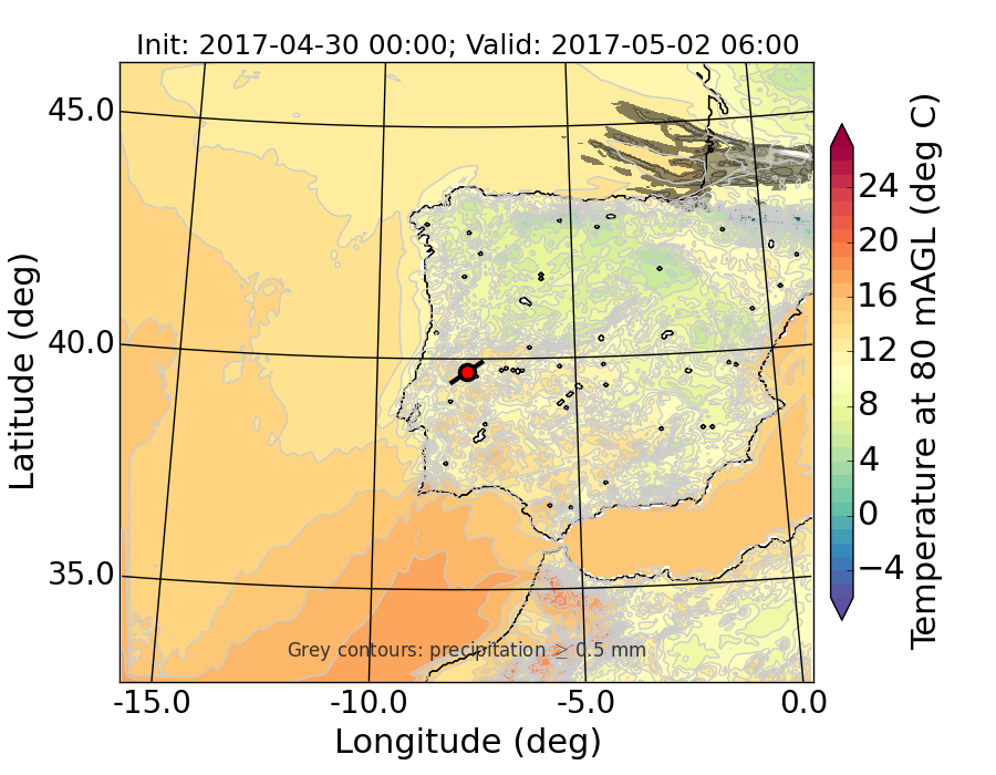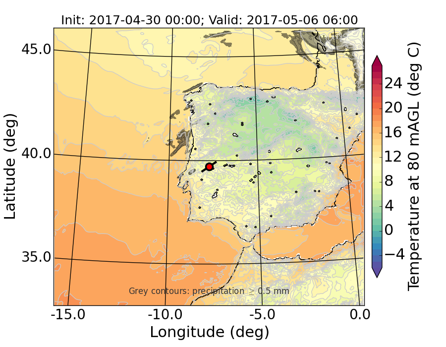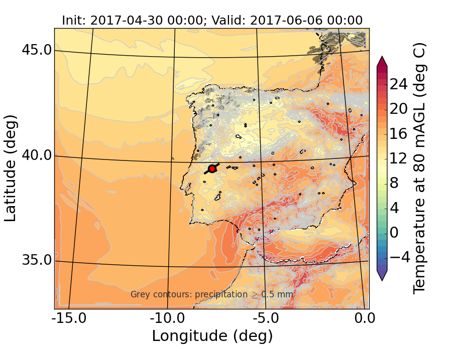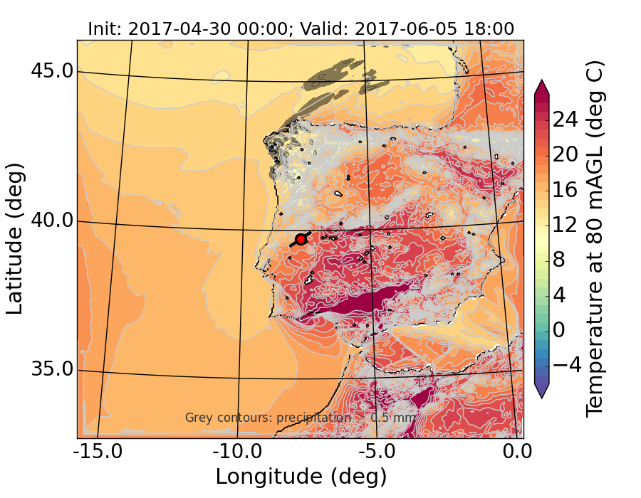 WRF d01 80 m AGL temperature