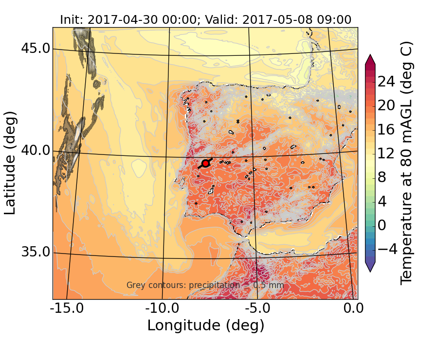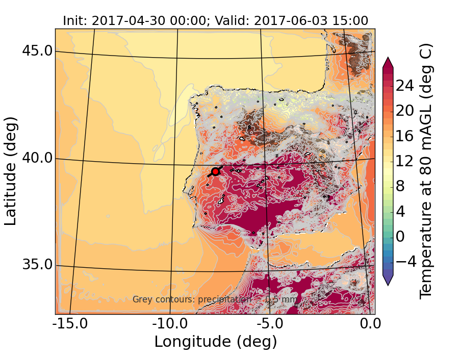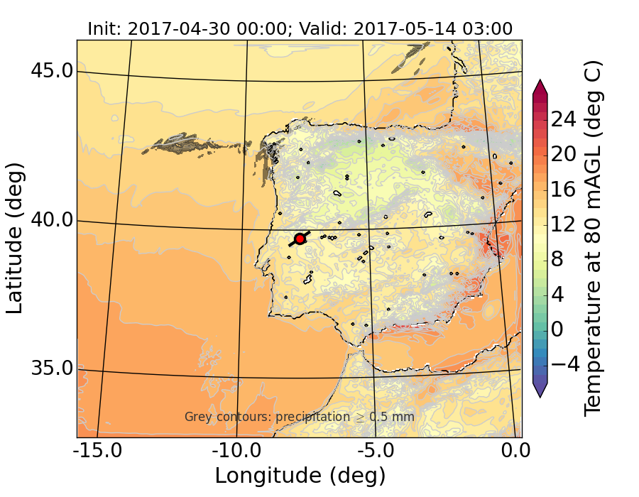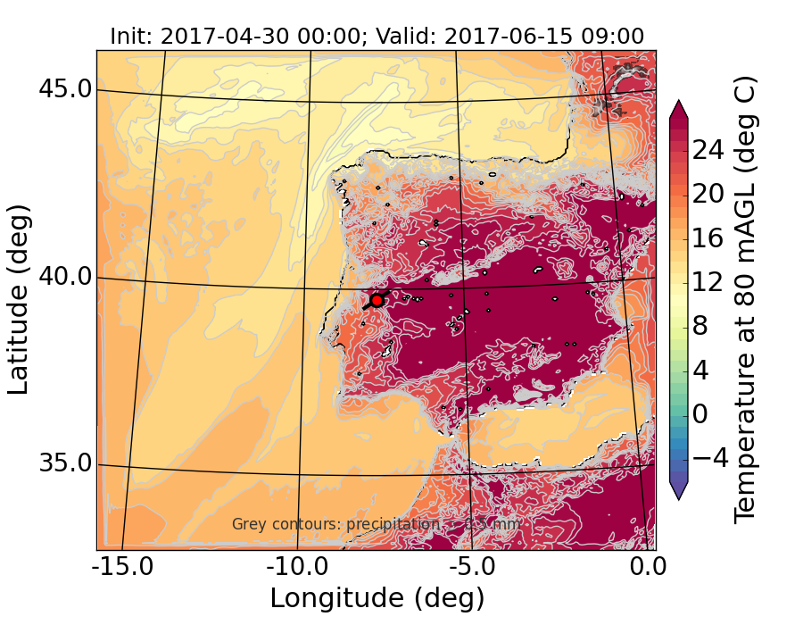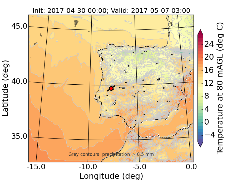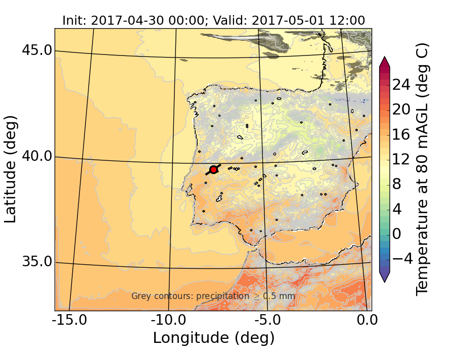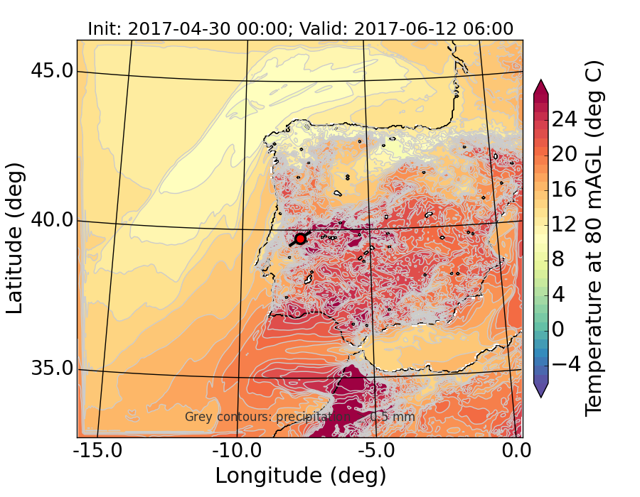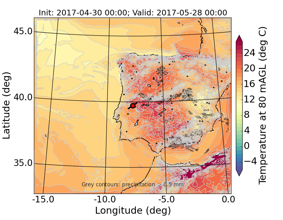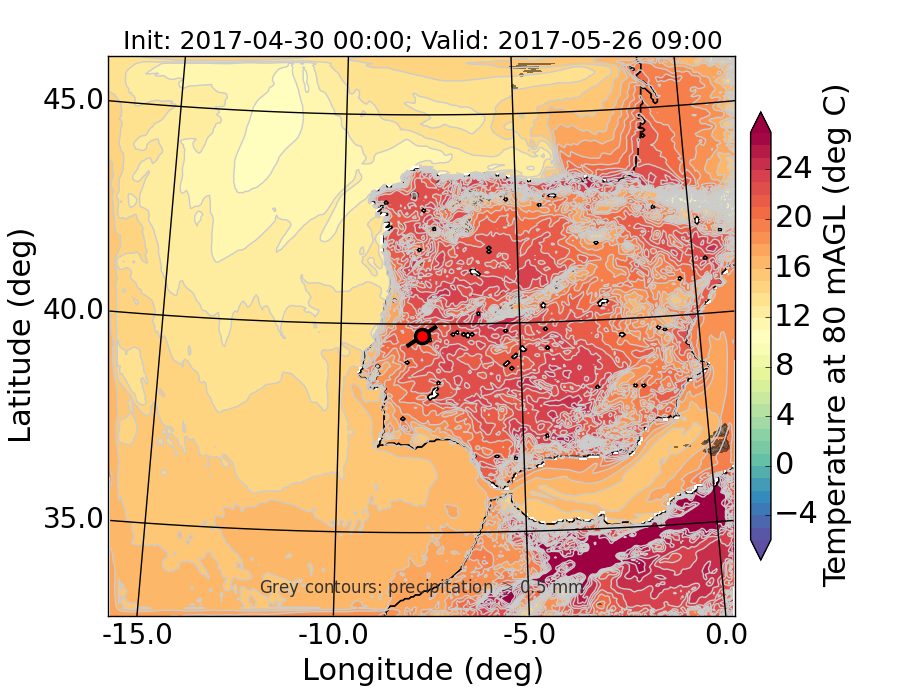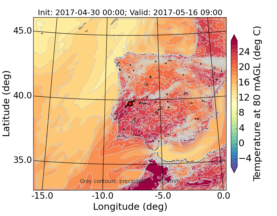 WRF d01 80 m AGL temperature
