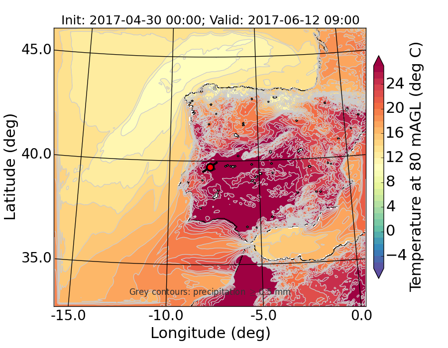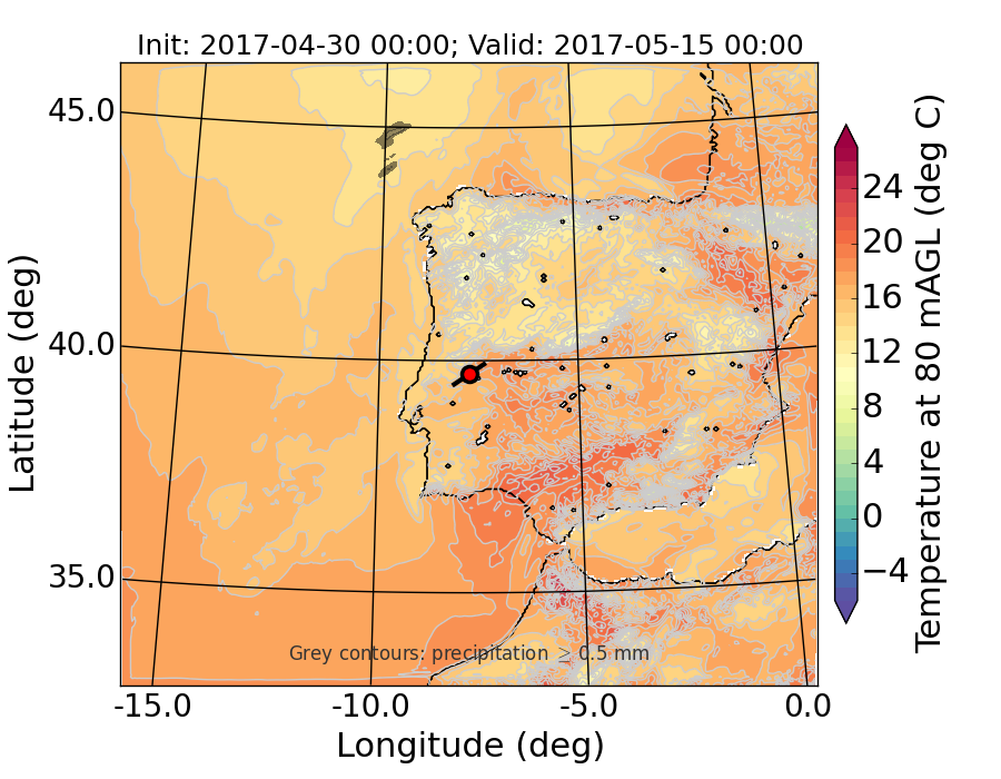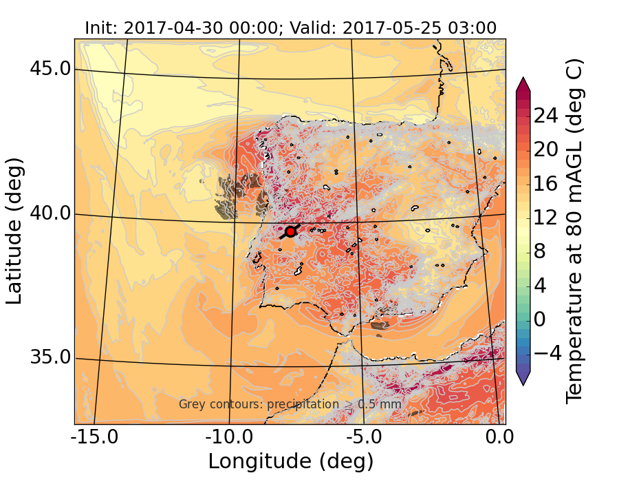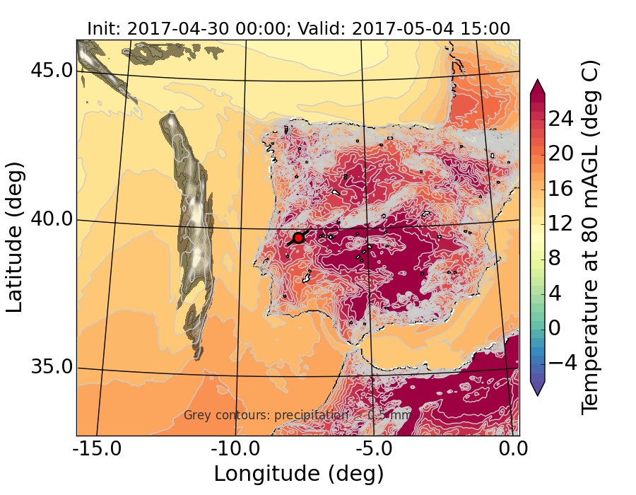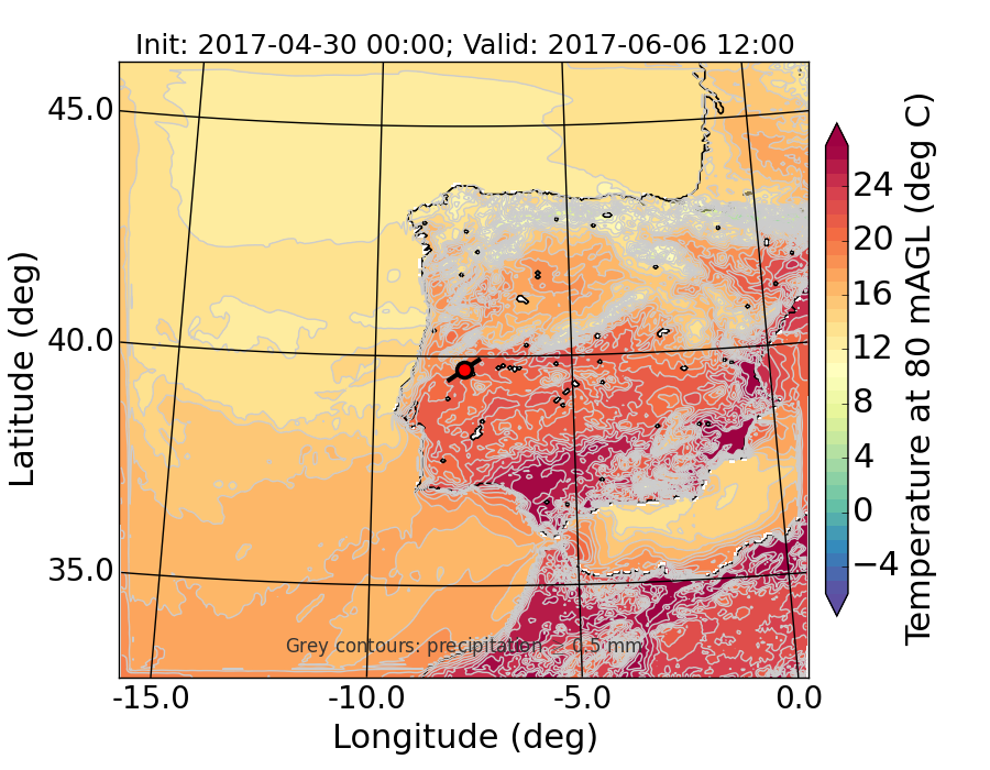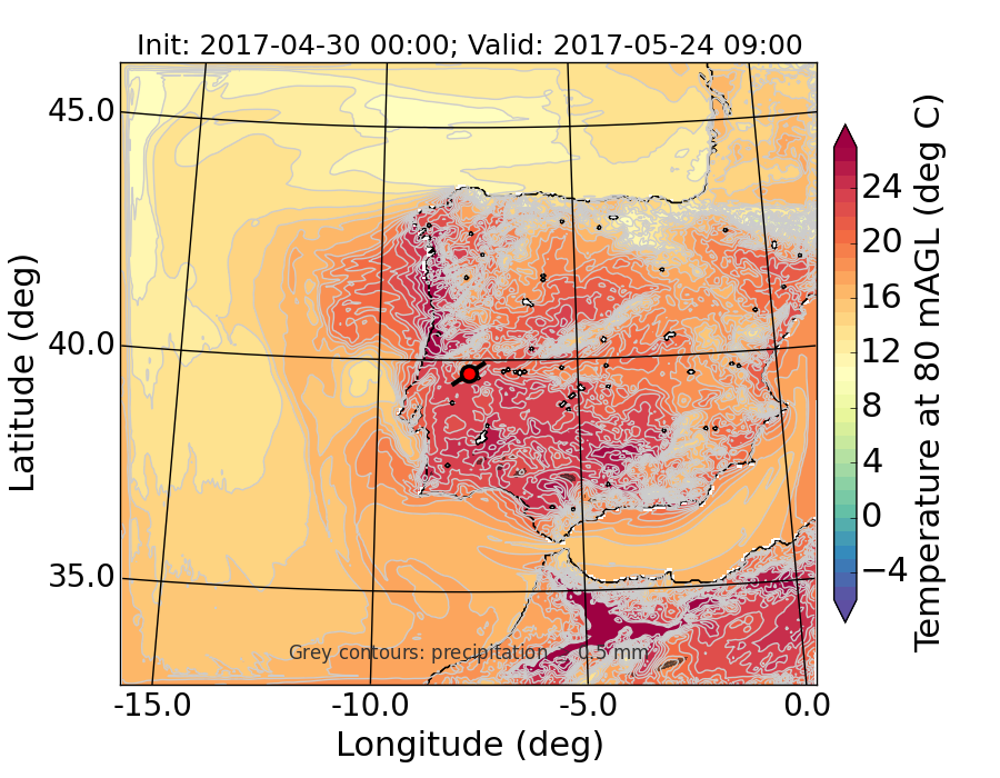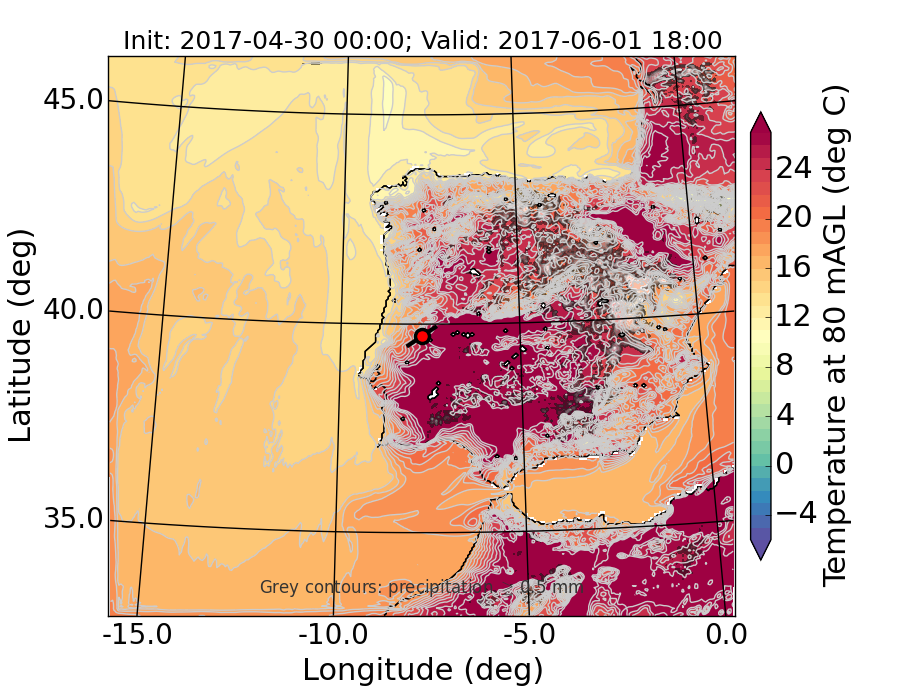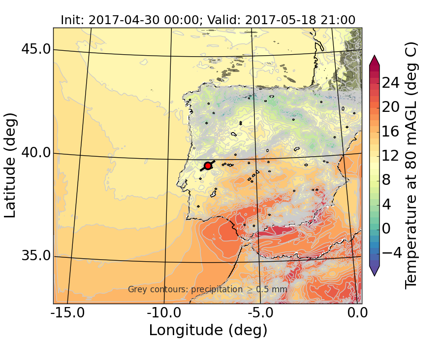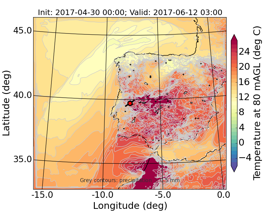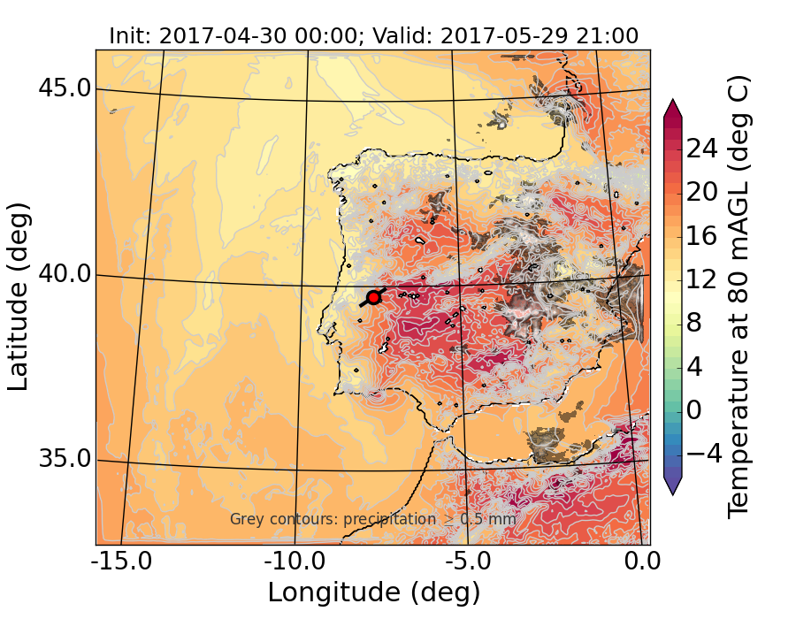 WRF d01 80 m AGL temperature