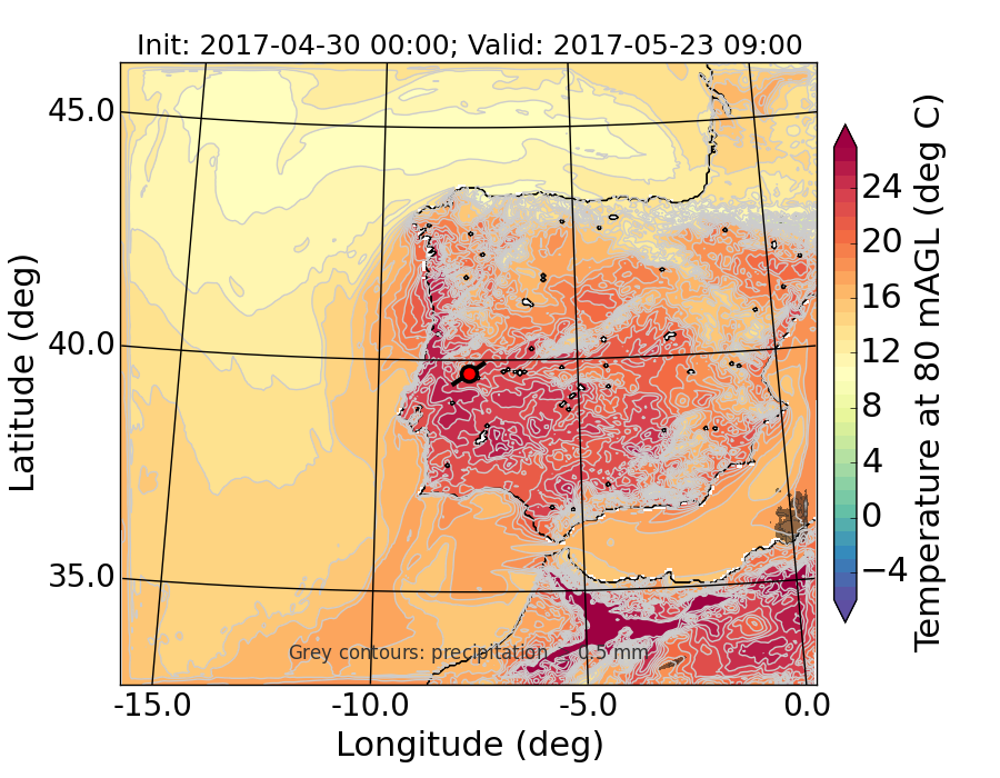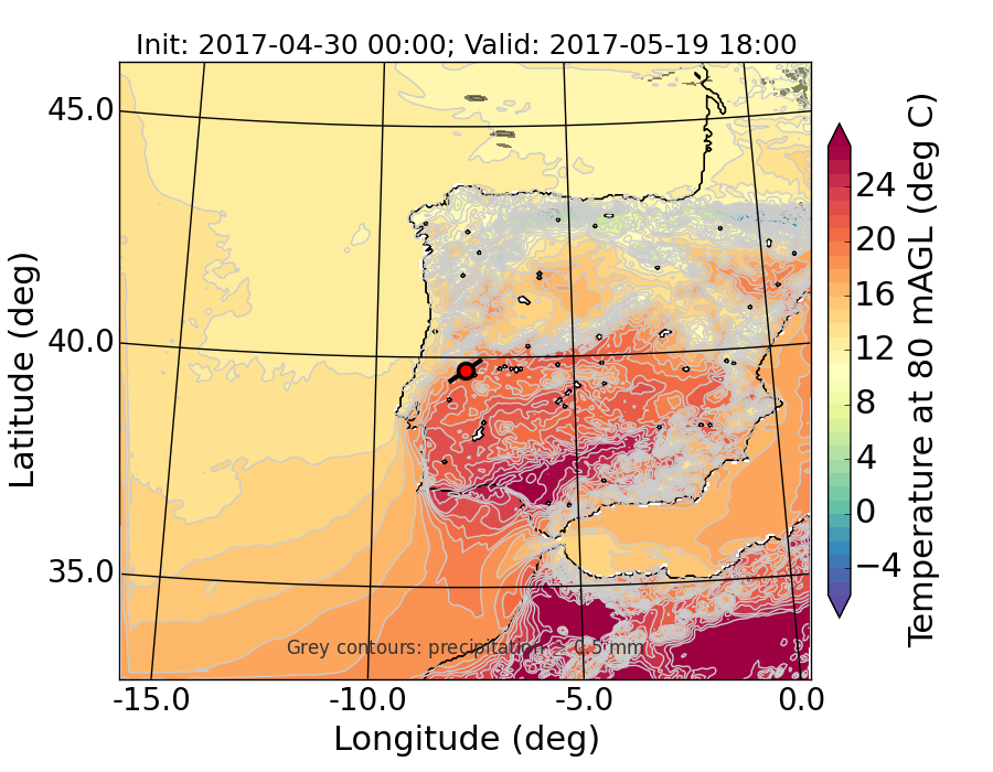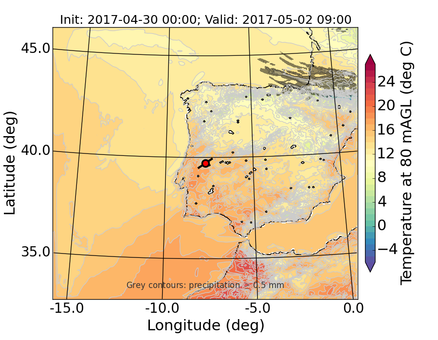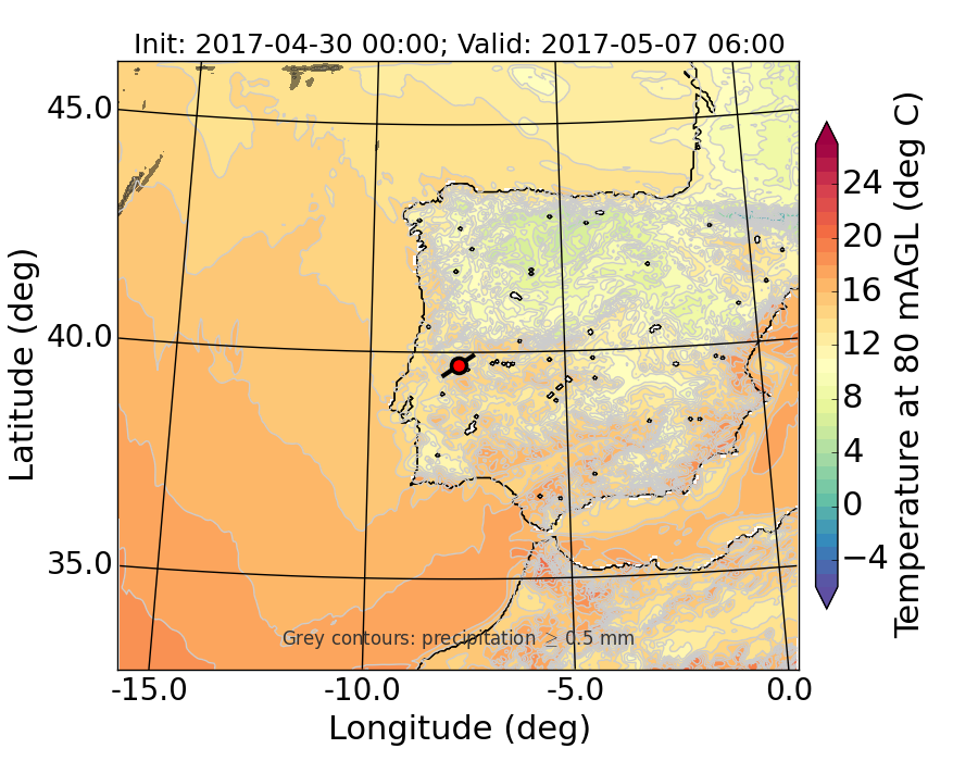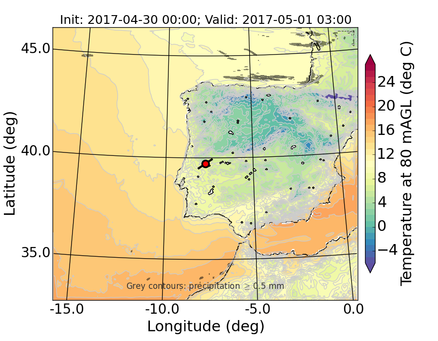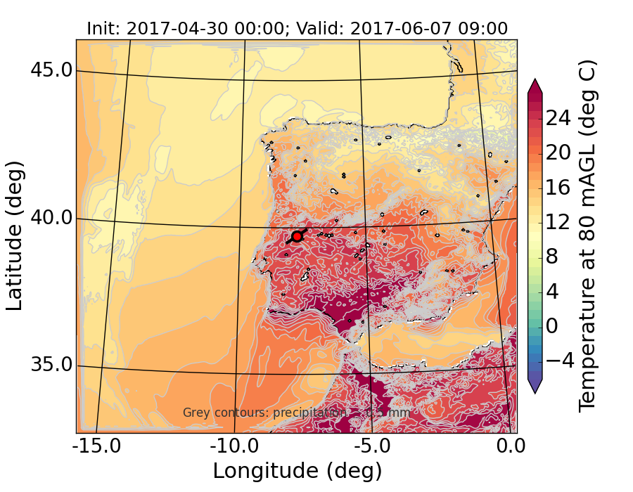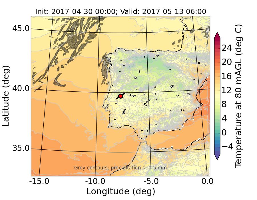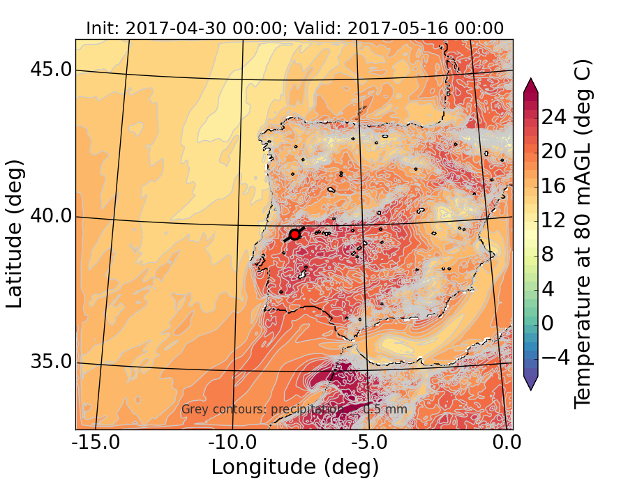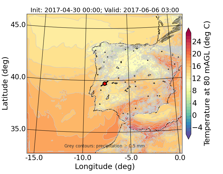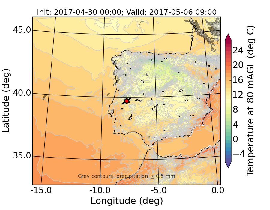 WRF d01 80 m AGL temperature