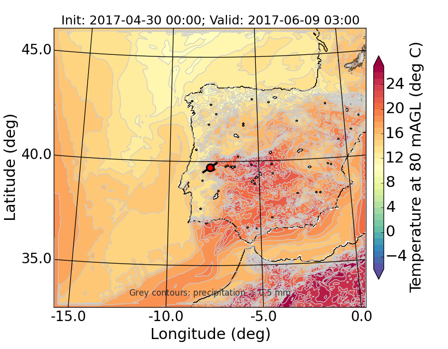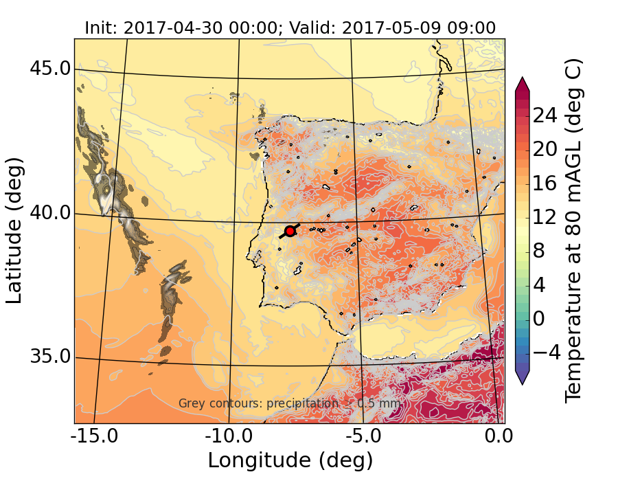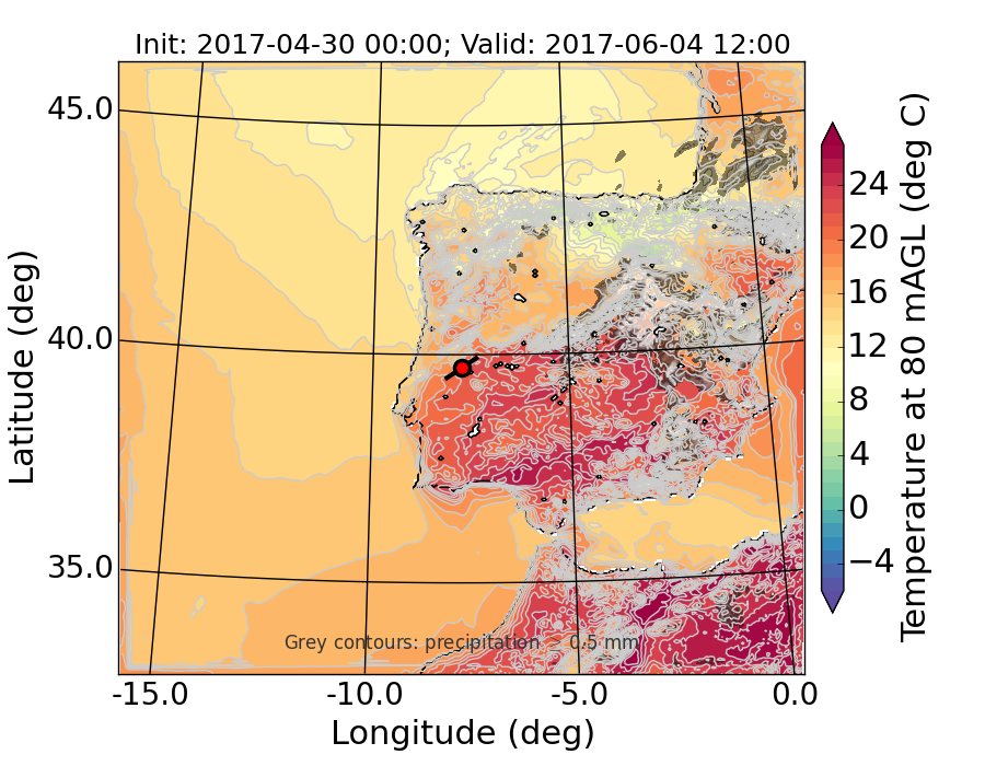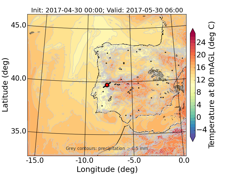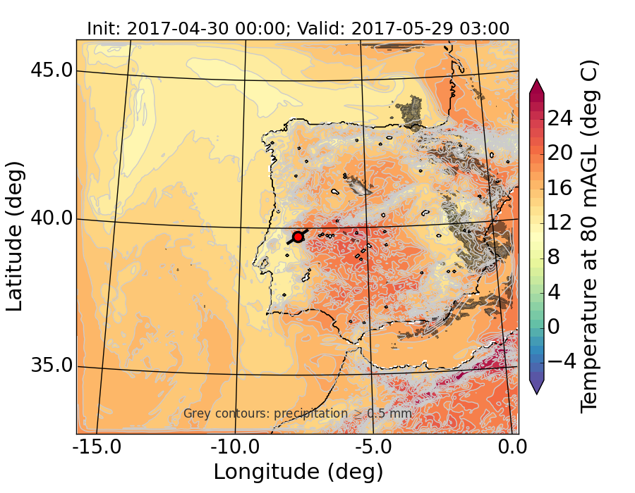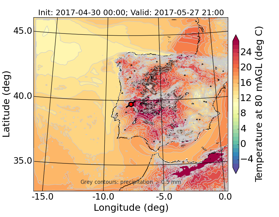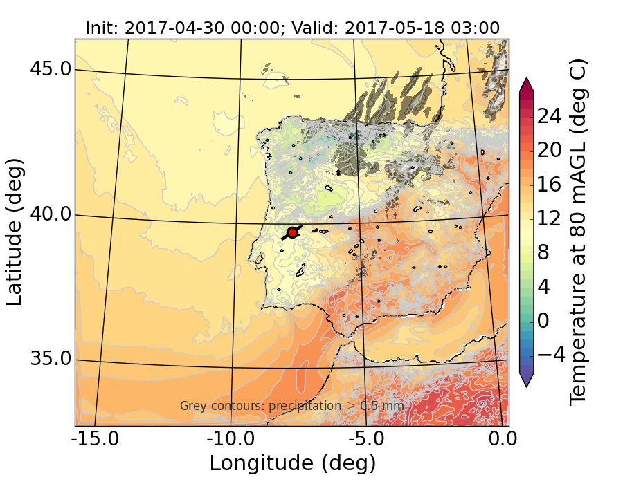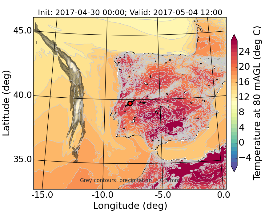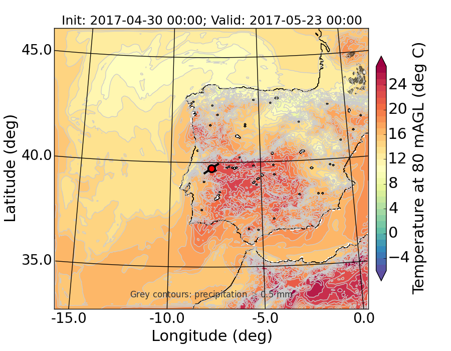 WRF d01 80 m AGL temperature