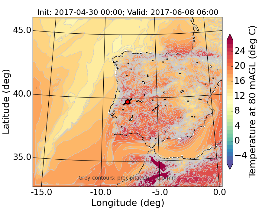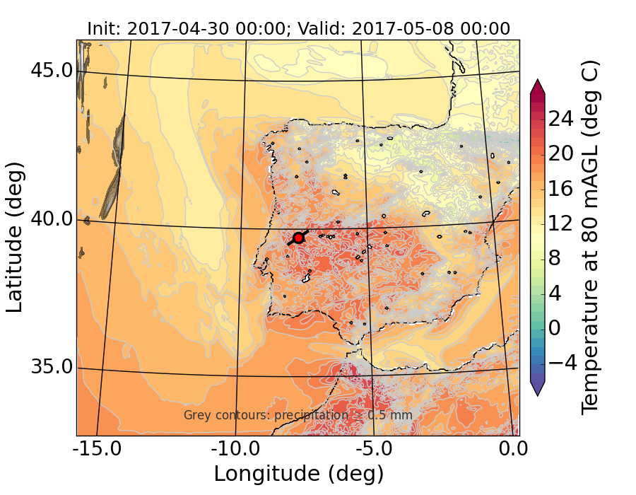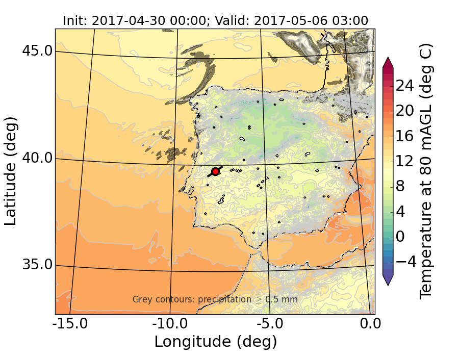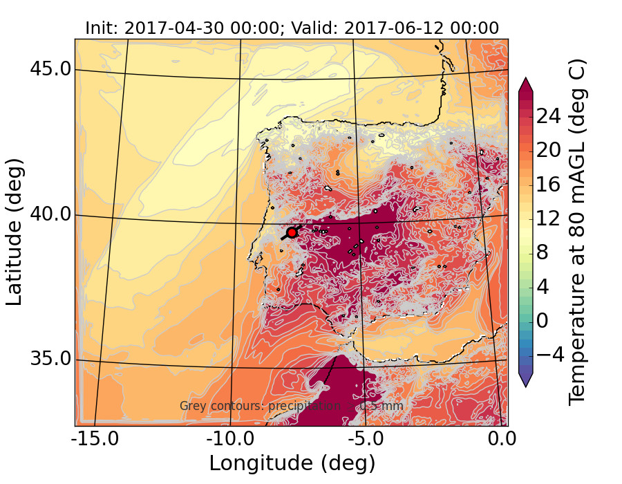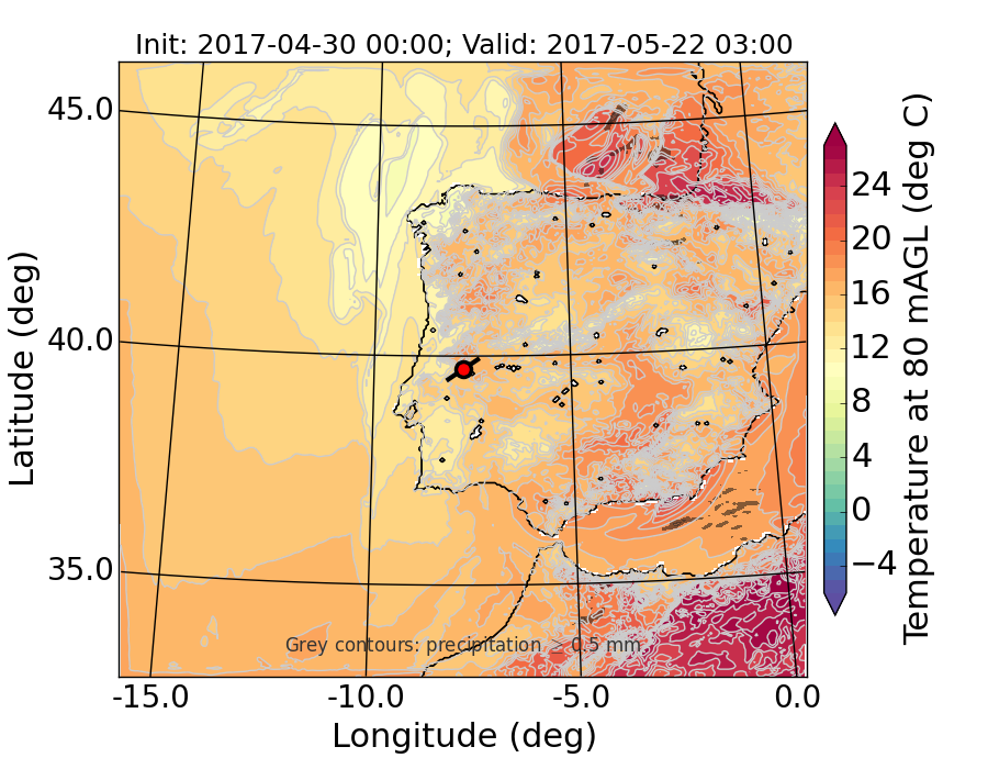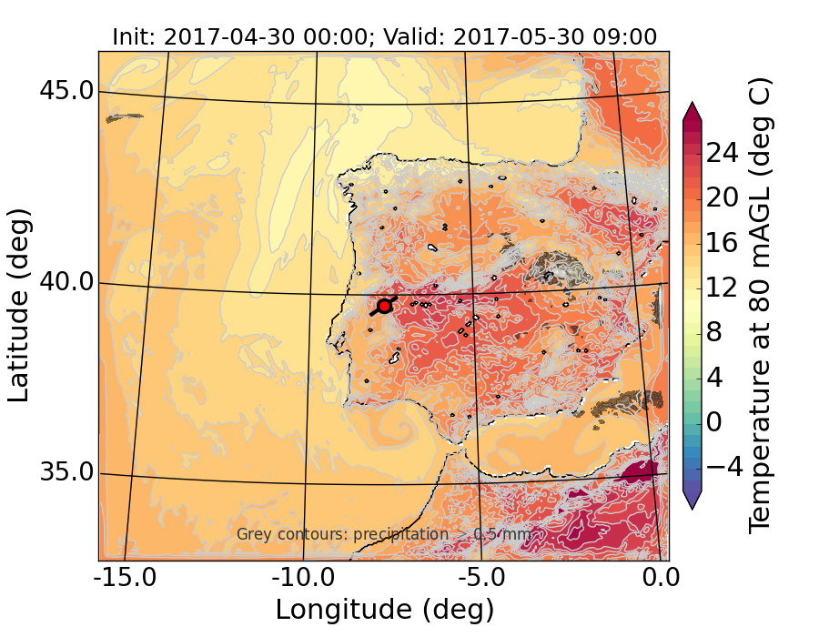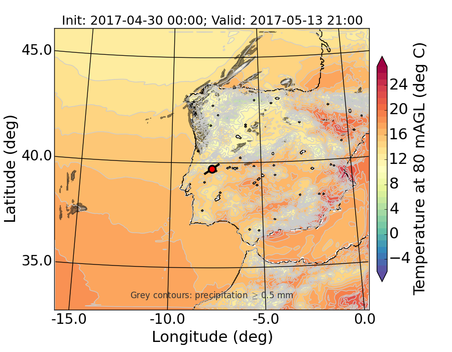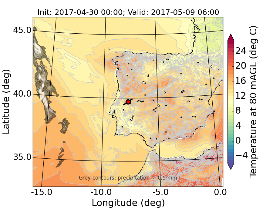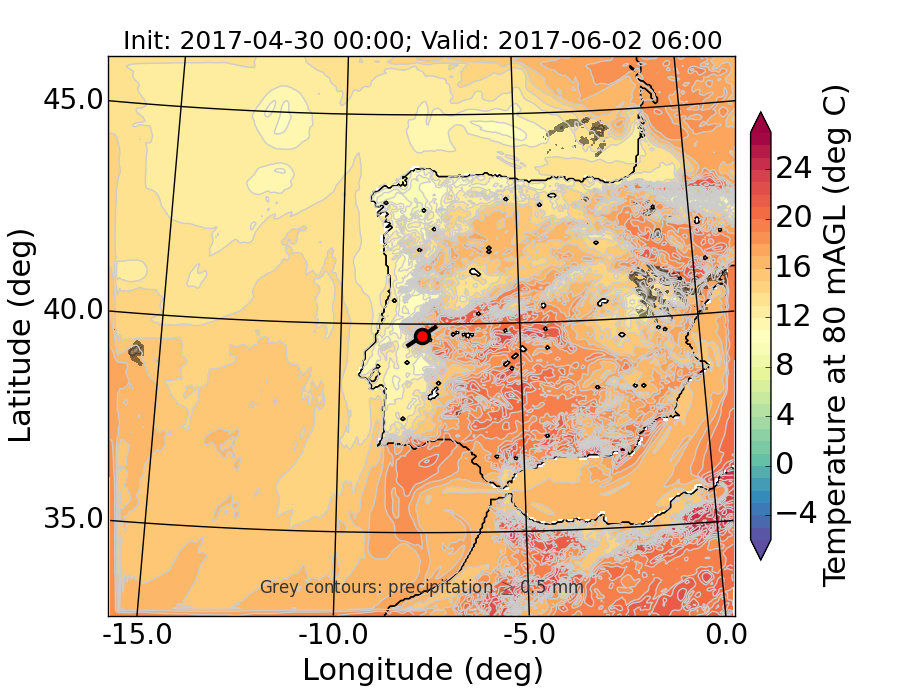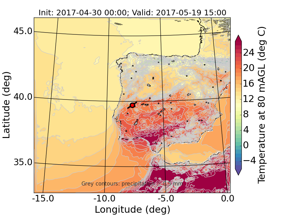 WRF d01 80 m AGL temperature
