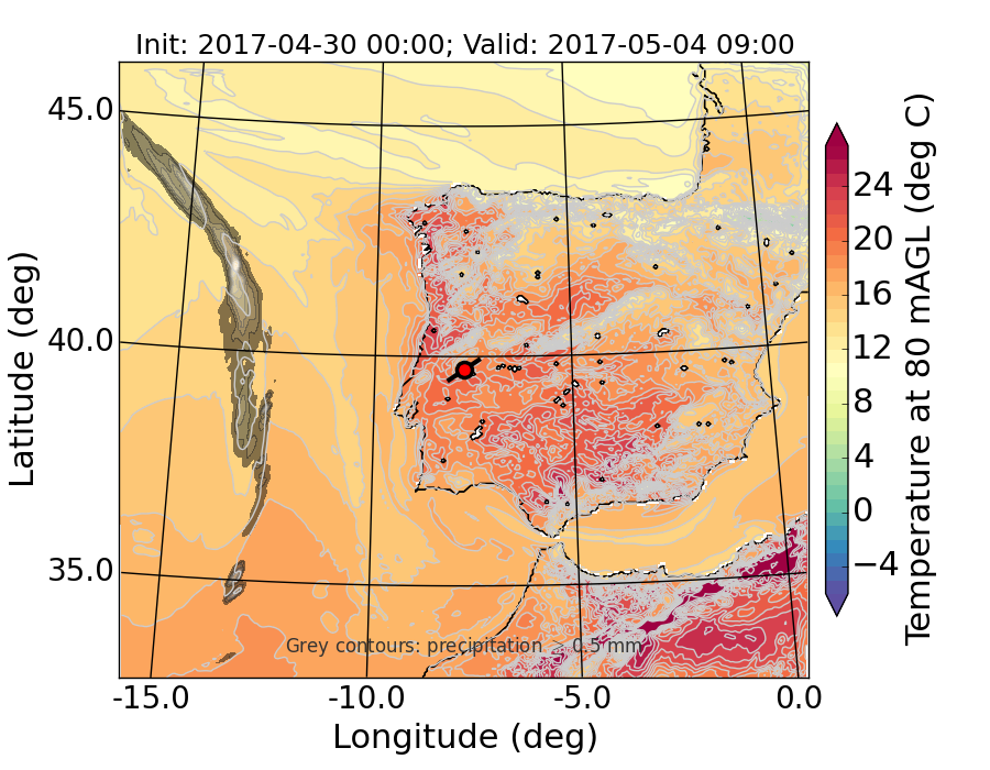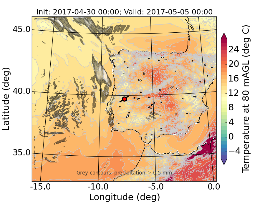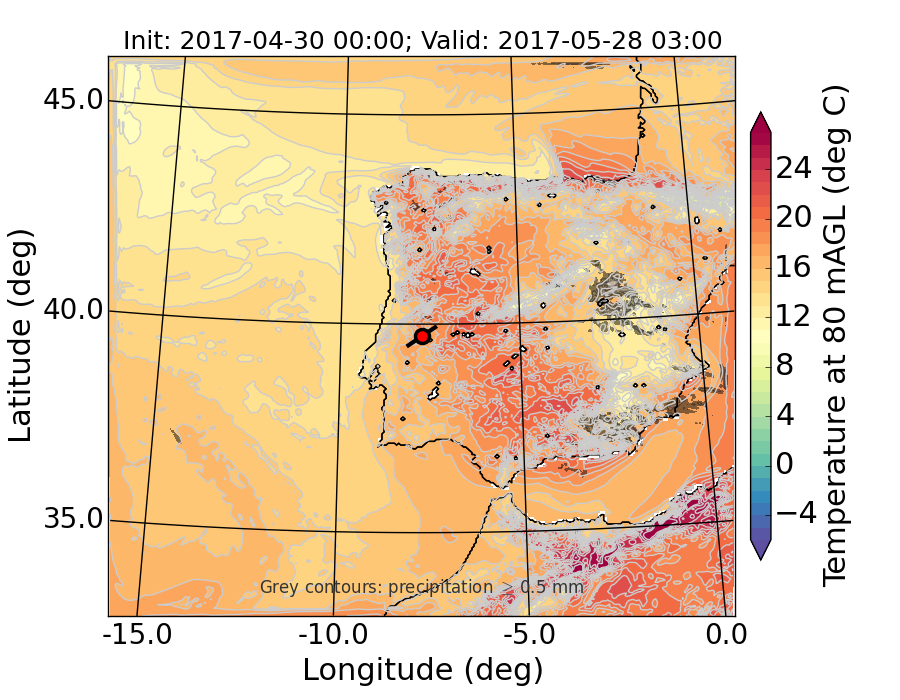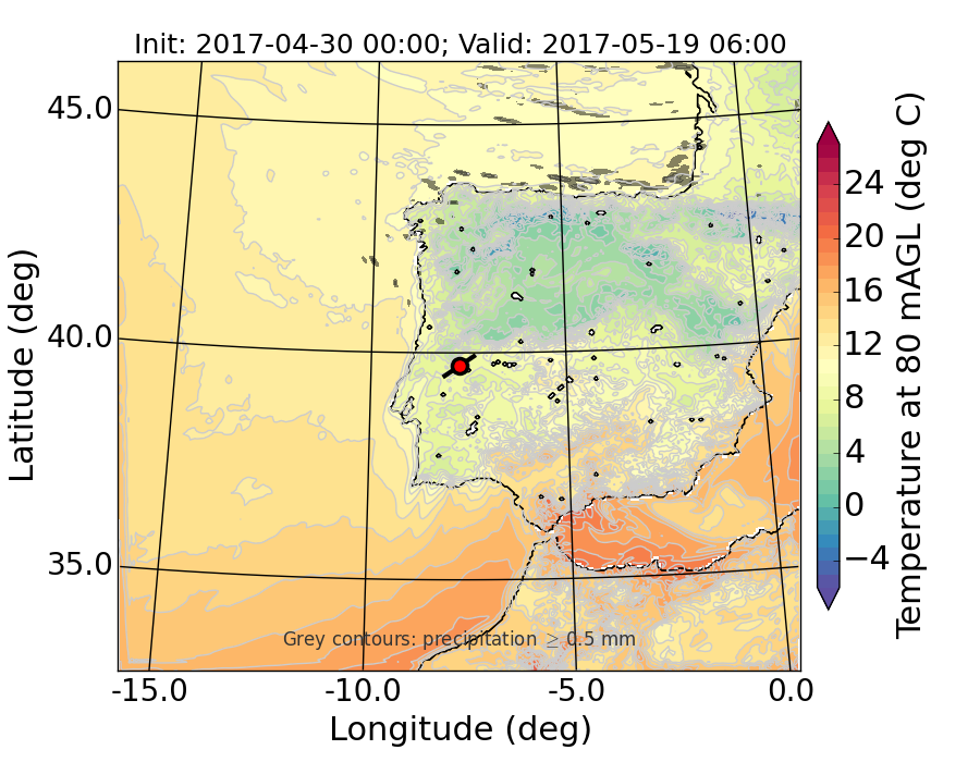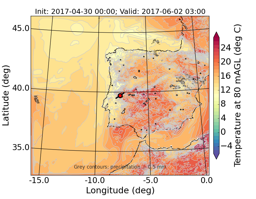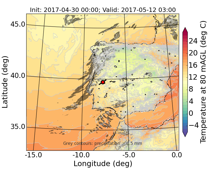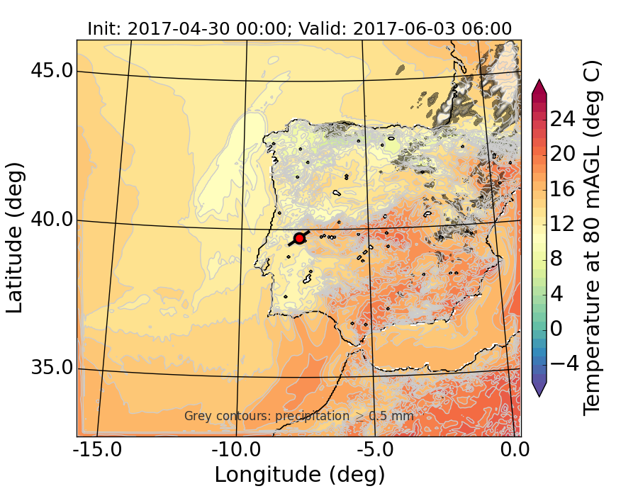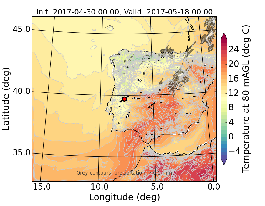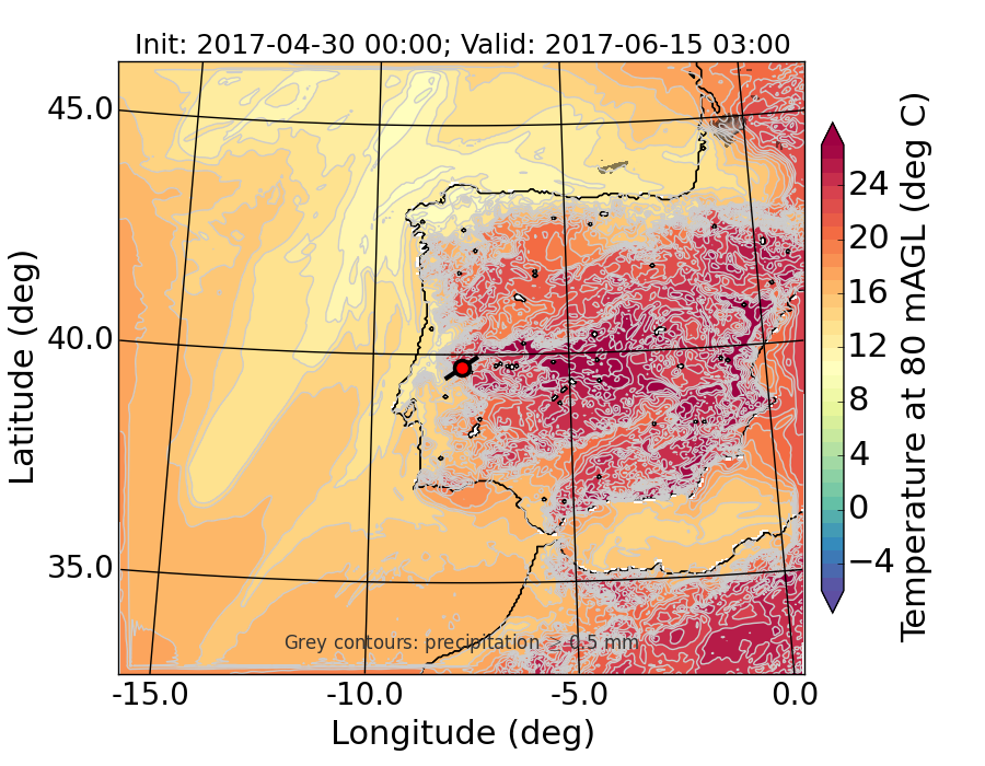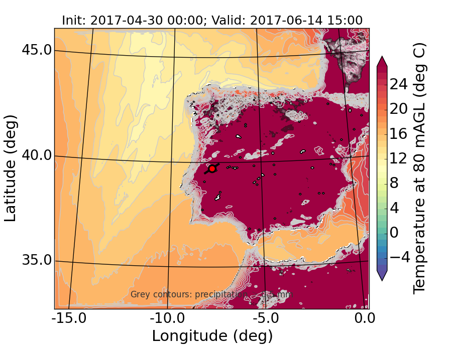 WRF d01 80 m AGL temperature