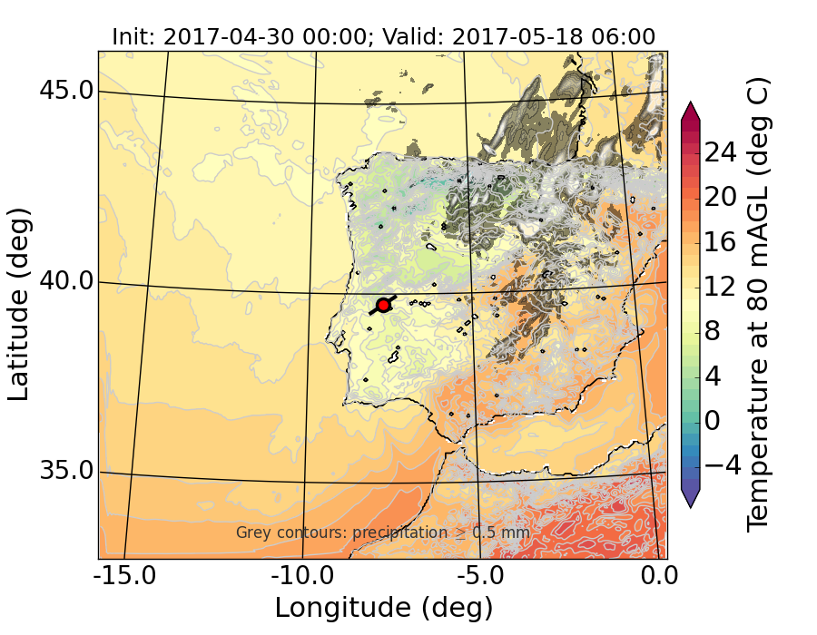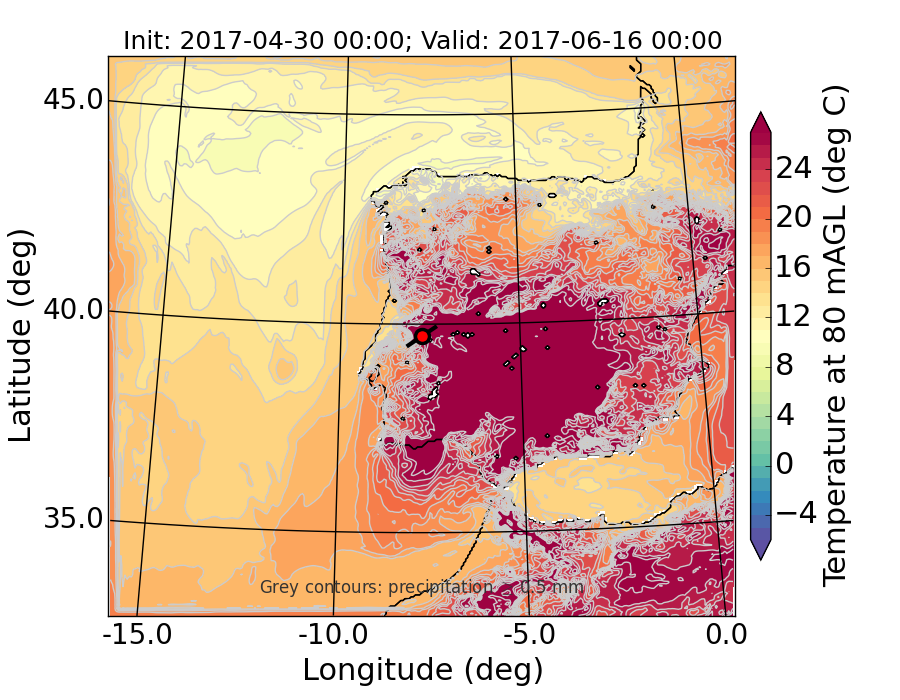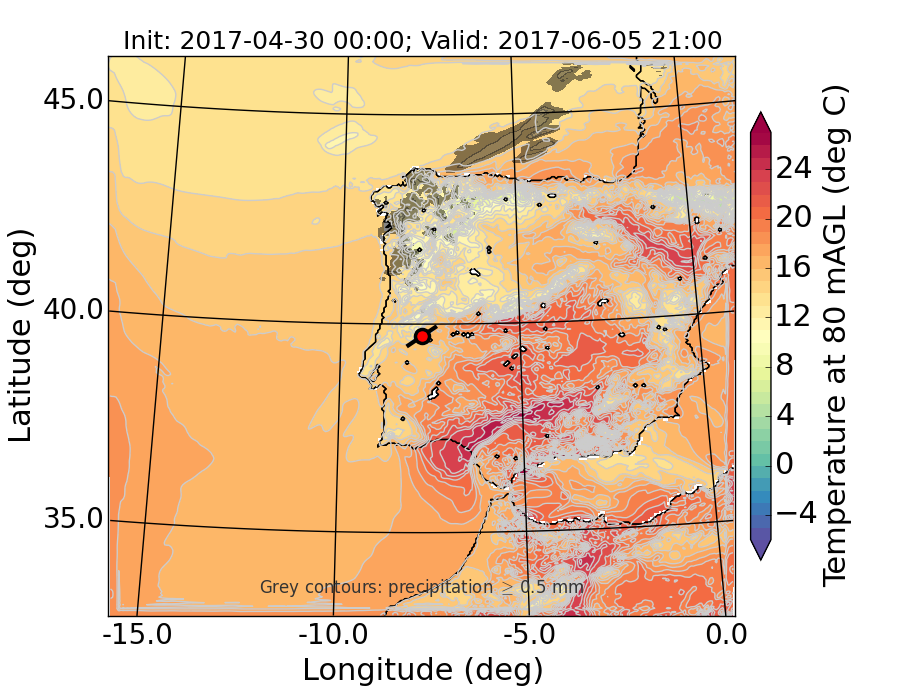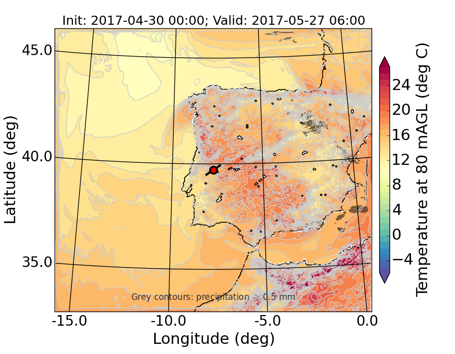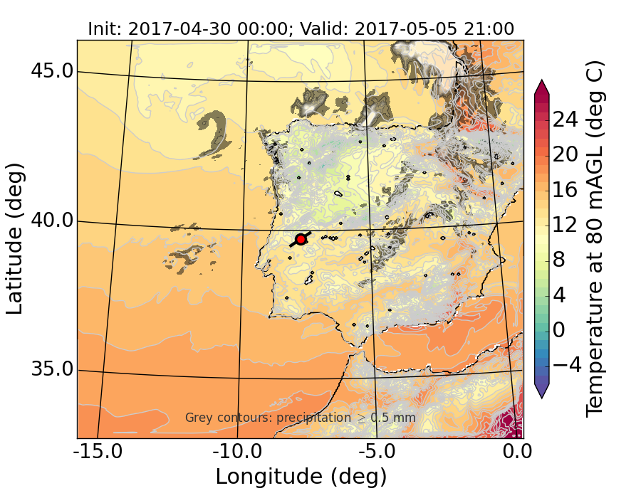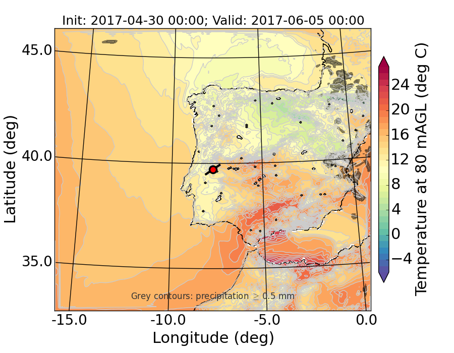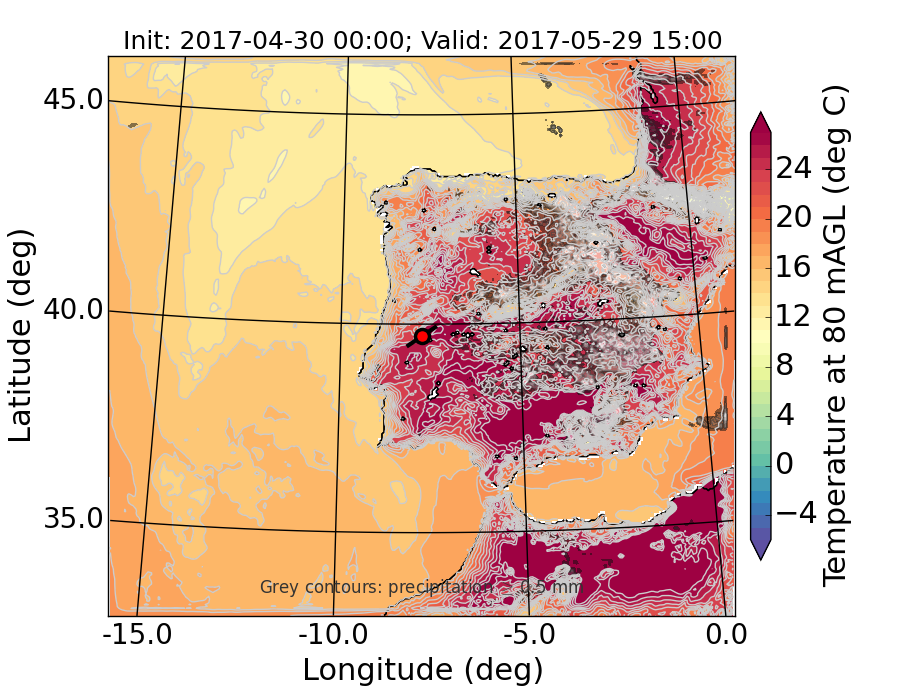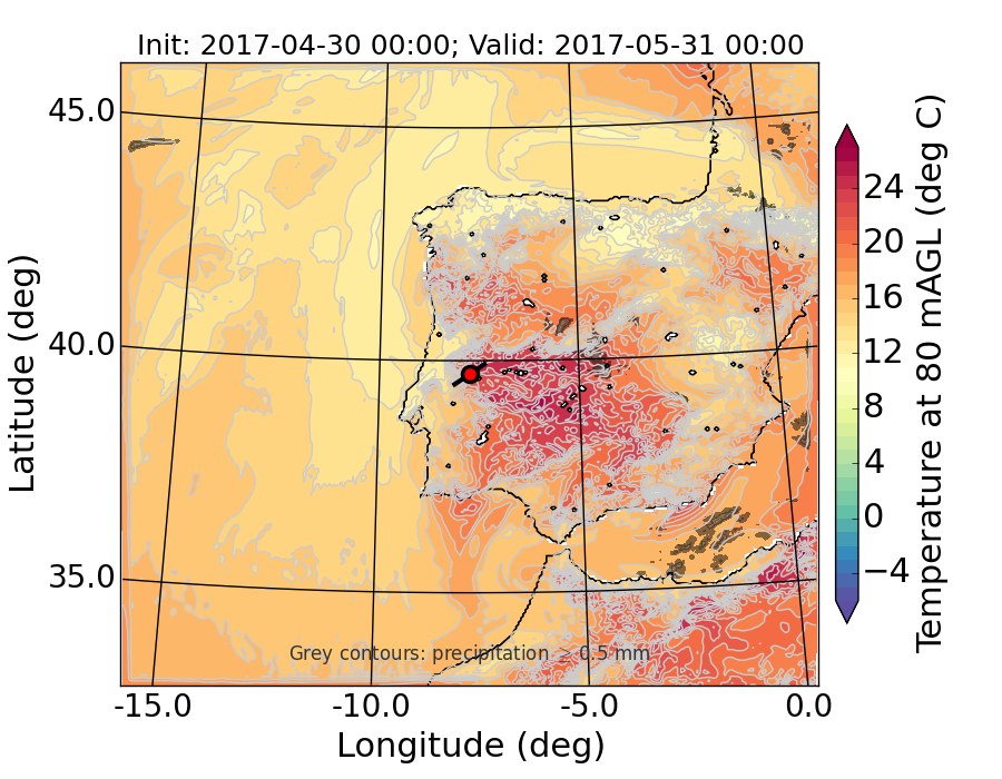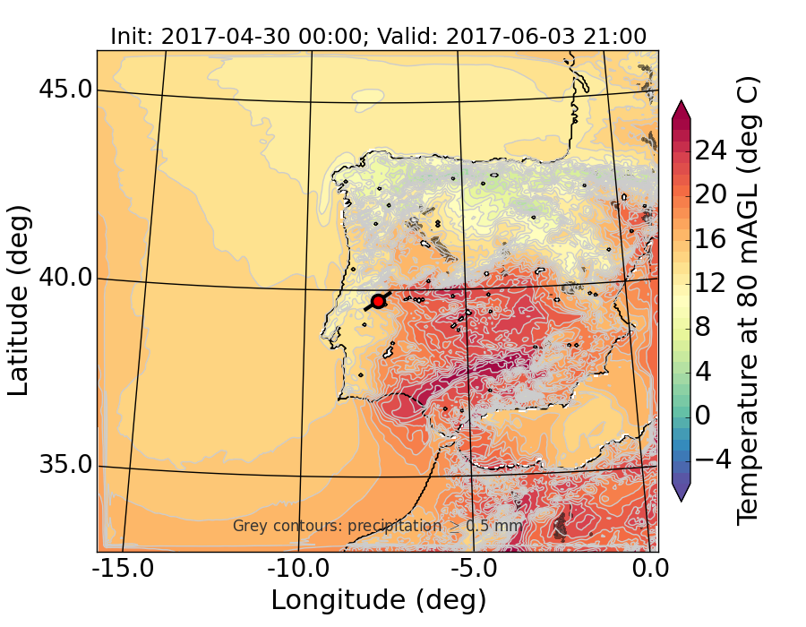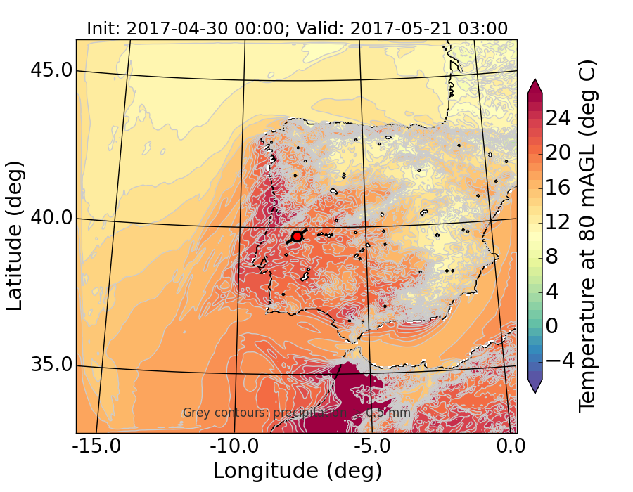 WRF d01 80 m AGL temperature
