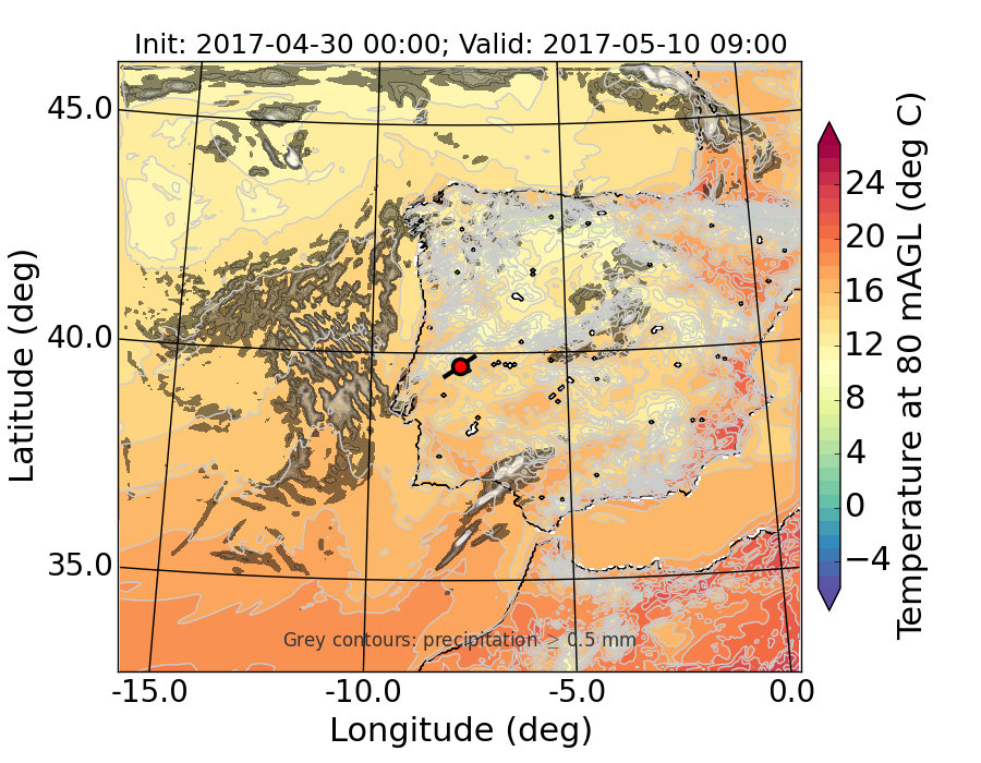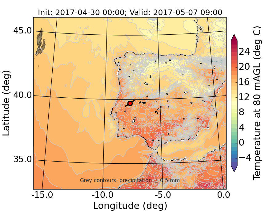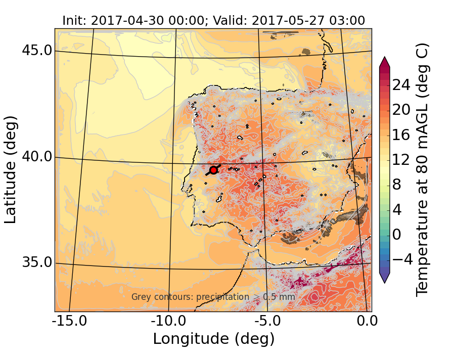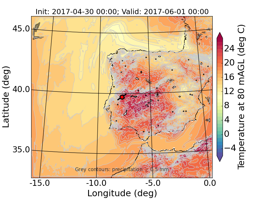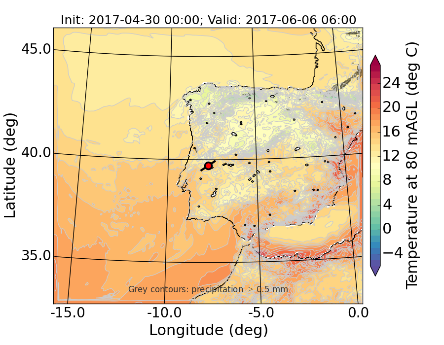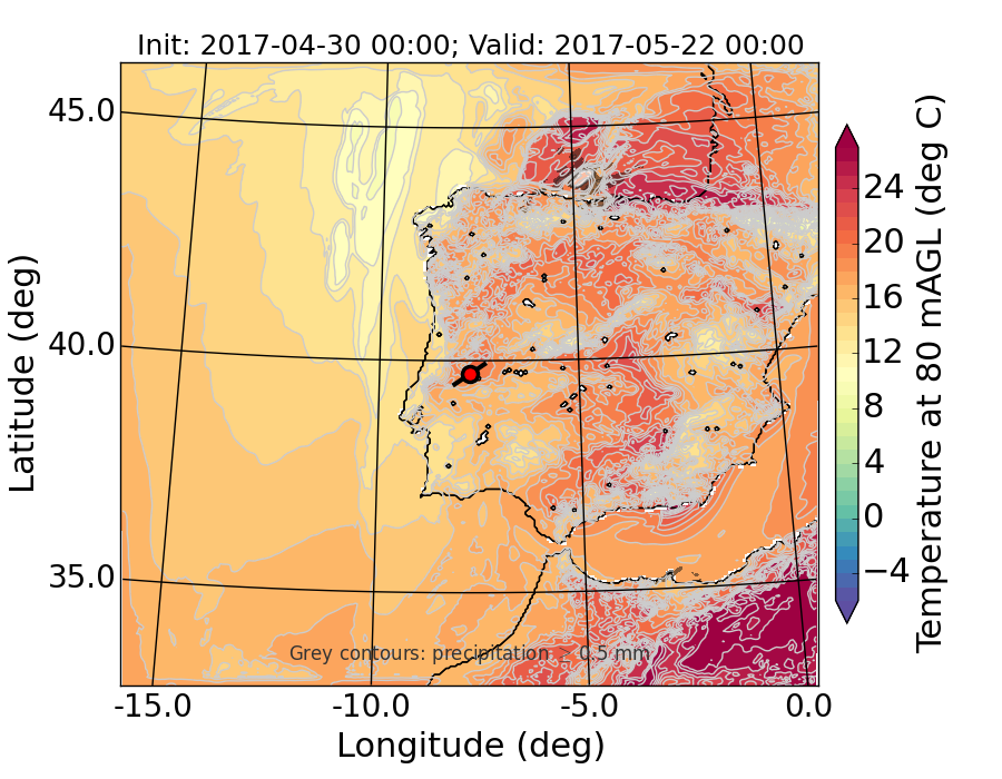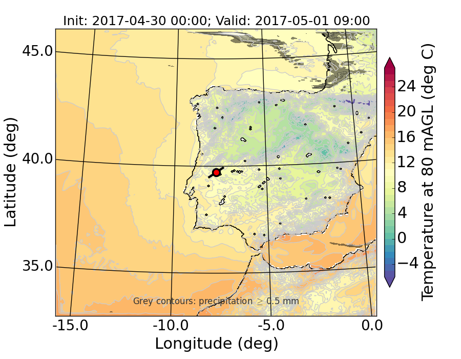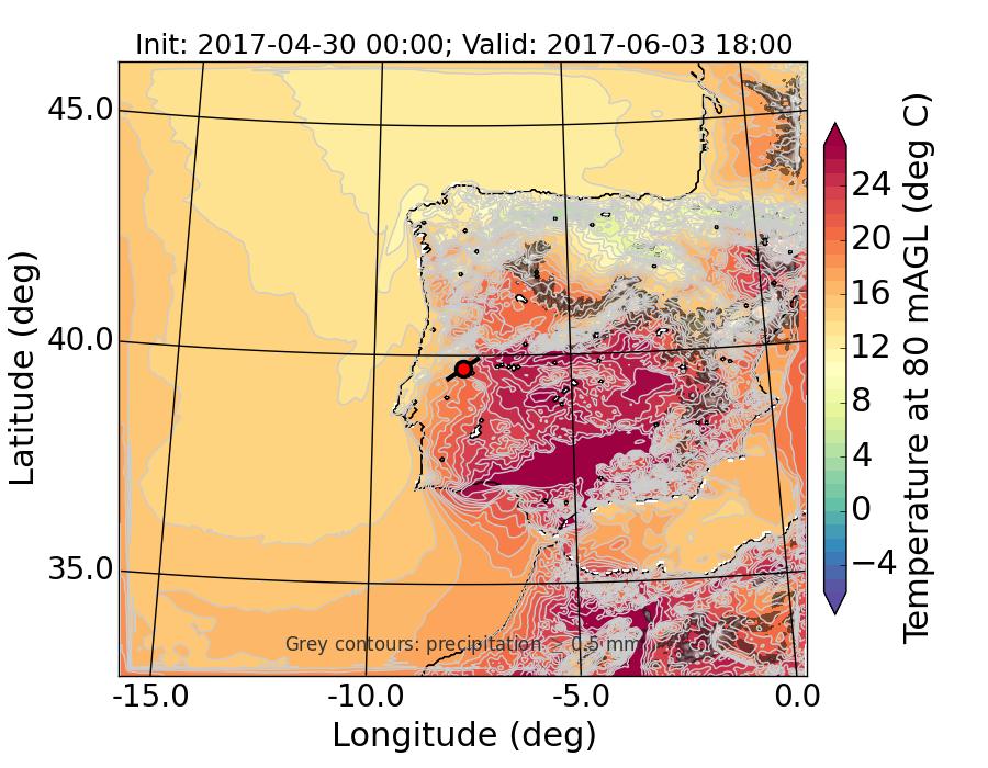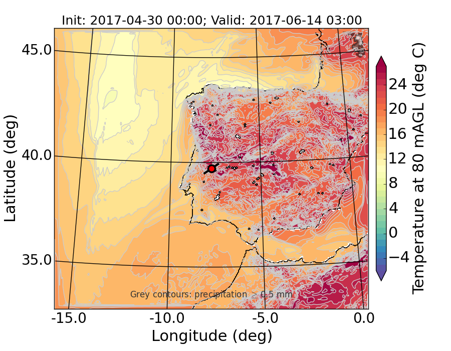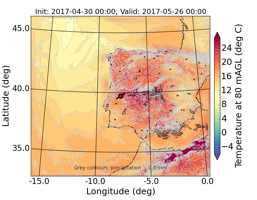 WRF d01 80 m AGL temperature