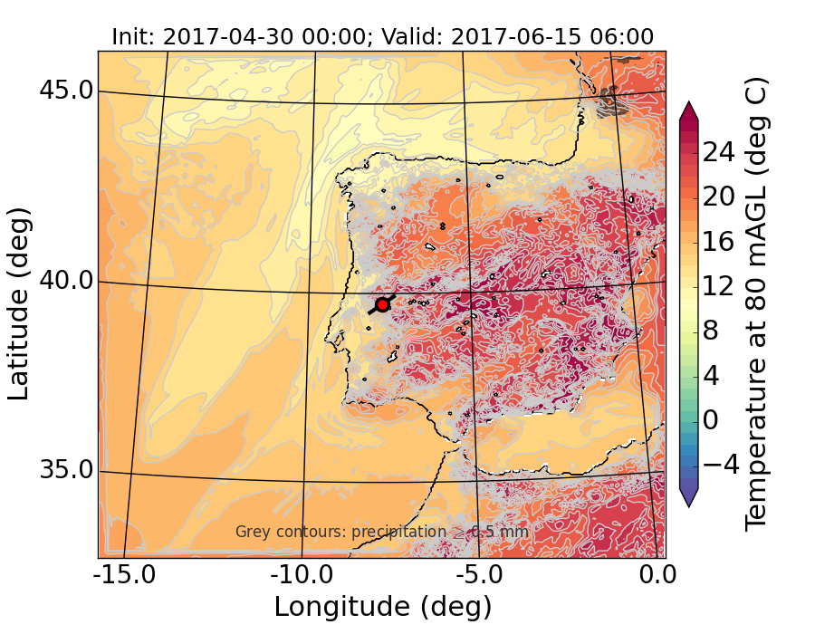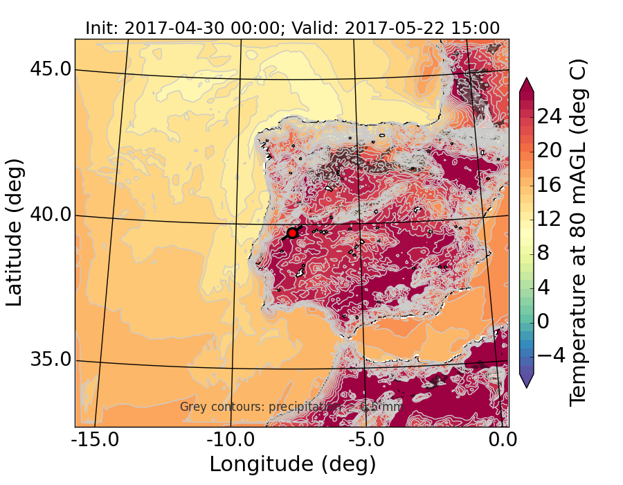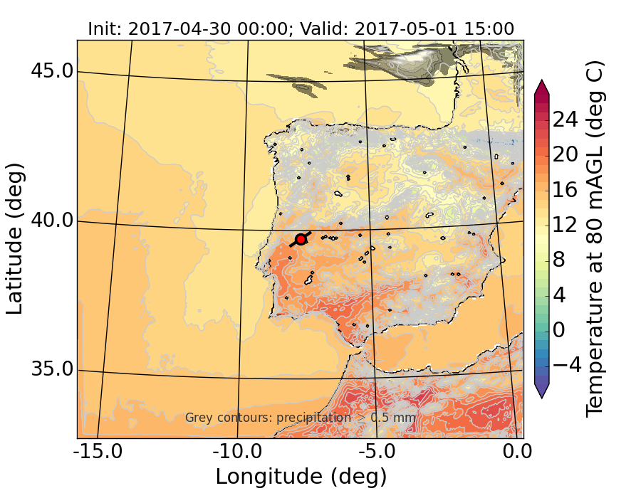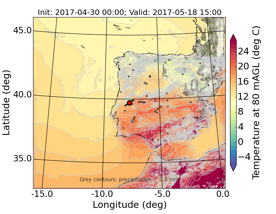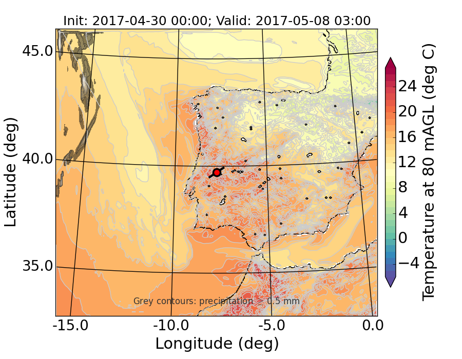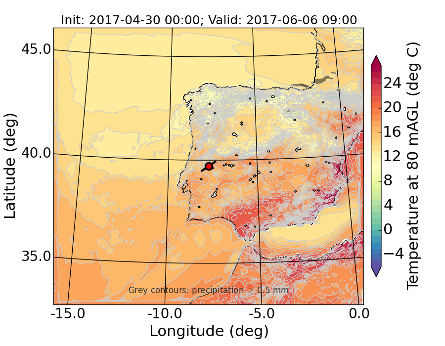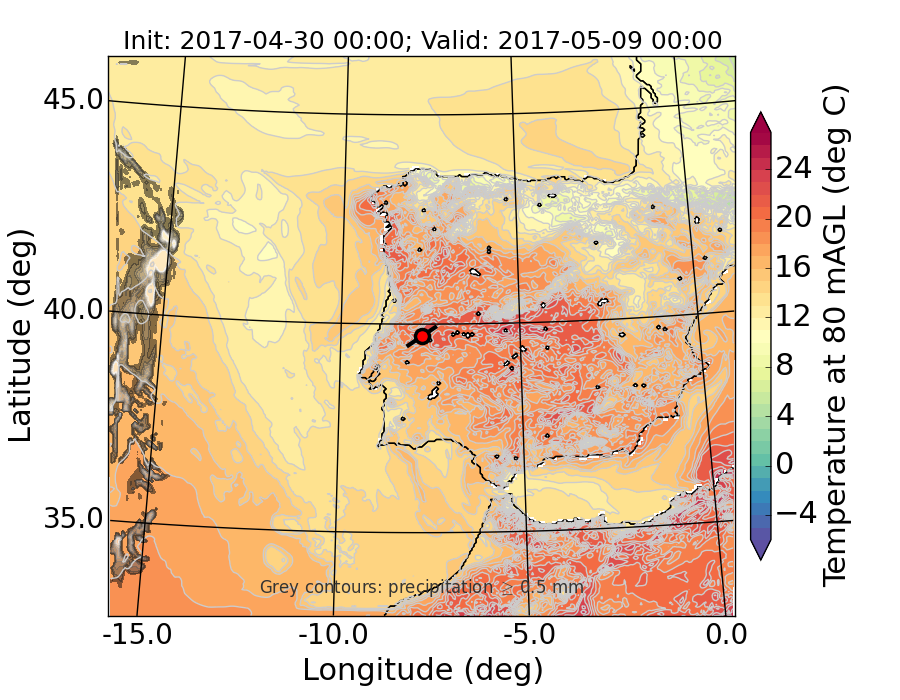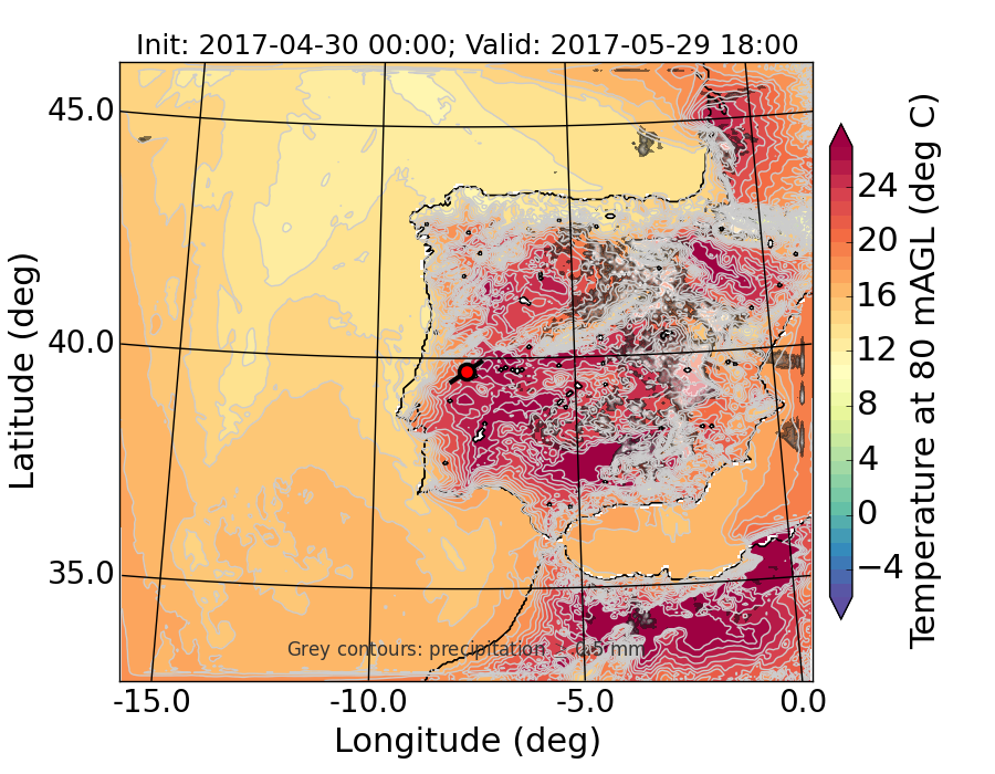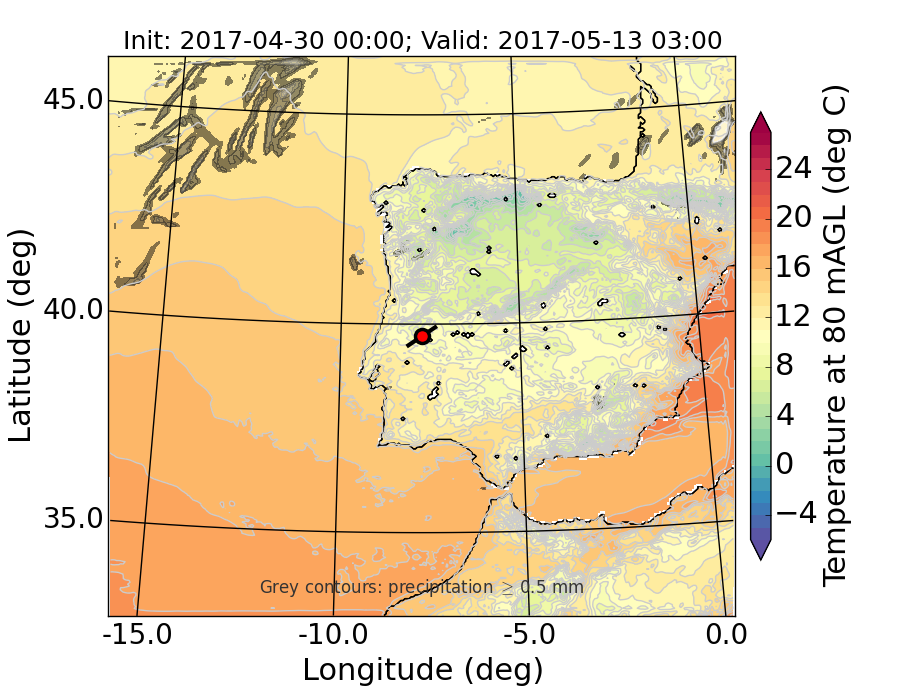 WRF d01 80 m AGL temperature