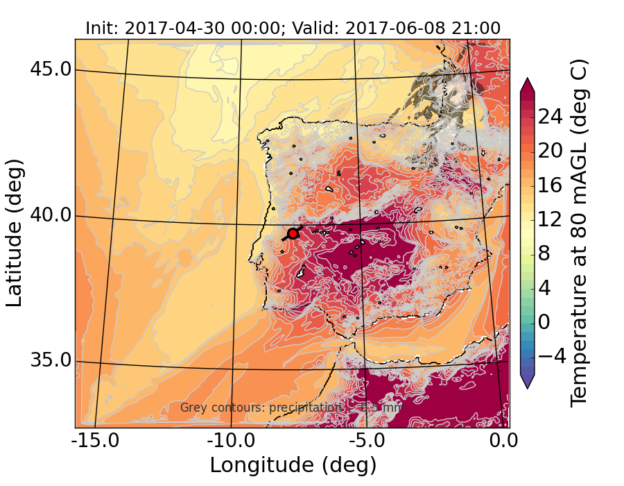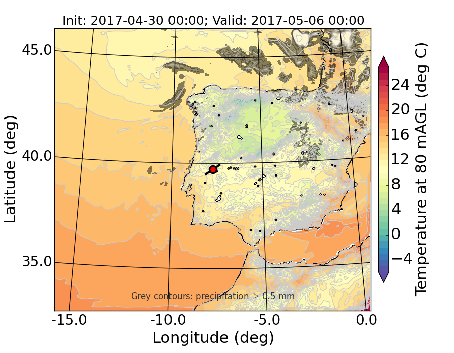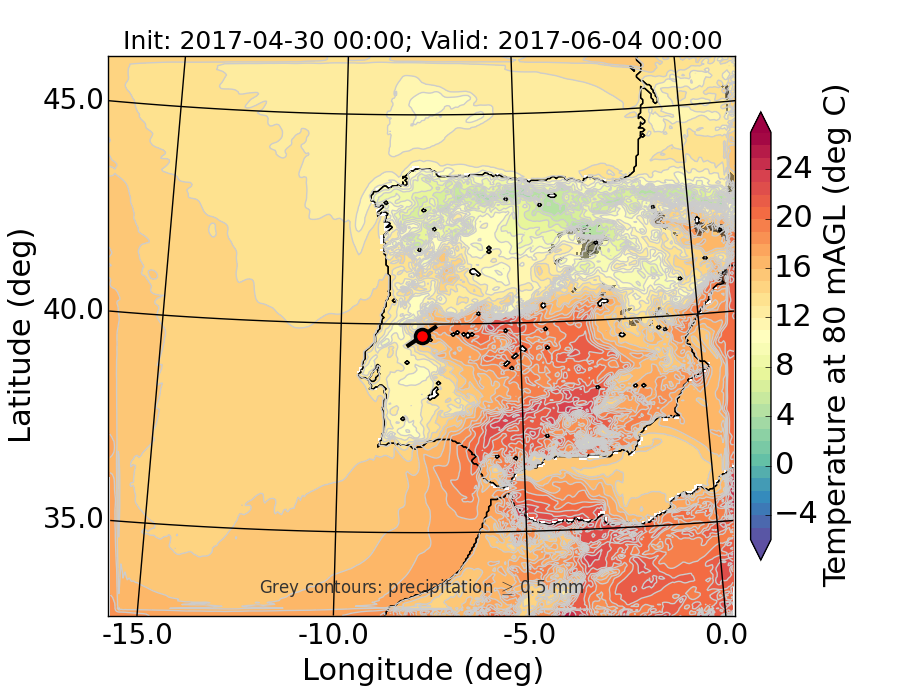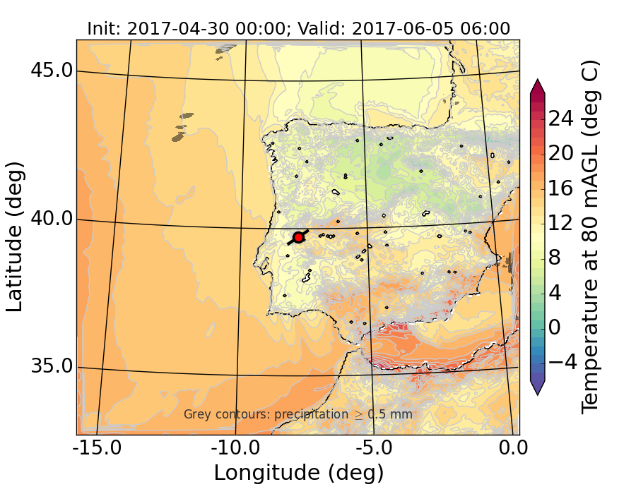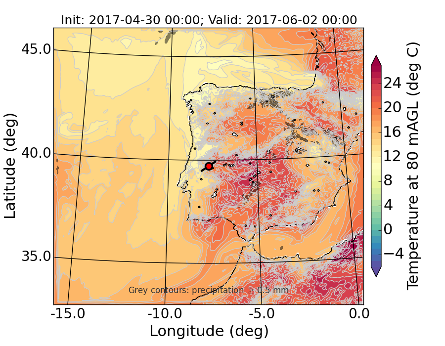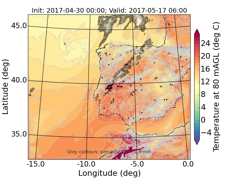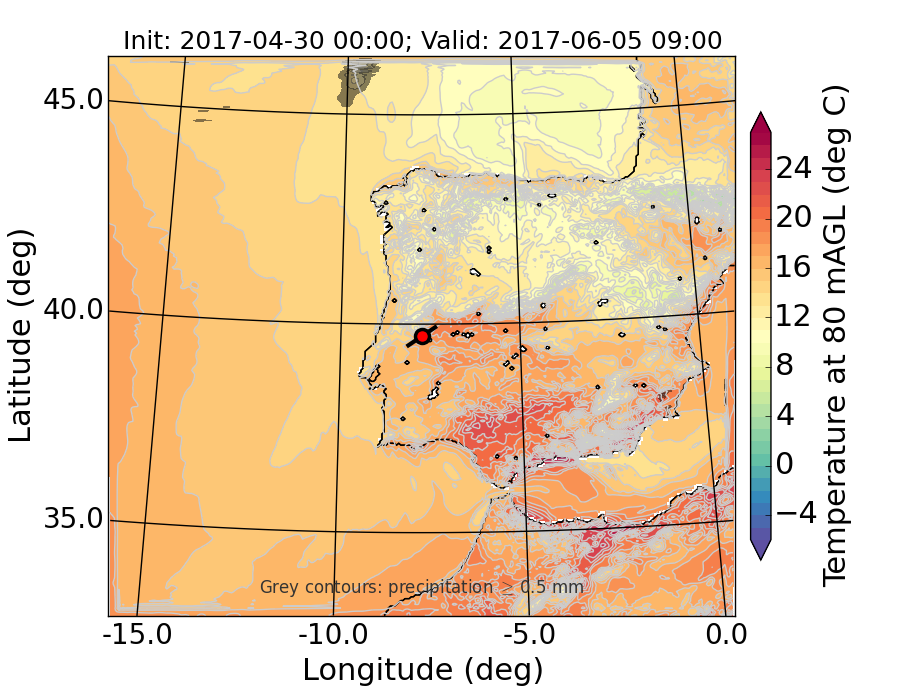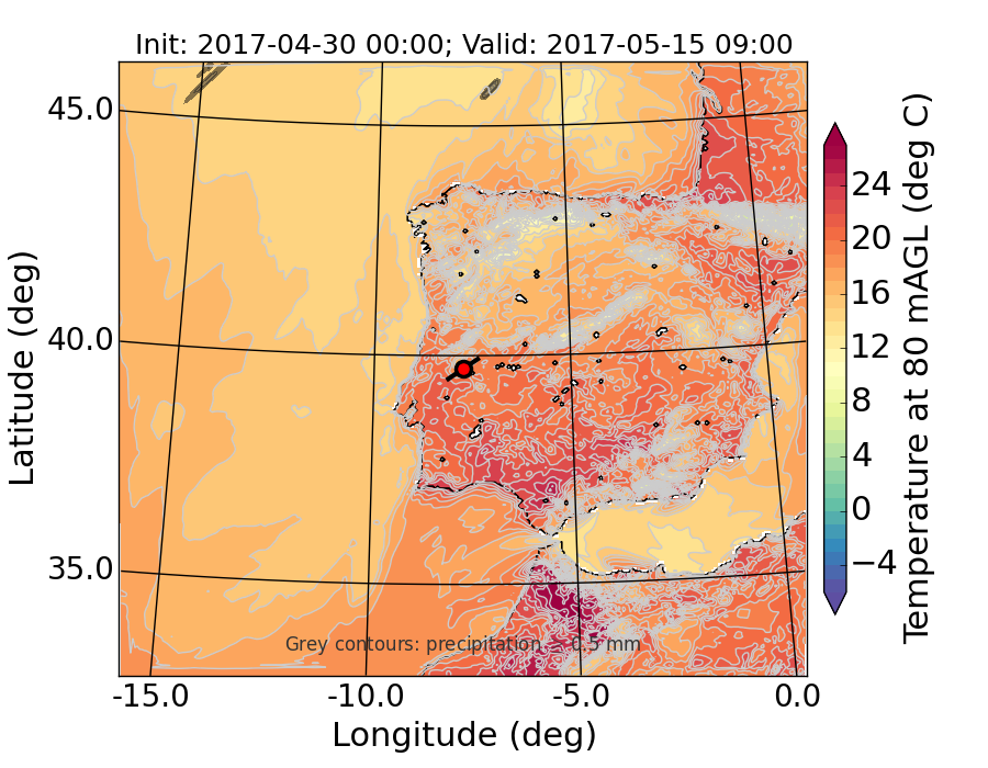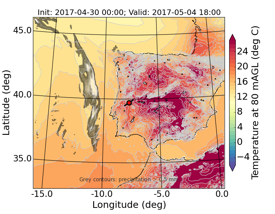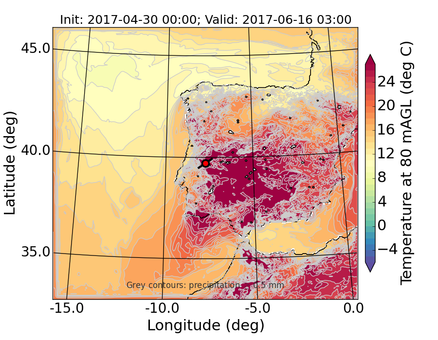 WRF d01 80 m AGL temperature