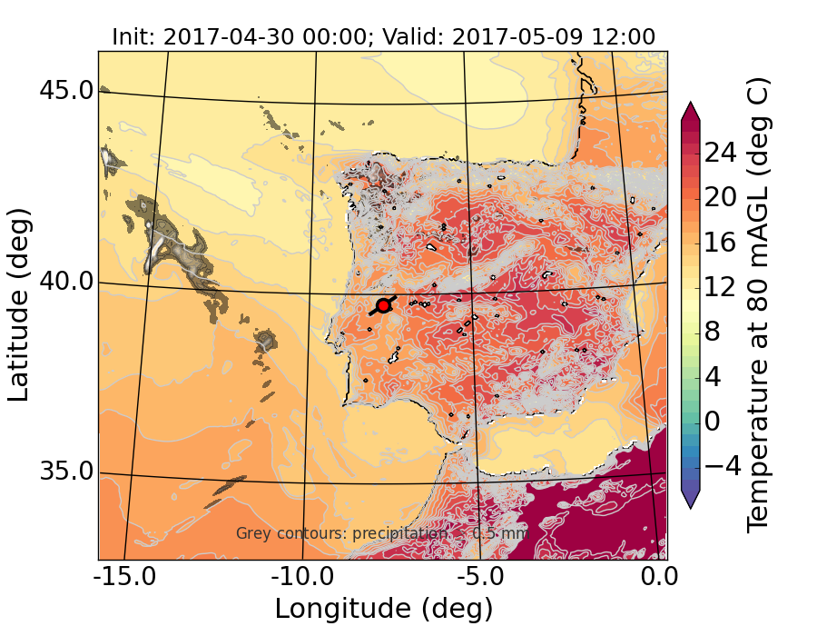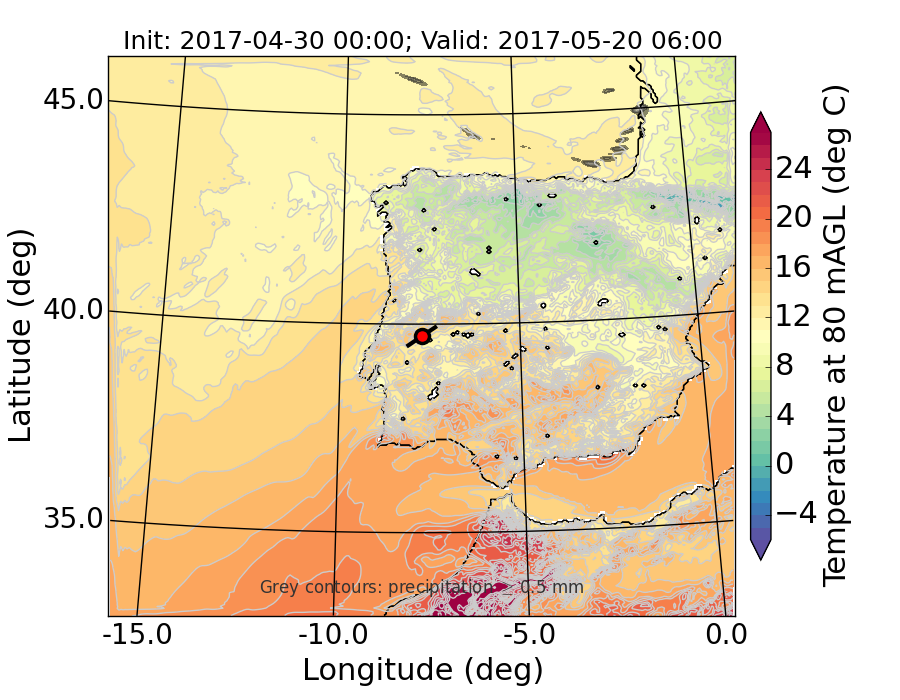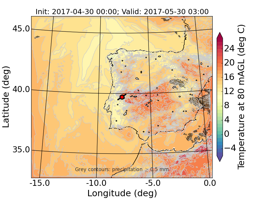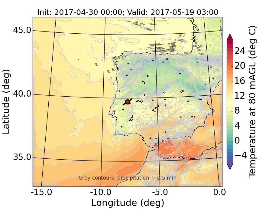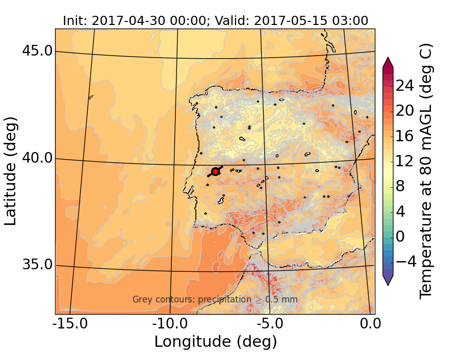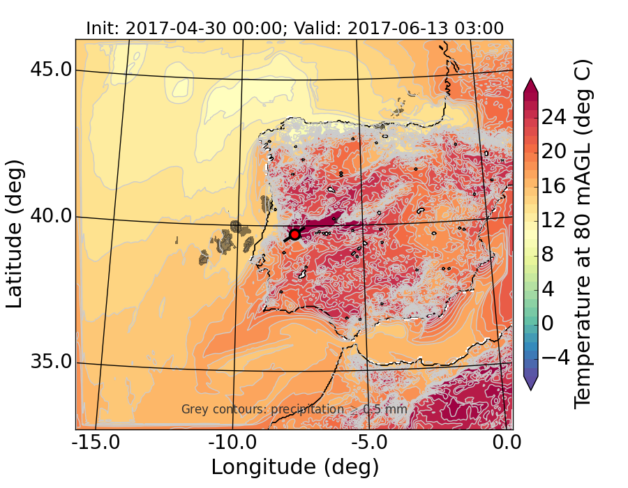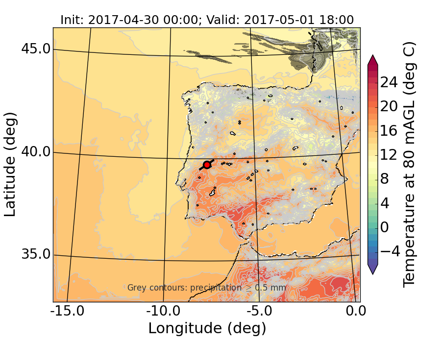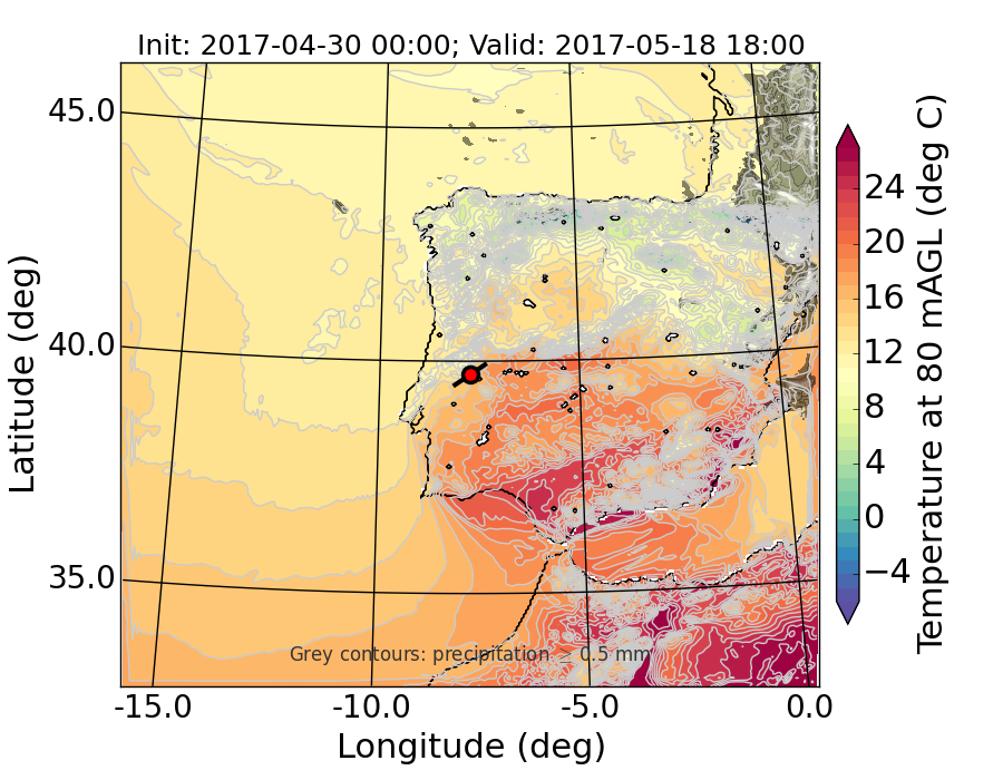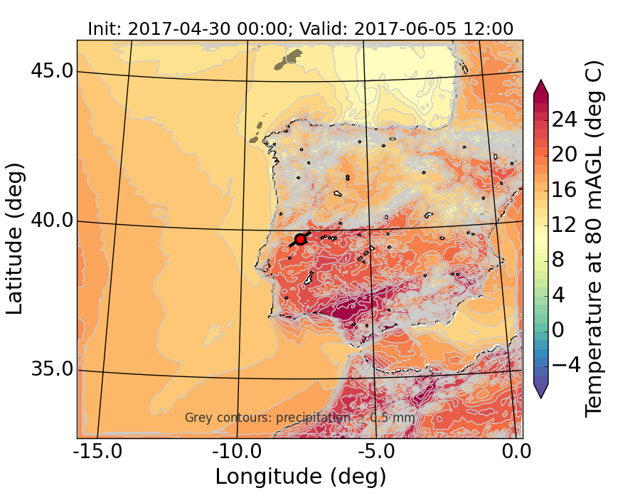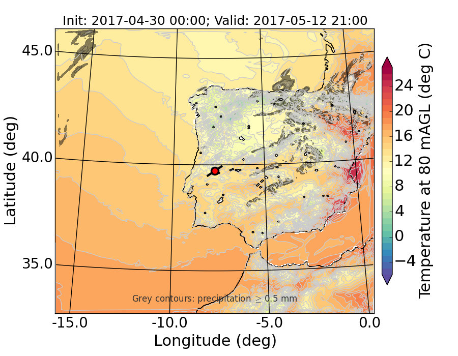 WRF d01 80 m AGL temperature