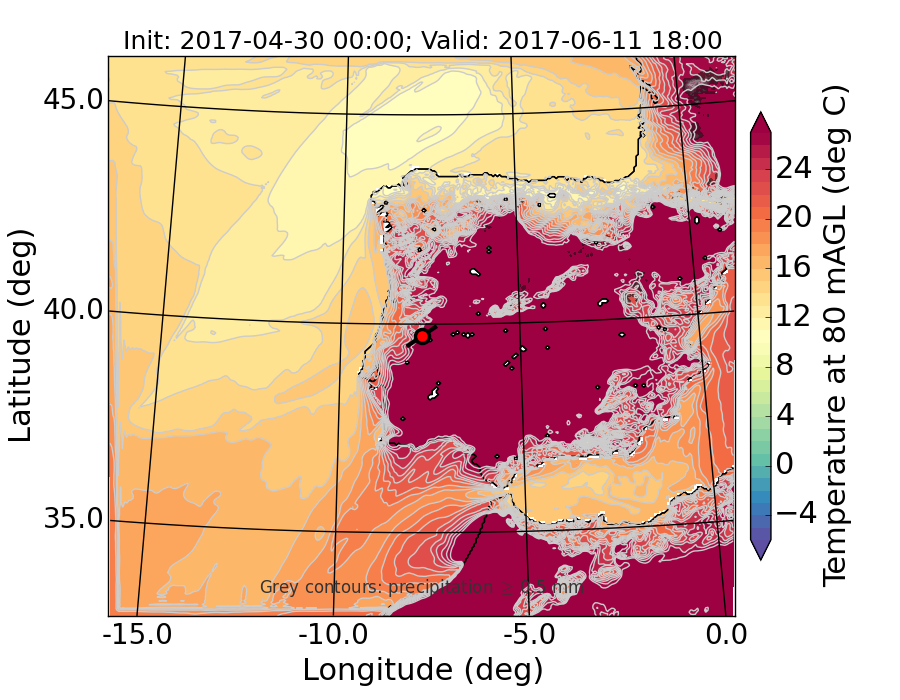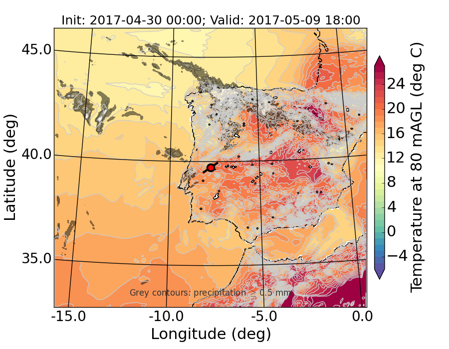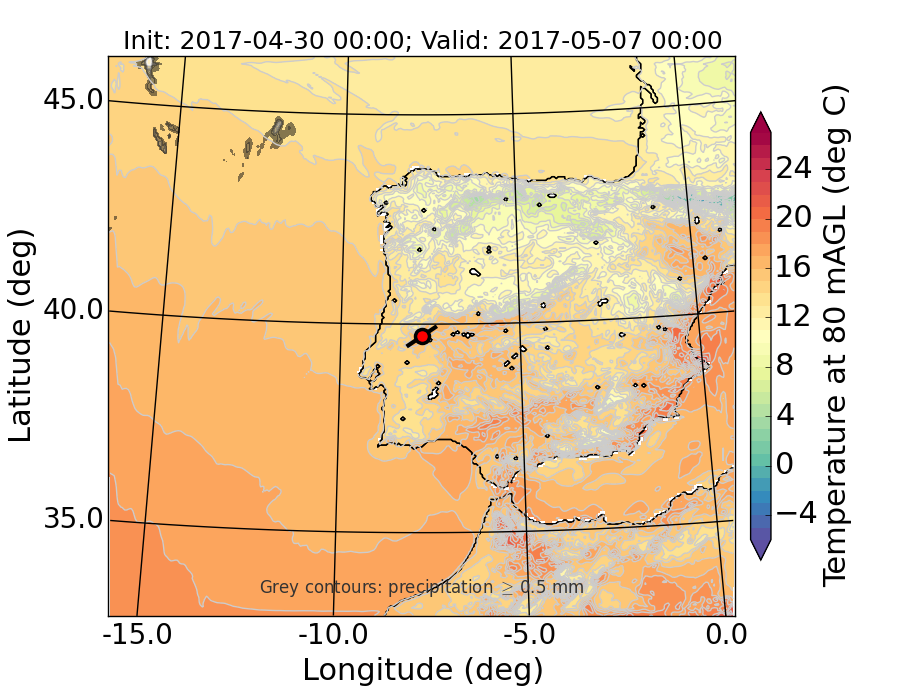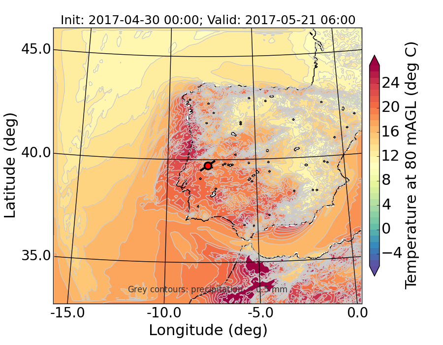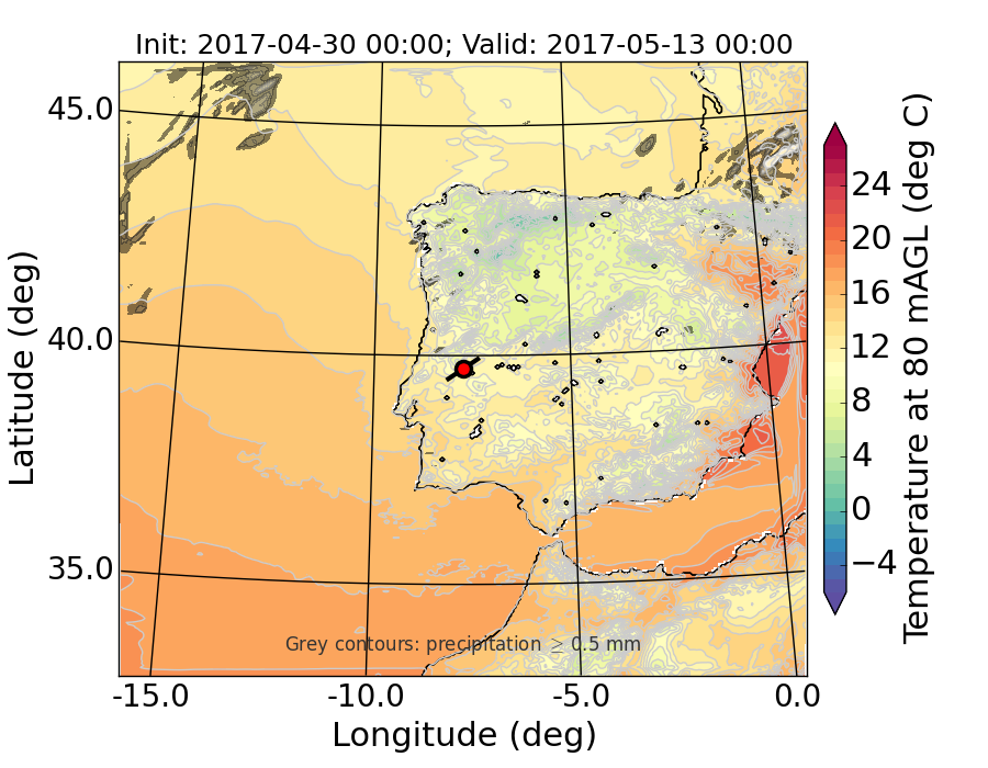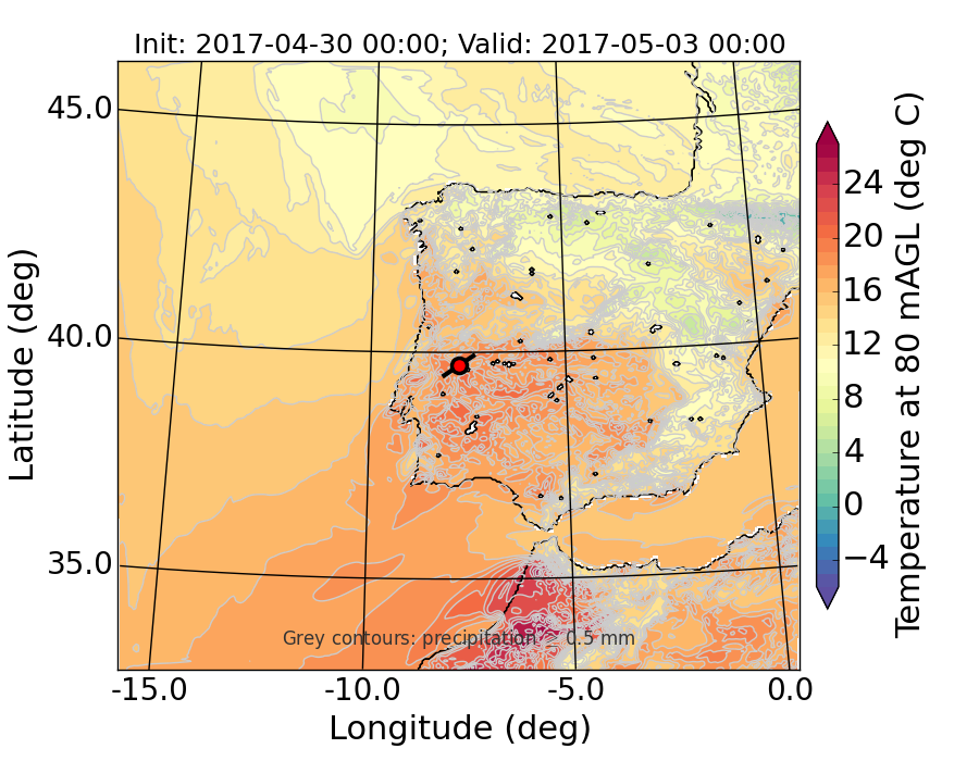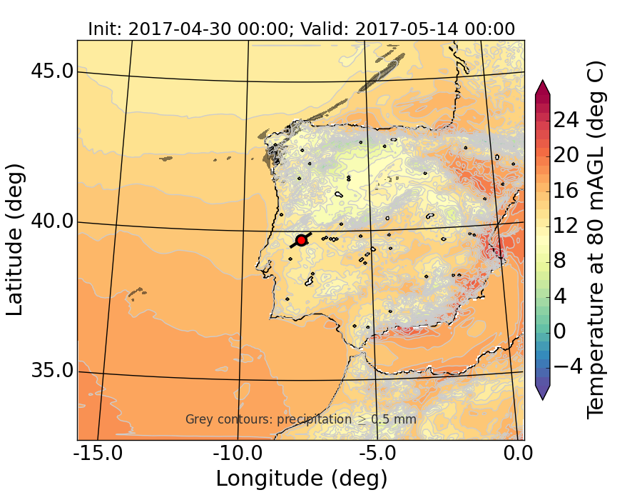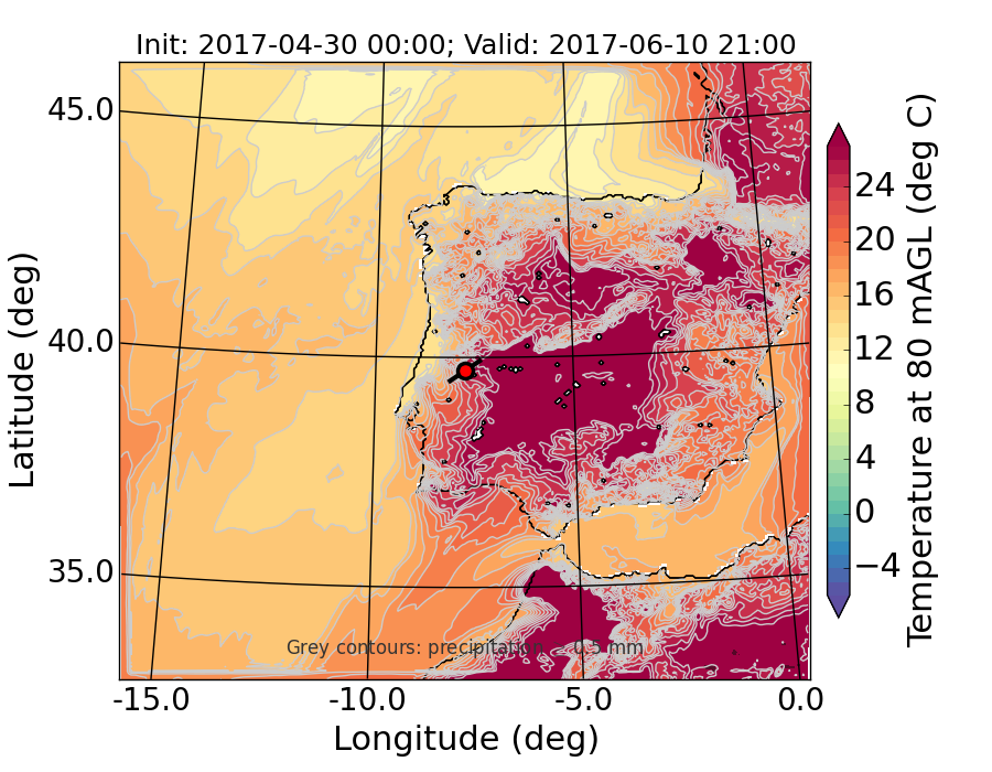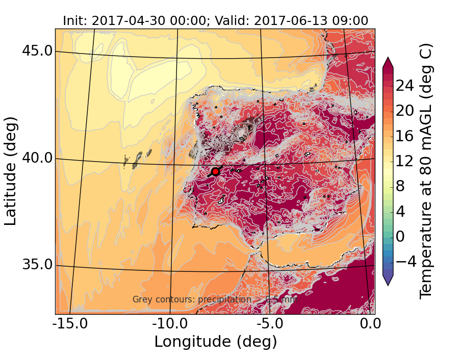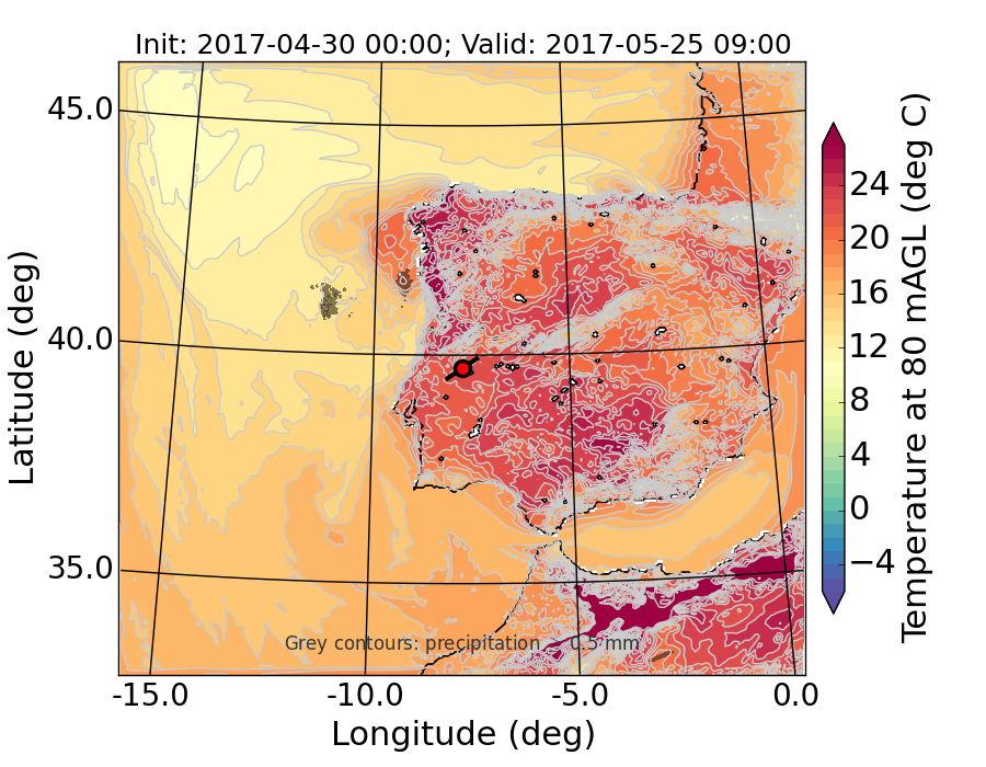 WRF d01 80 m AGL temperature