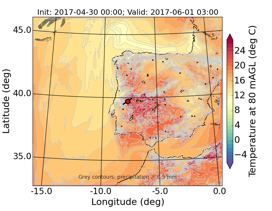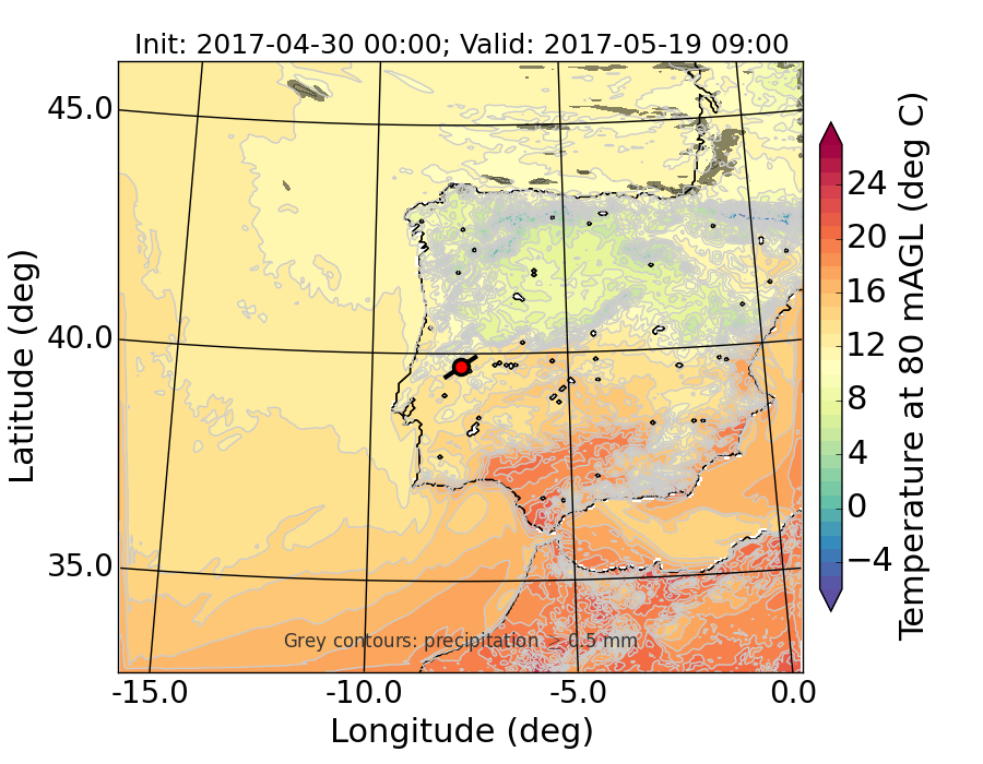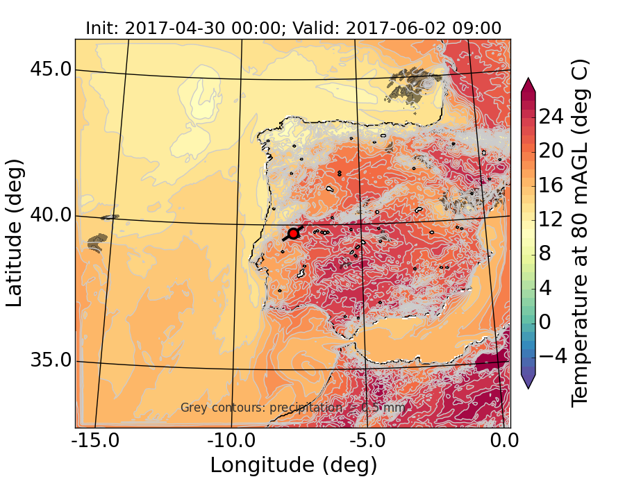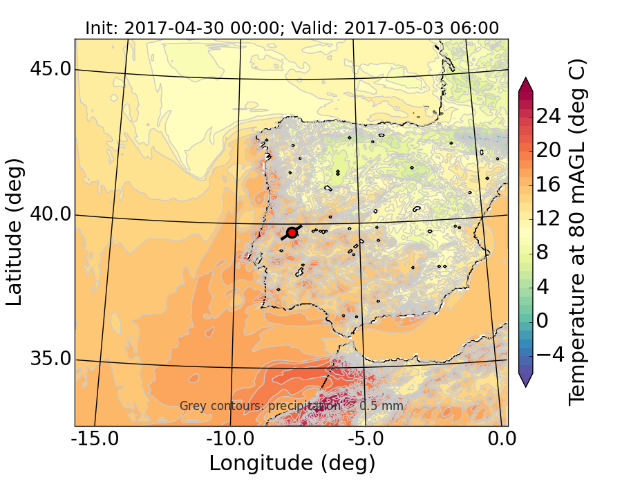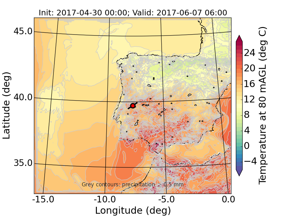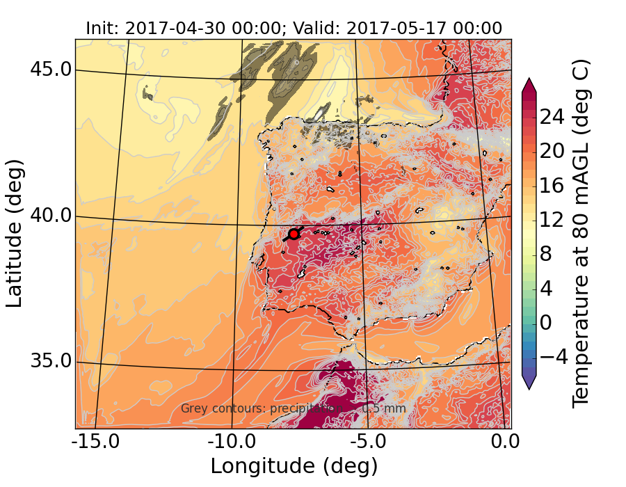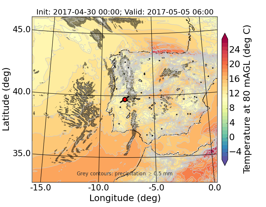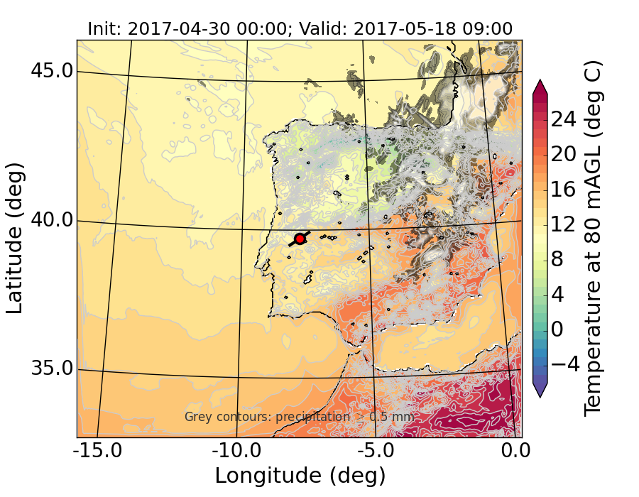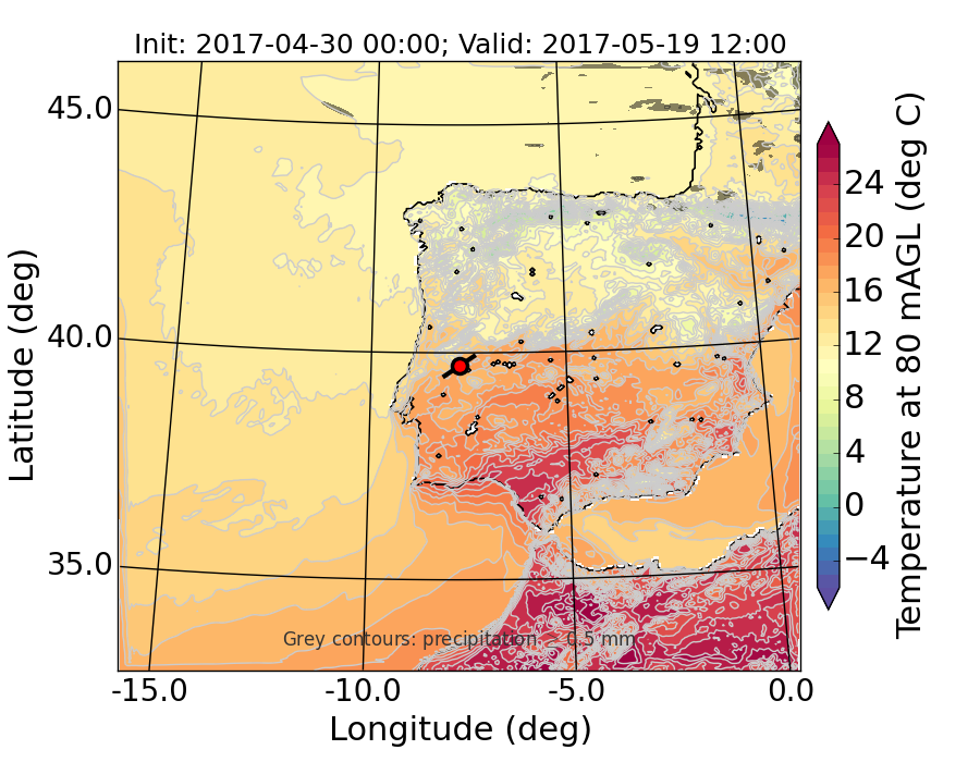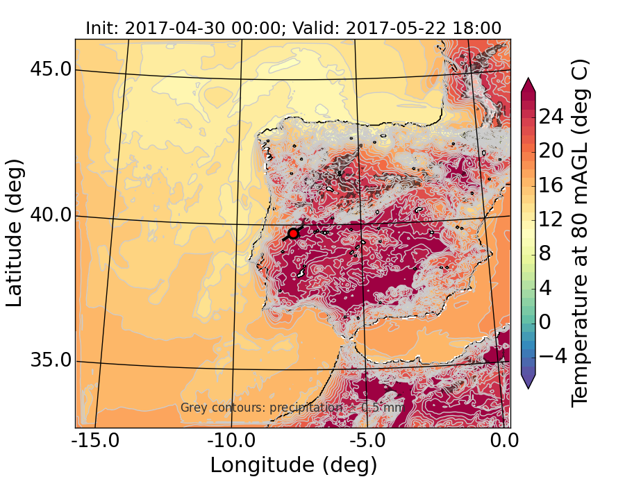 WRF d01 80 m AGL temperature