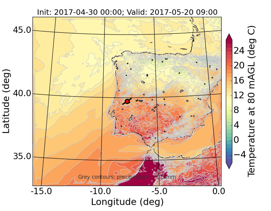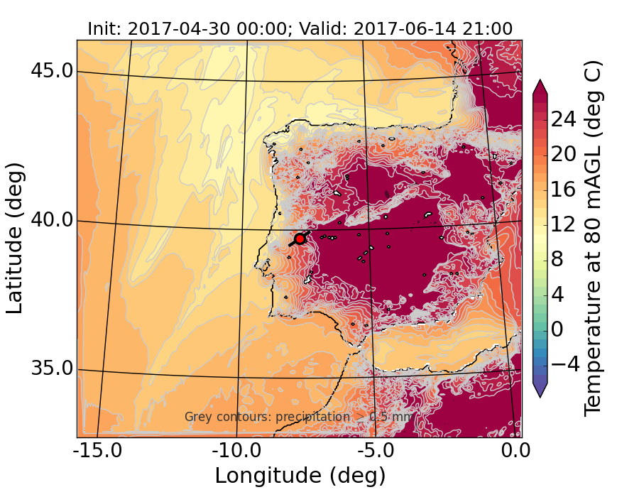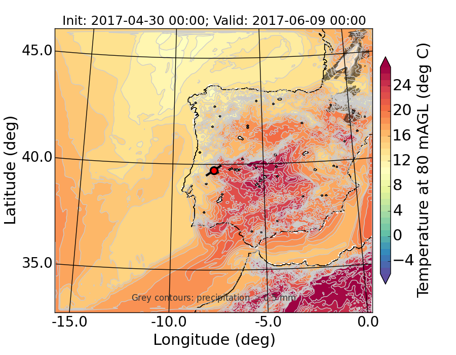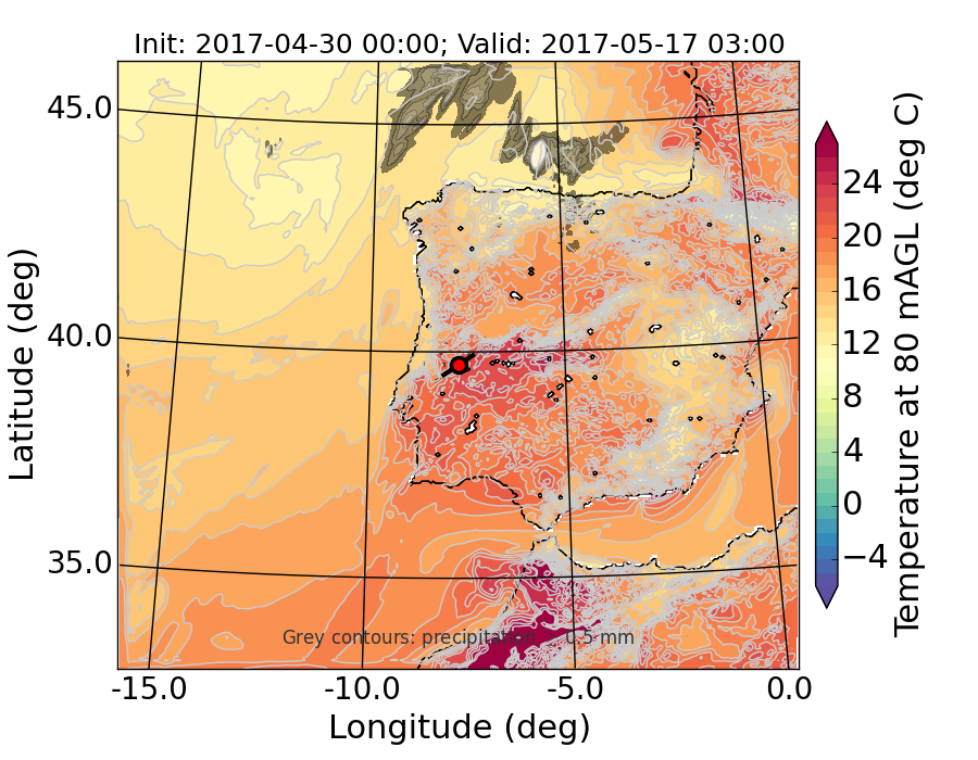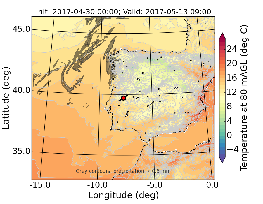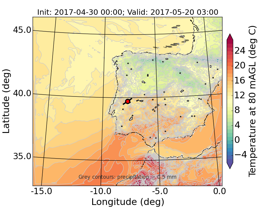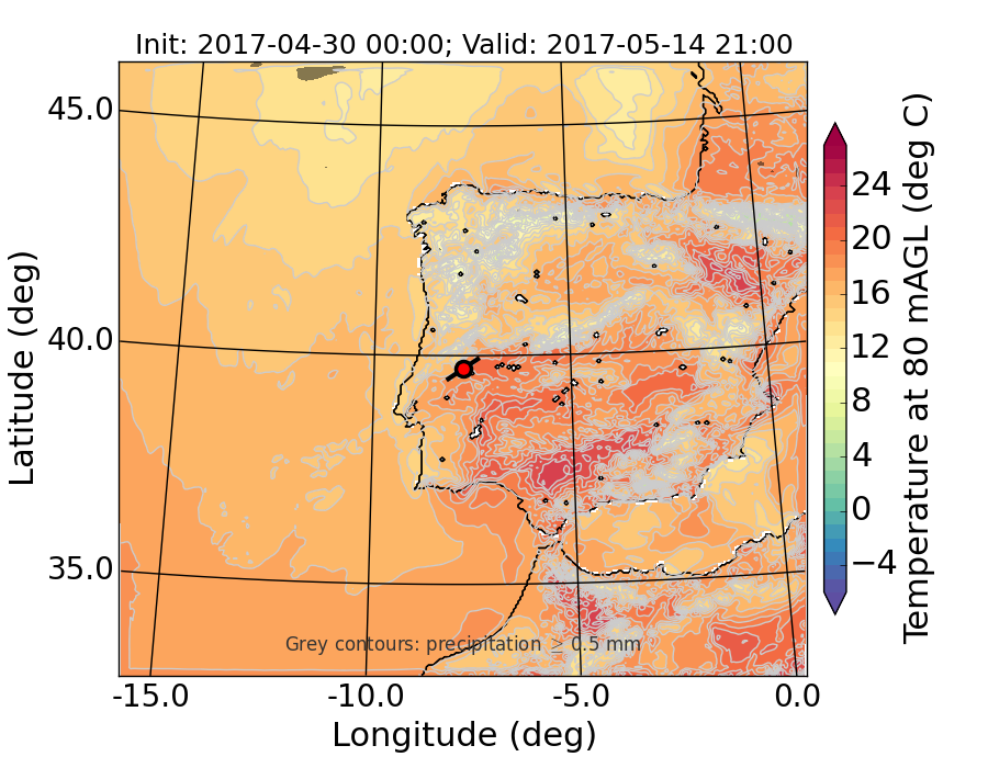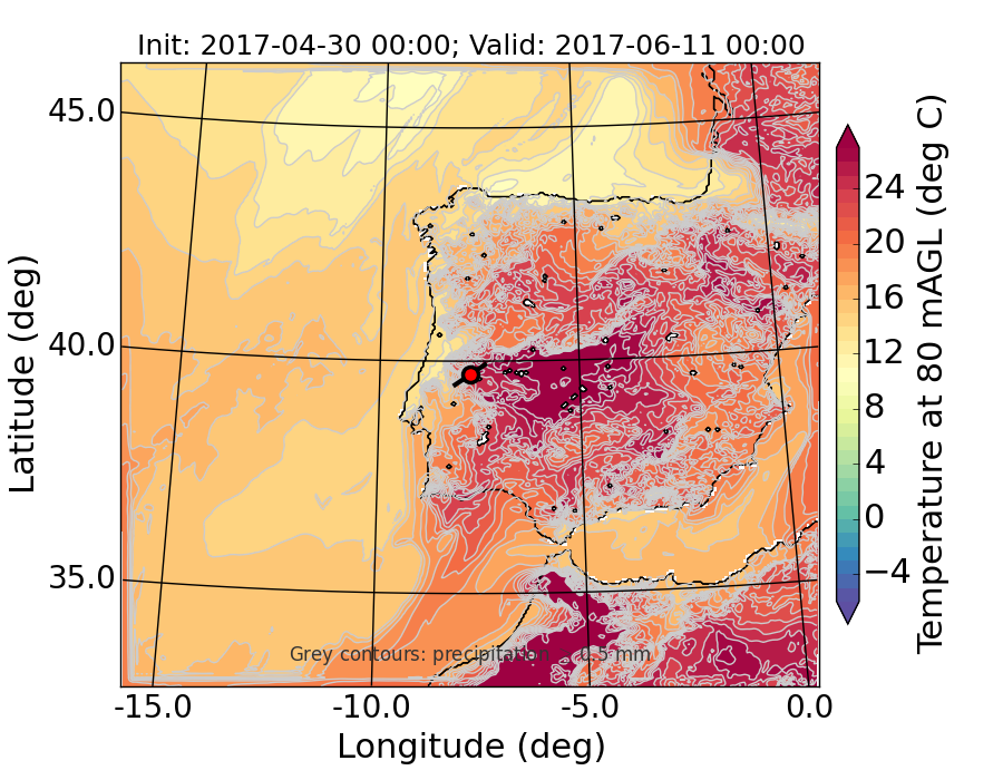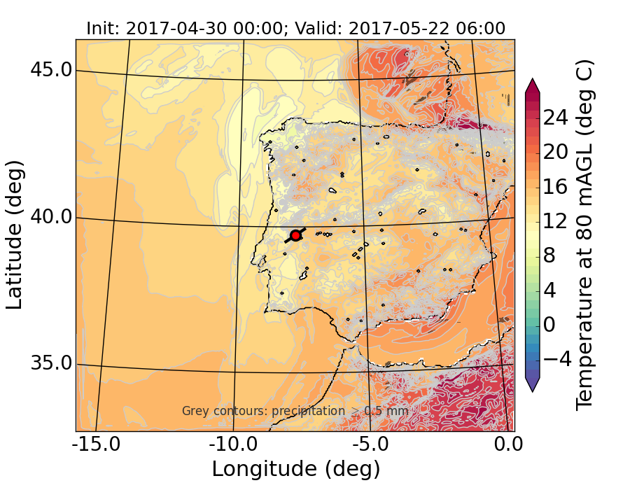 WRF d01 80 m AGL temperature