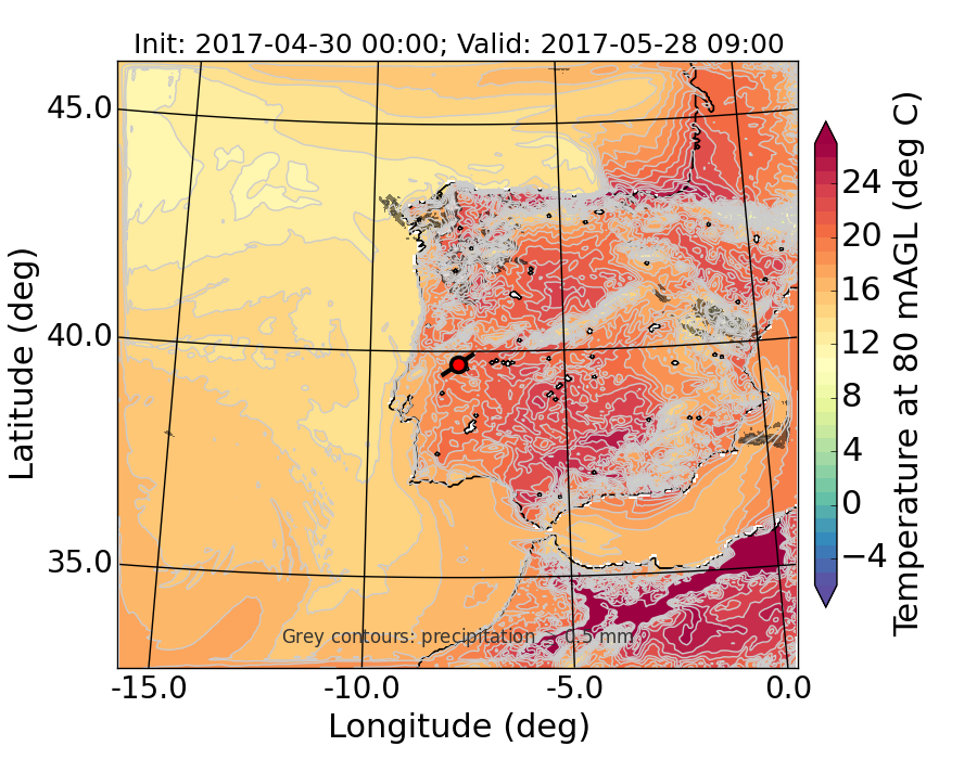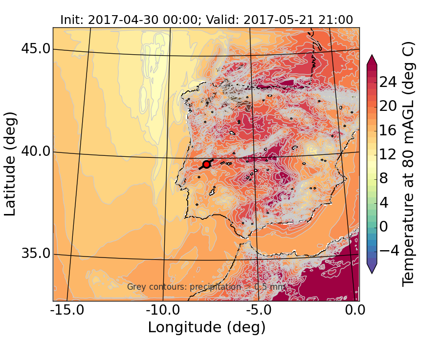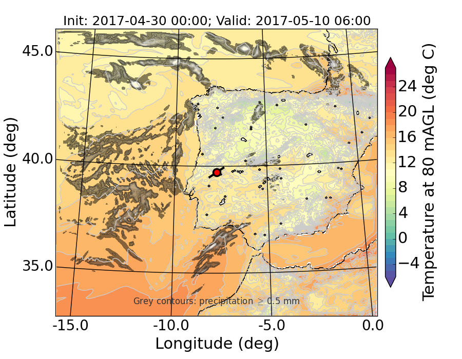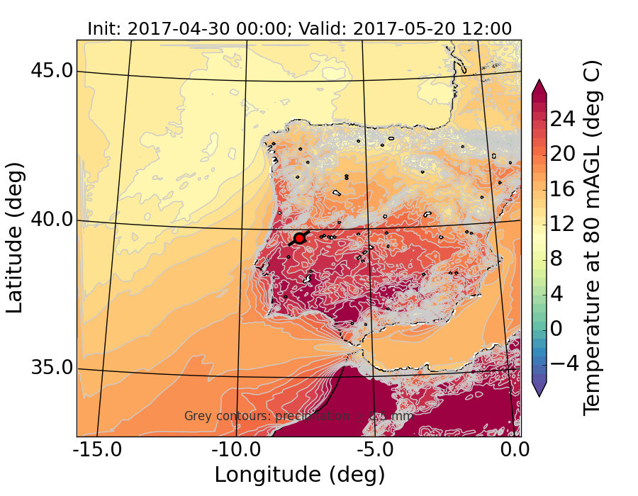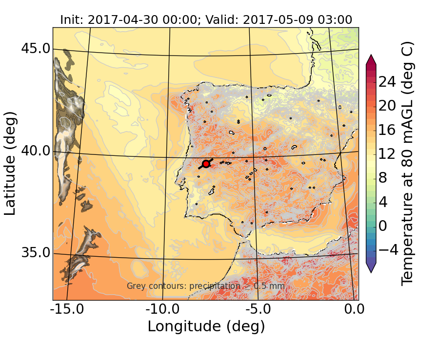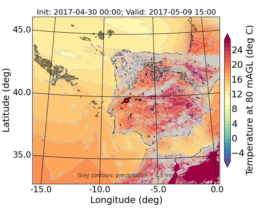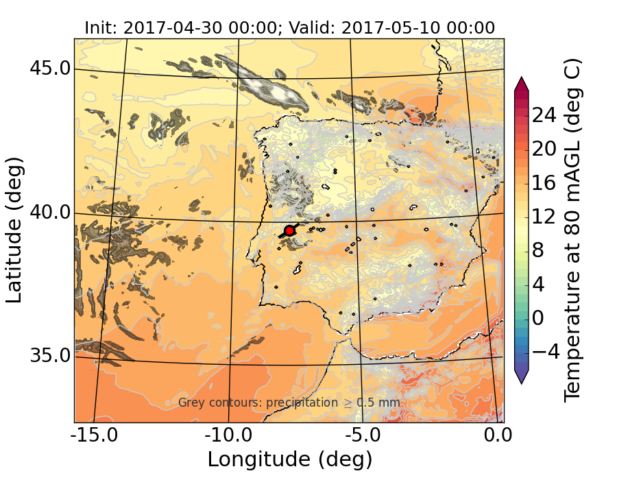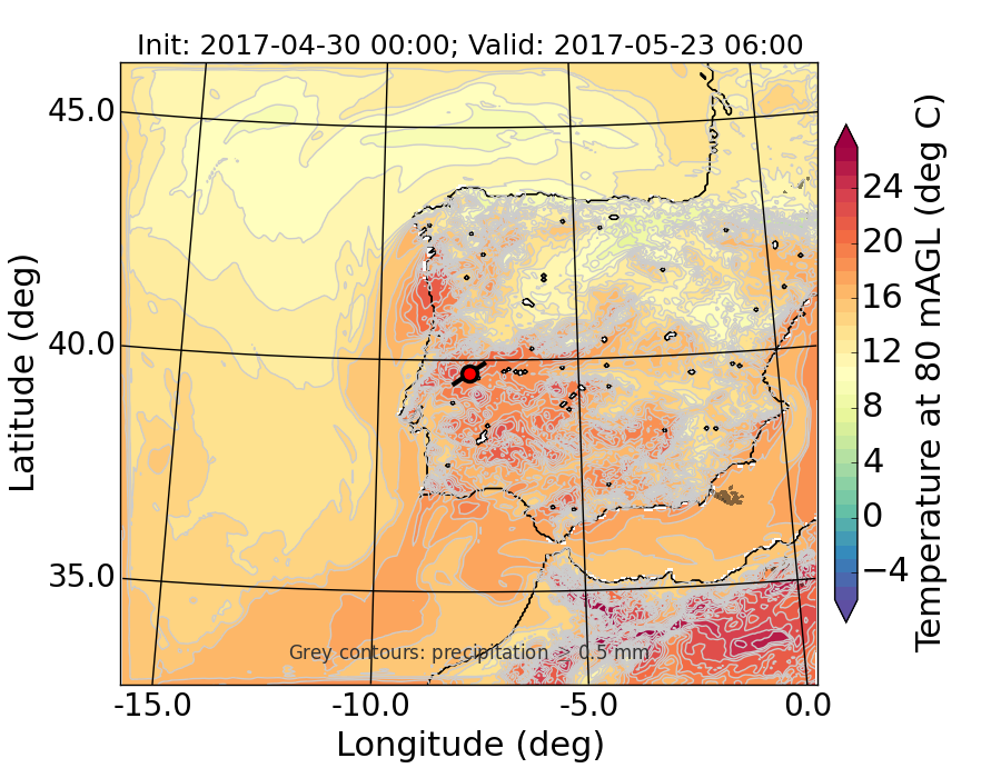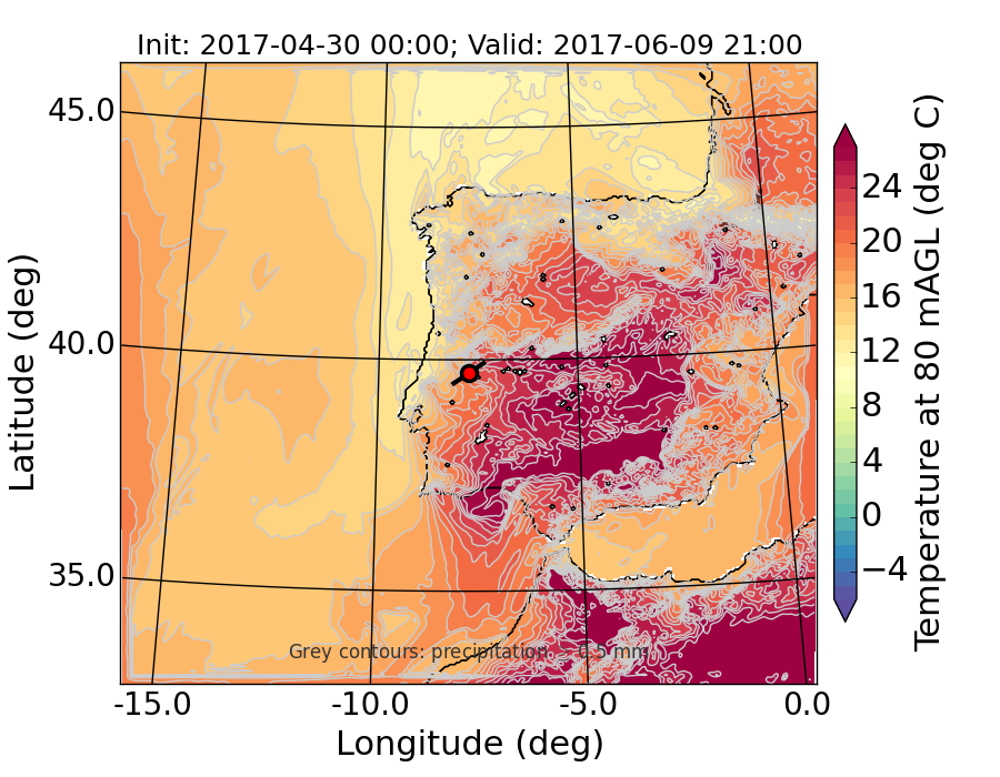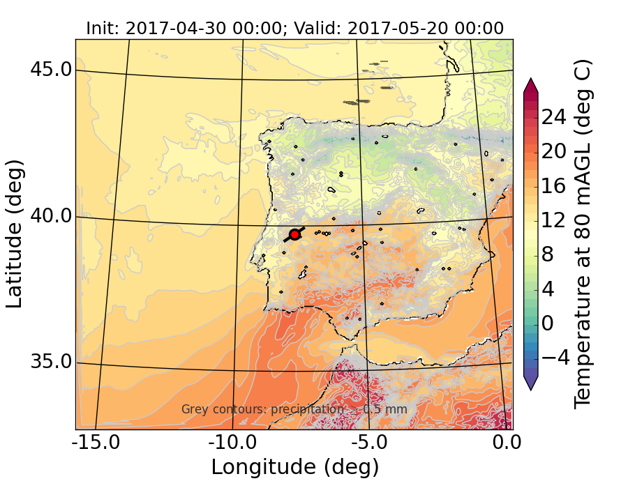 WRF d01 80 m AGL temperature