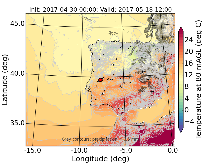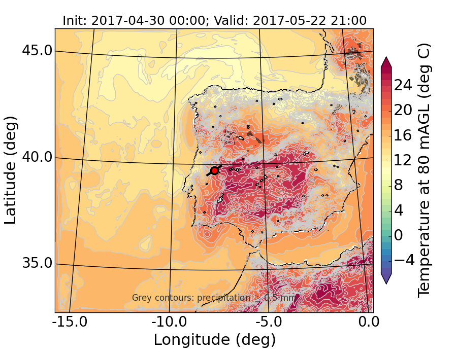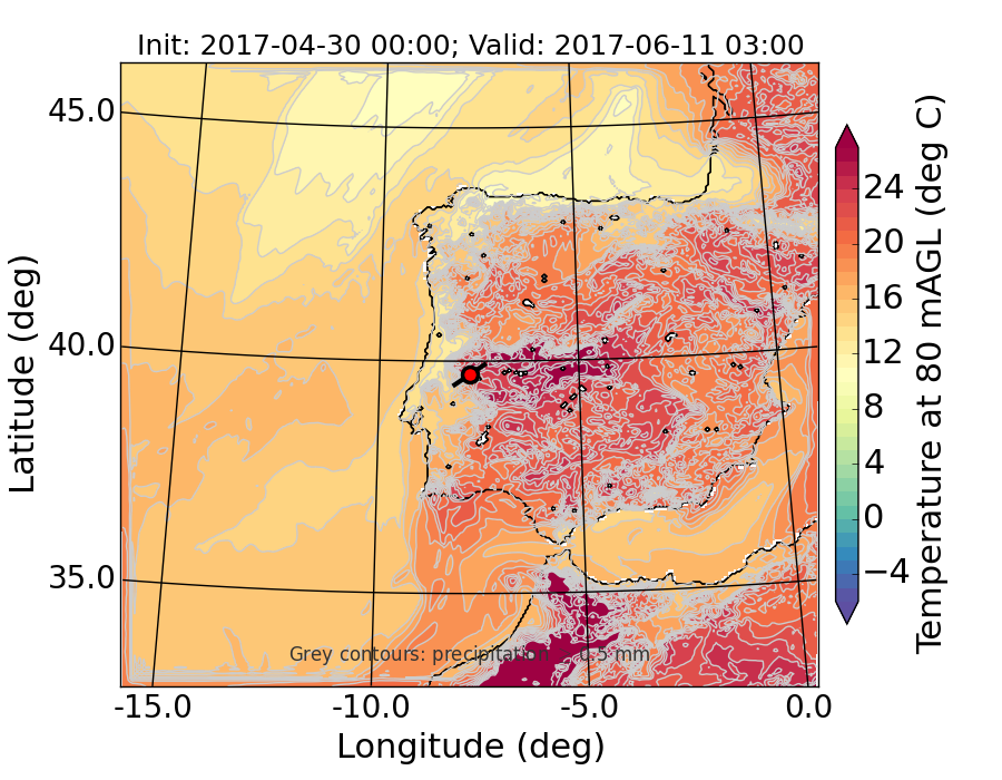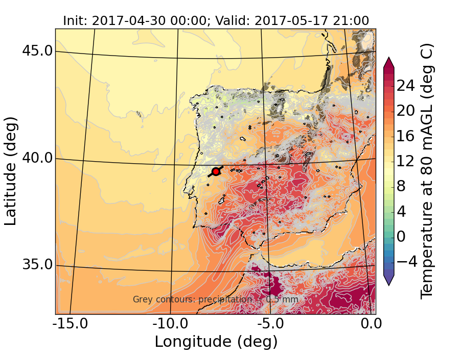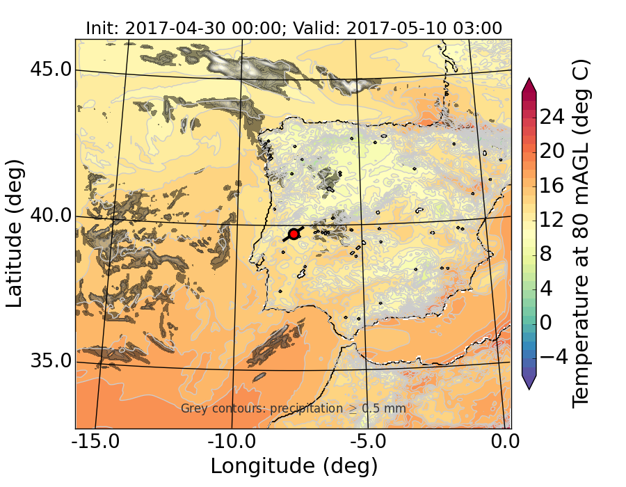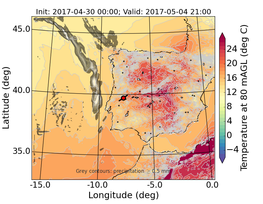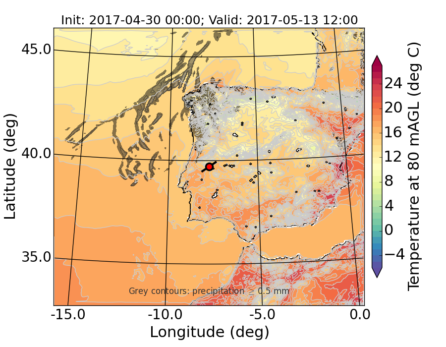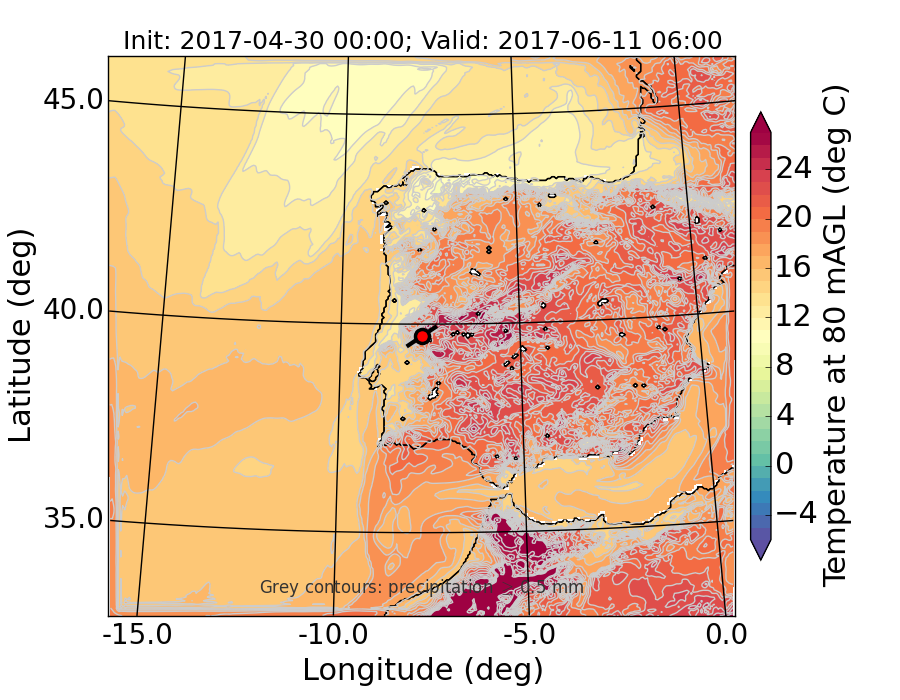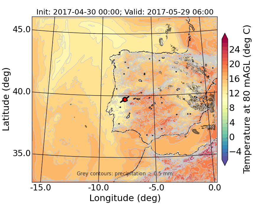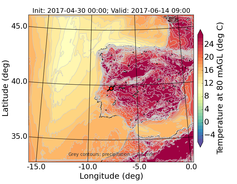 WRF d01 80 m AGL temperature