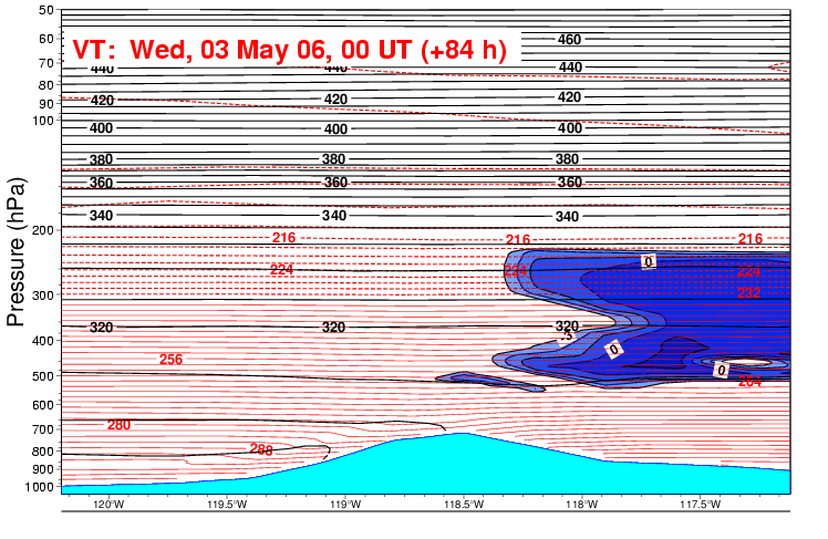 West-East-Section (HIAPER A): CIWC (ppmv, shaded), T(K, red) and Theta(K, black)