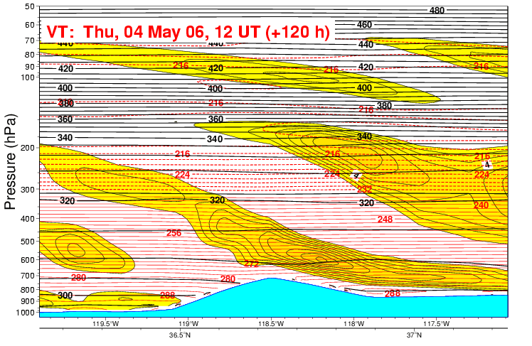 West-East-Section (HIAPER B): CIWC (ppmv, shaded), T(K, red) and Theta(K, black)