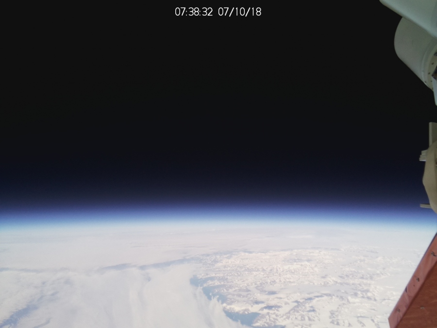 1010LT - Made it to Greenland! As of 20 minutes ago Greenland is in the view of rear looking onboard camera. The lidar and scientific cameras are running well and we acquired exciting data during a several hours long PMC event last night. Concerning operations, one of the more exciting events last night was a total power outages at the control center in Palestine, Texas. As a consequence, we lost all but one satellite data link to the payload for some hours (Iridium OpenPort is the only link which is fully independent). Now all links are restored and both science and engineering data are again coming down normally.